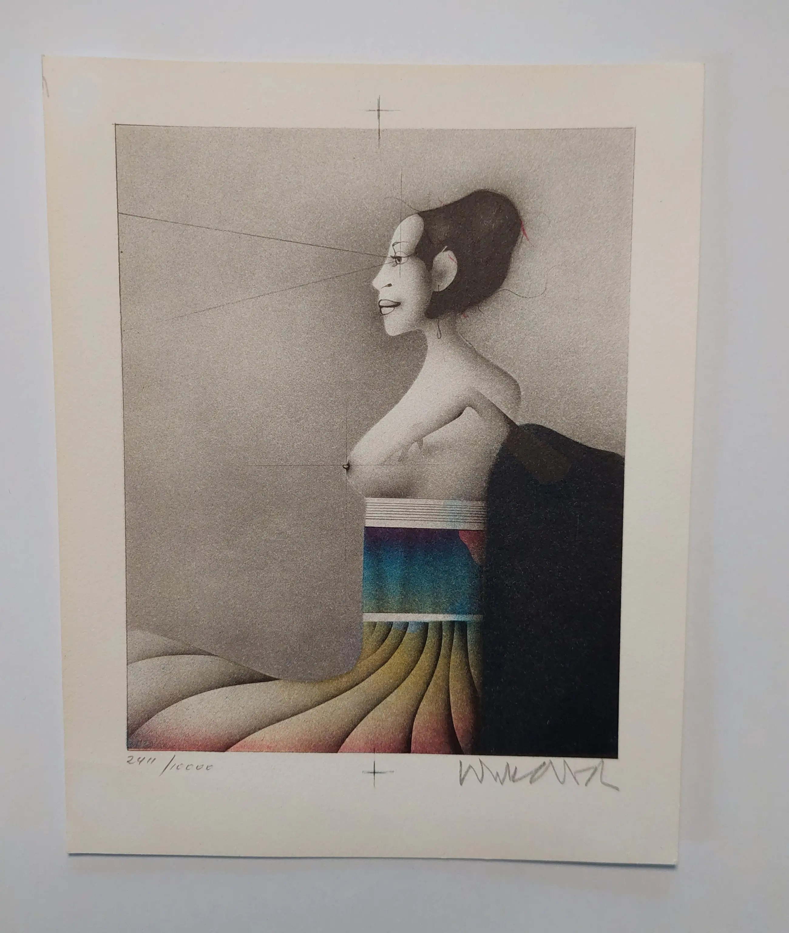 Kleine (ich vermute) Farblithografie von Paul Wunderlich im typischen Stil. Herstellungsjahr müsste 1977 sein. Handsigniert und mit "2411/10000" ausgezeichnet.