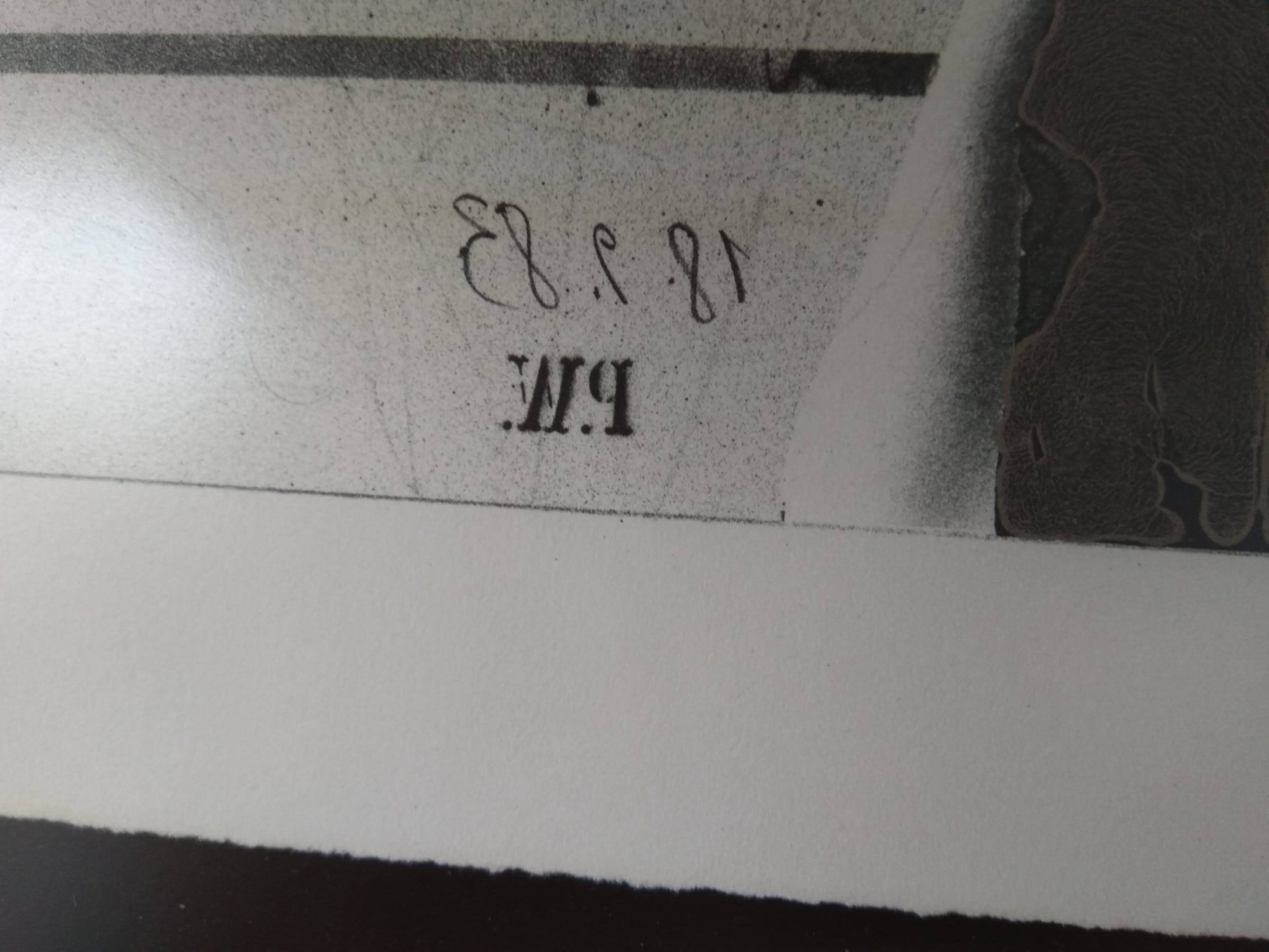 Gut getroffen van Paul Wunderlich, deel van de serie Bellevue. Het is een afbeelding van zijn vrouw, de fotograve Karin Székessy. In de camera is ondersteboven het portret van Wunderlich zelf te zien. oplage 1000, nummer 601 van 1000.