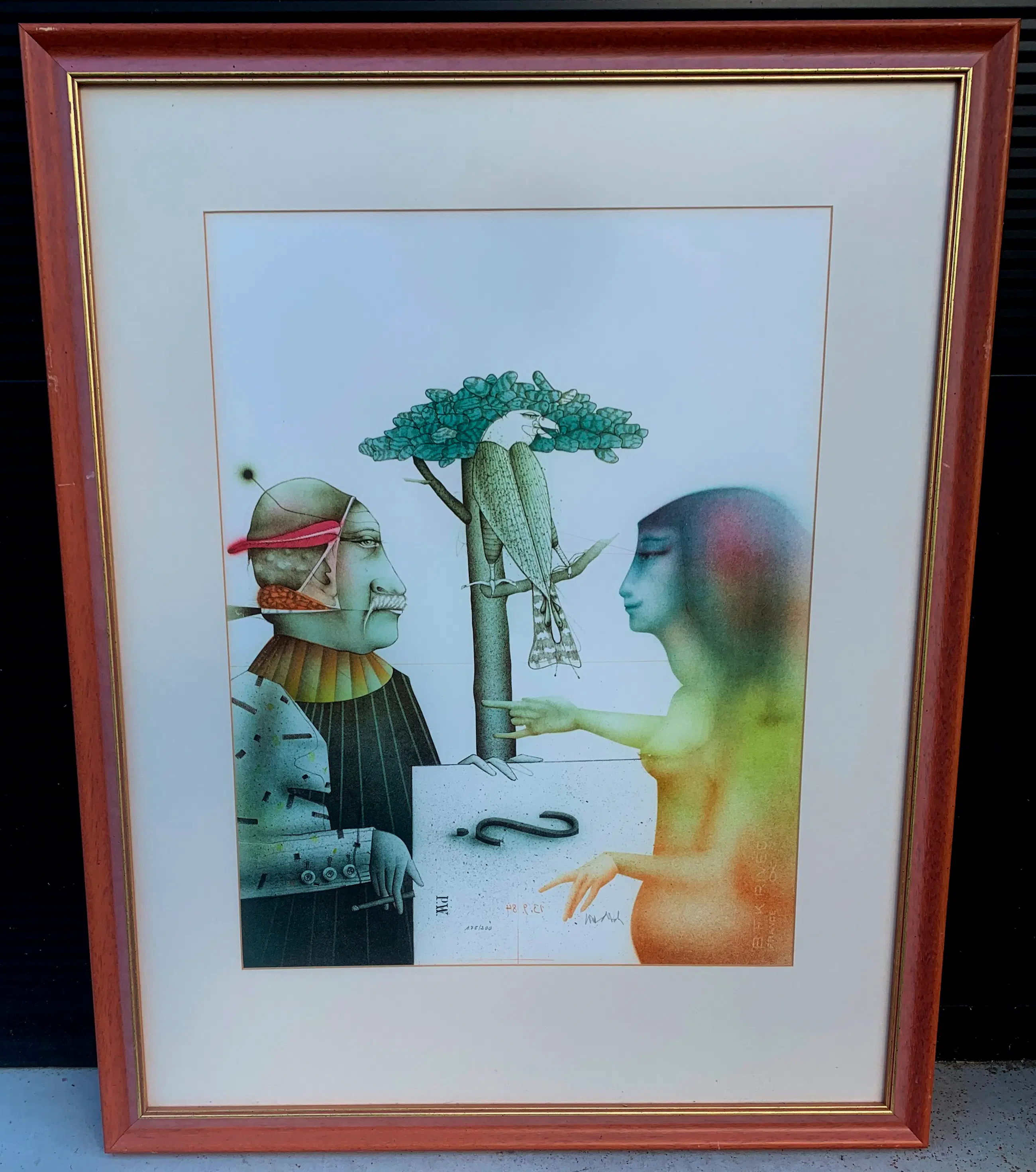 Ingelijste litho van Paul Wunderlich. Voorstelling van een vrouw en roofvogel. Oplage: 175/200. Afmetingen incl lijst: H80 x b80cm. Afmetingen voorstelling: H70 x b70cm. Het werk is rechtsonder gesigneerd door de kunstenaar. De authenticiteit van dit werk wordt volledig gegarandeerd. Een certificaat kan, op aanvraag, worden gemaild.