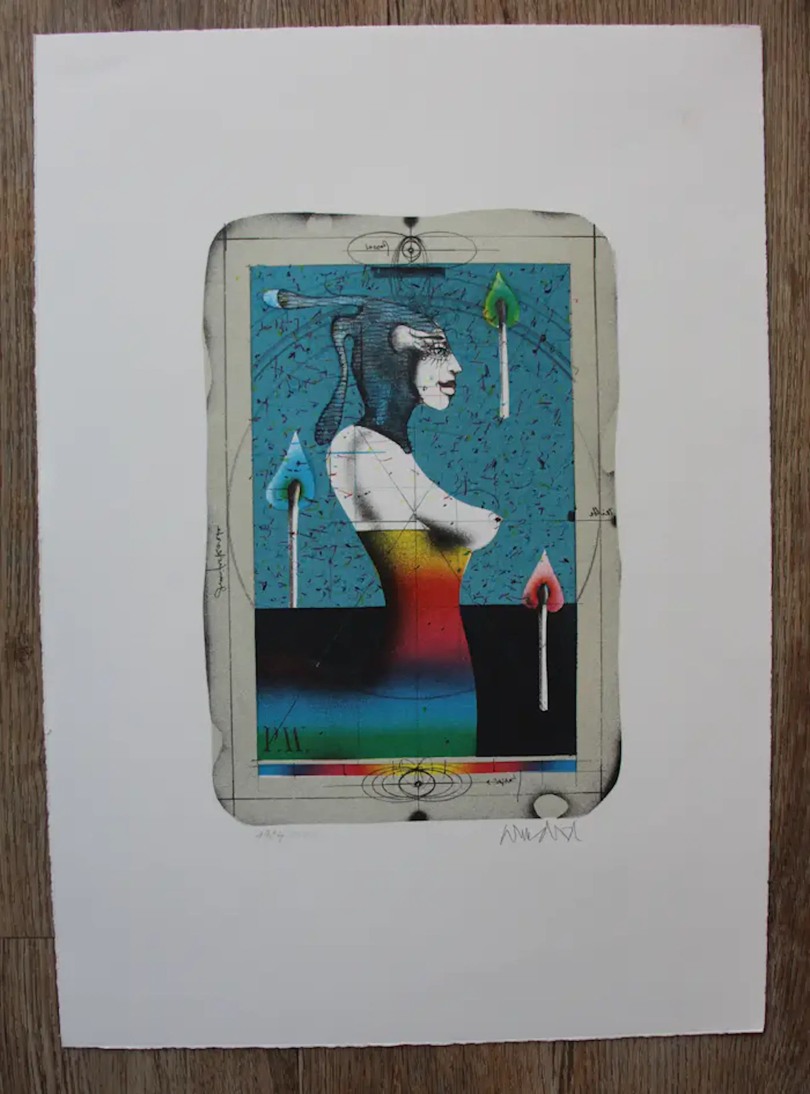 Litho van Paul Wunderlich. Nummer: 1934/10.000. Afmetingen blad: H42 x b30cm. Afmetingen voorstelling: H24,5 x b16.5cm. Het werk is rechtsonder gesigneerd door de kunstenaar. De authenticiteit van dit werk wordt volledig gegarandeerd. Een certificaat kan, op aanvraag, worden gemaild.
