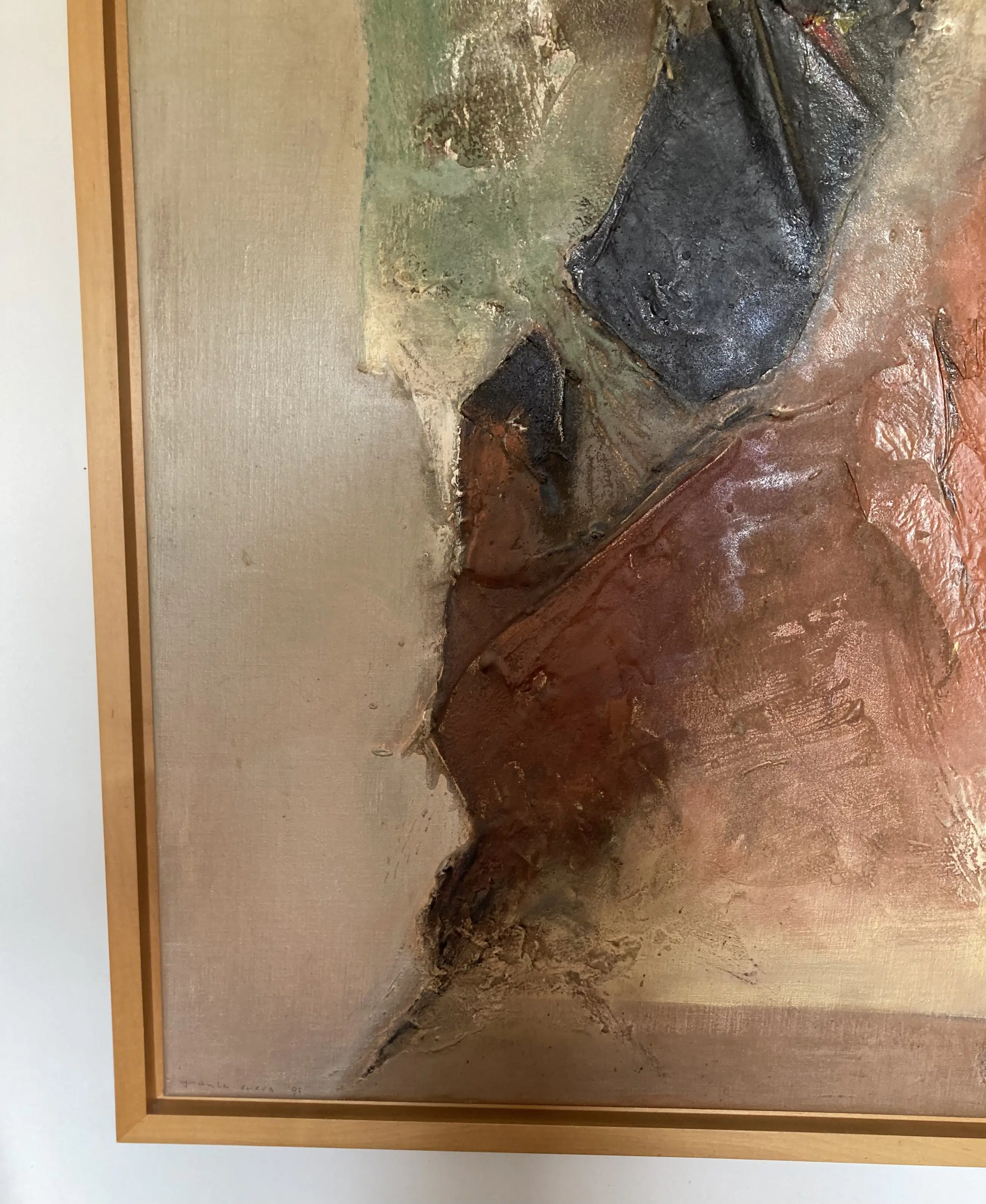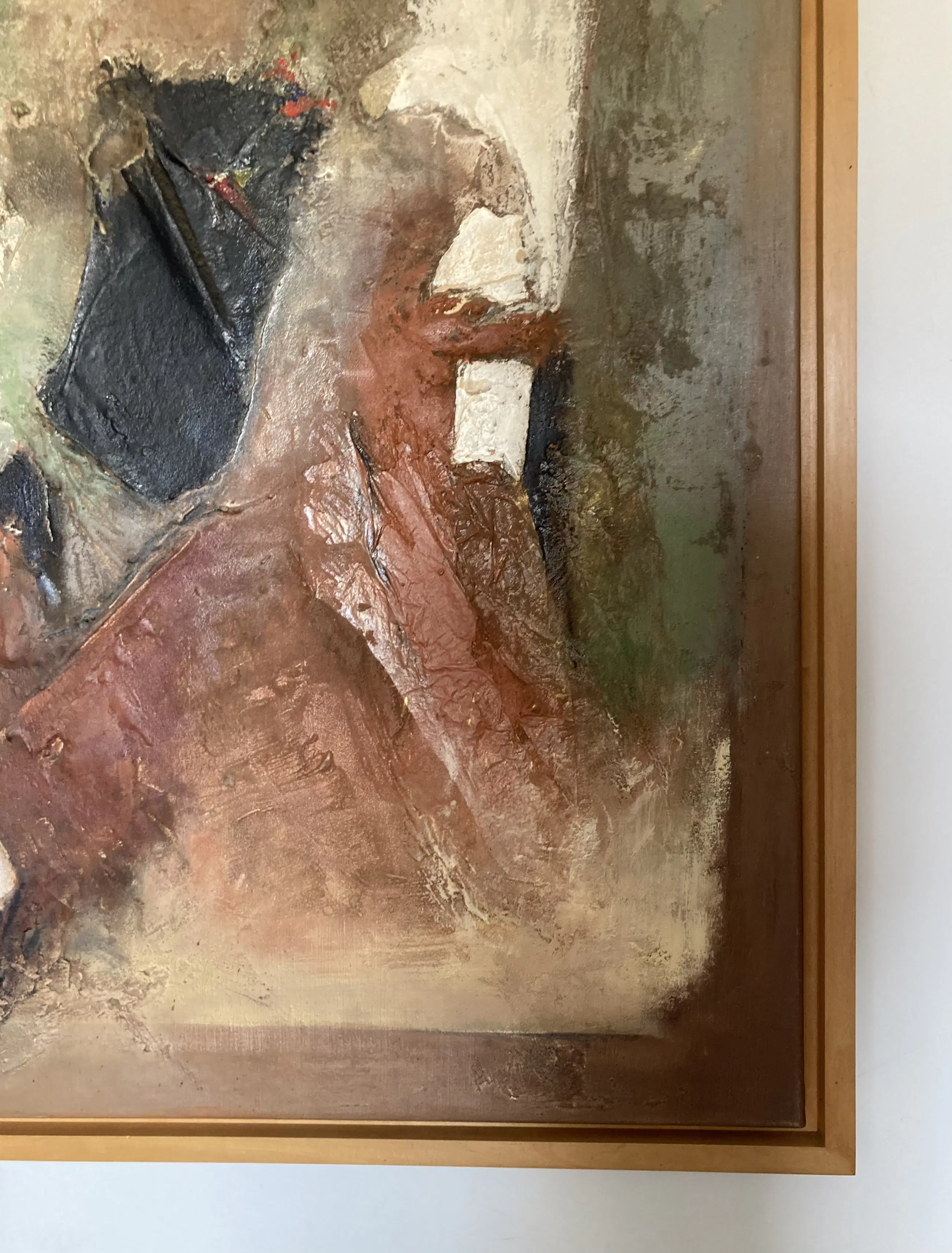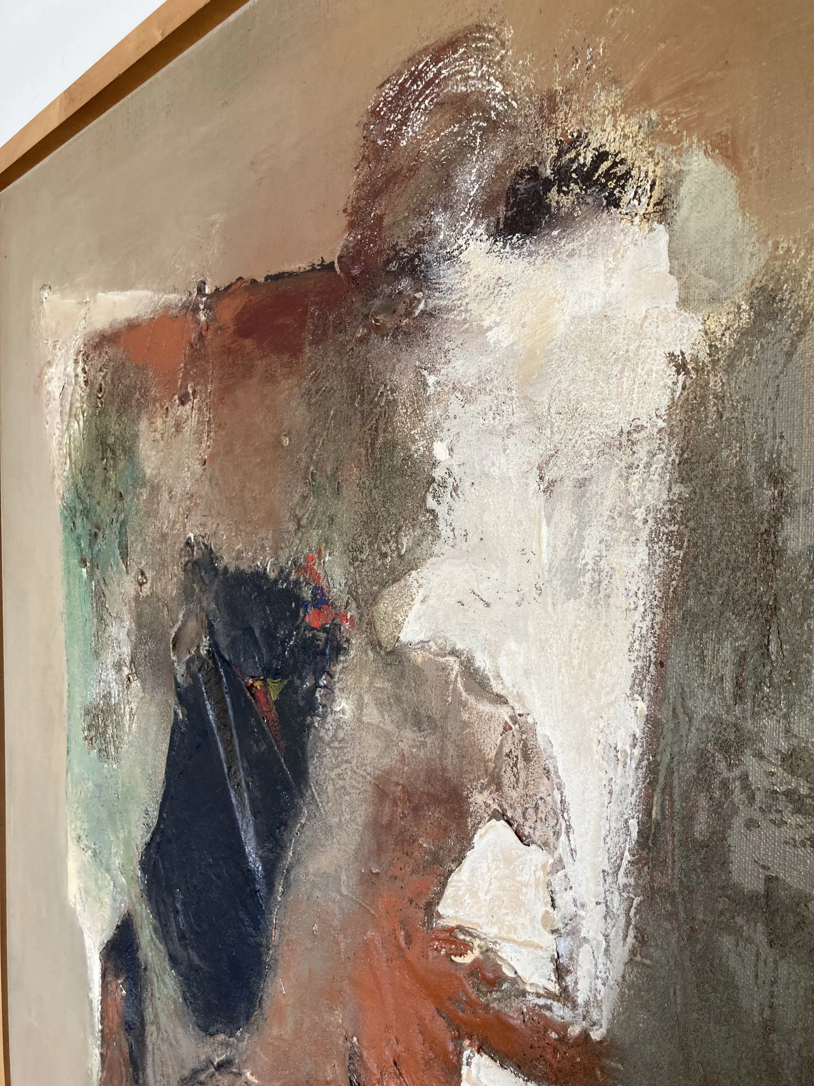 Paula Evers, acryl op doek, 1995. Groot abstract schilderij van een stierenvechter. Alleen serieuze biedingen. Hoogte 128 cm, breedte 98 cm.