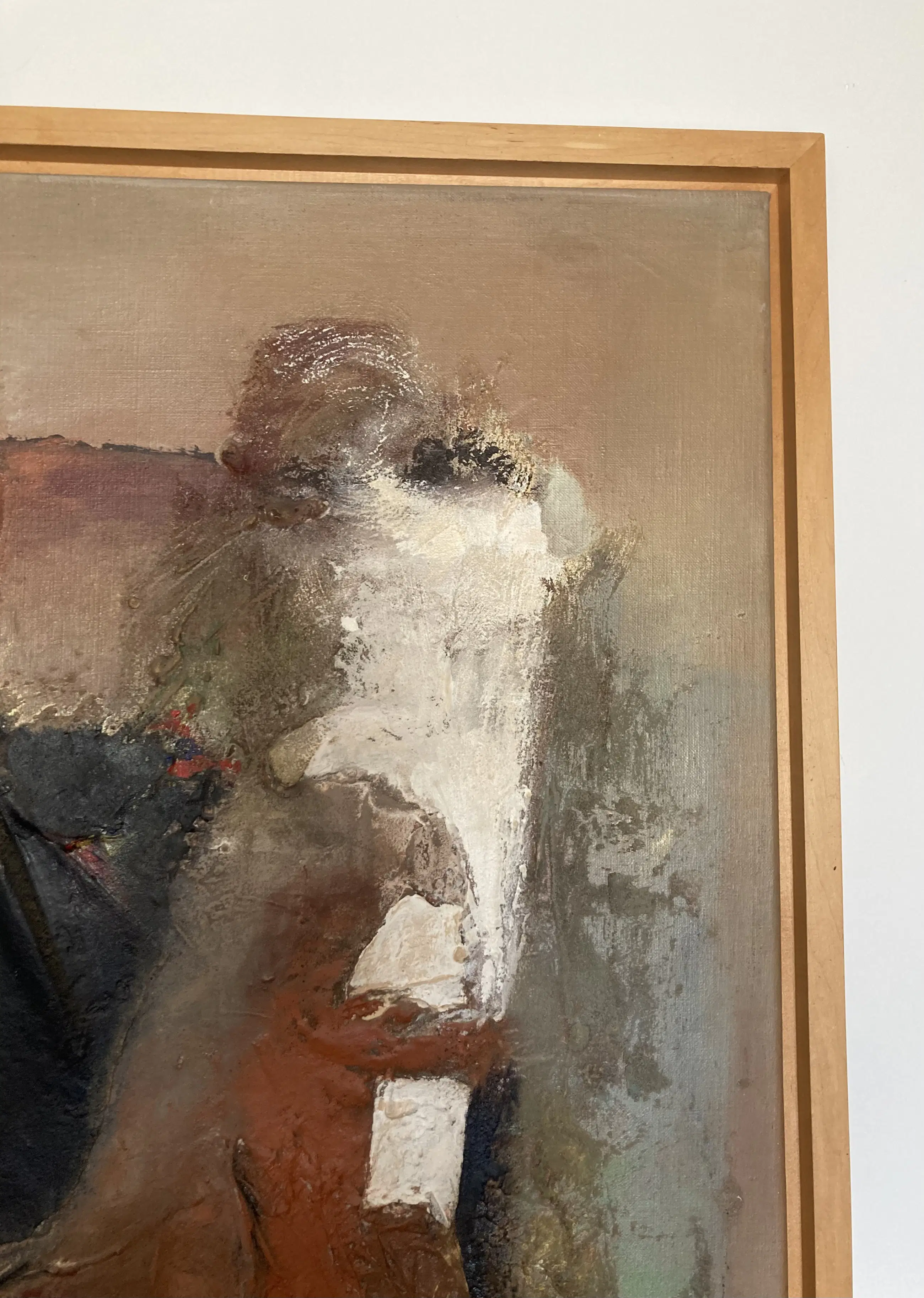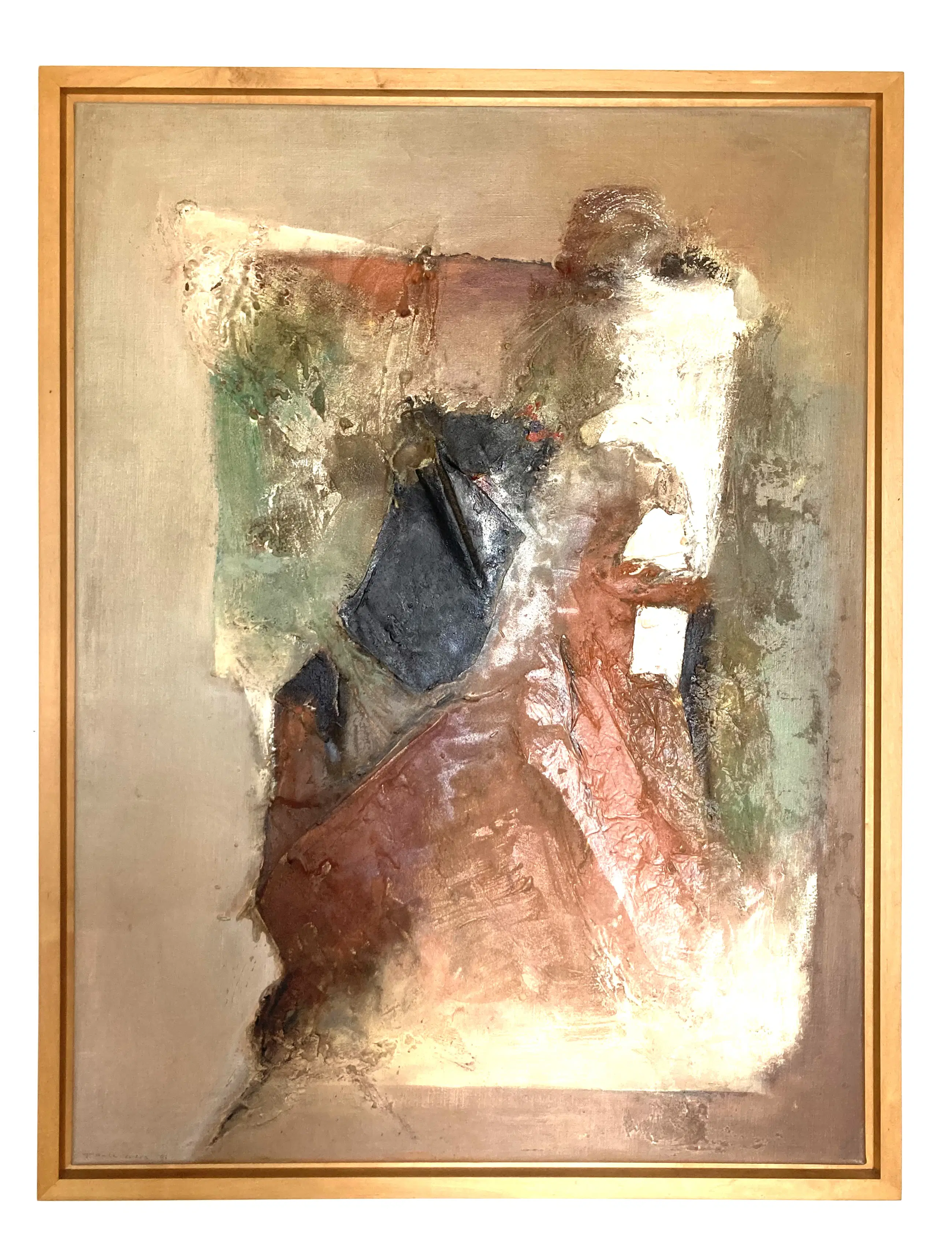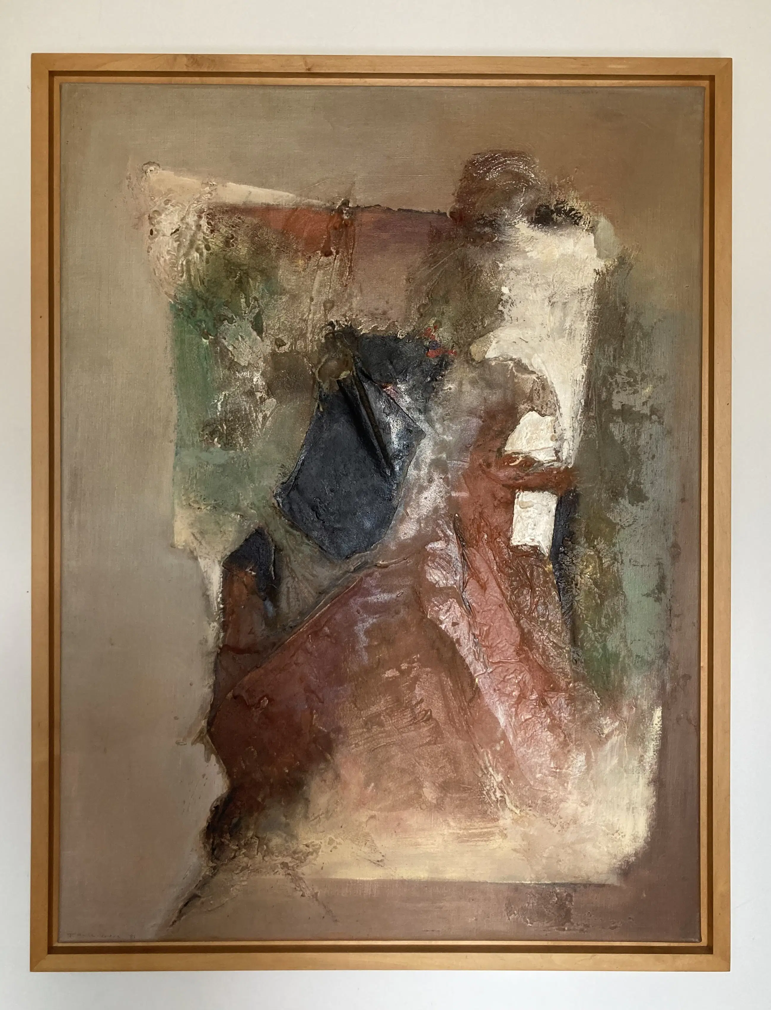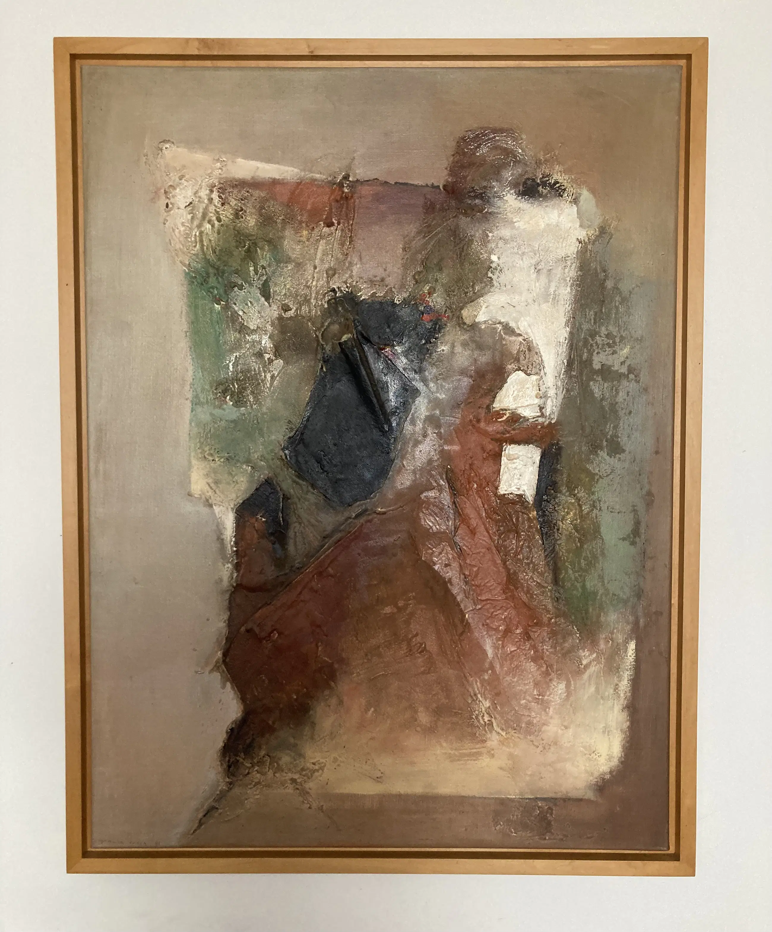 Paula Evers, acryl op doek, 1995. Groot abstract schilderij van een stierenvechter. Alleen serieuze biedingen. Hoogte 128 cm, breedte 98 cm.