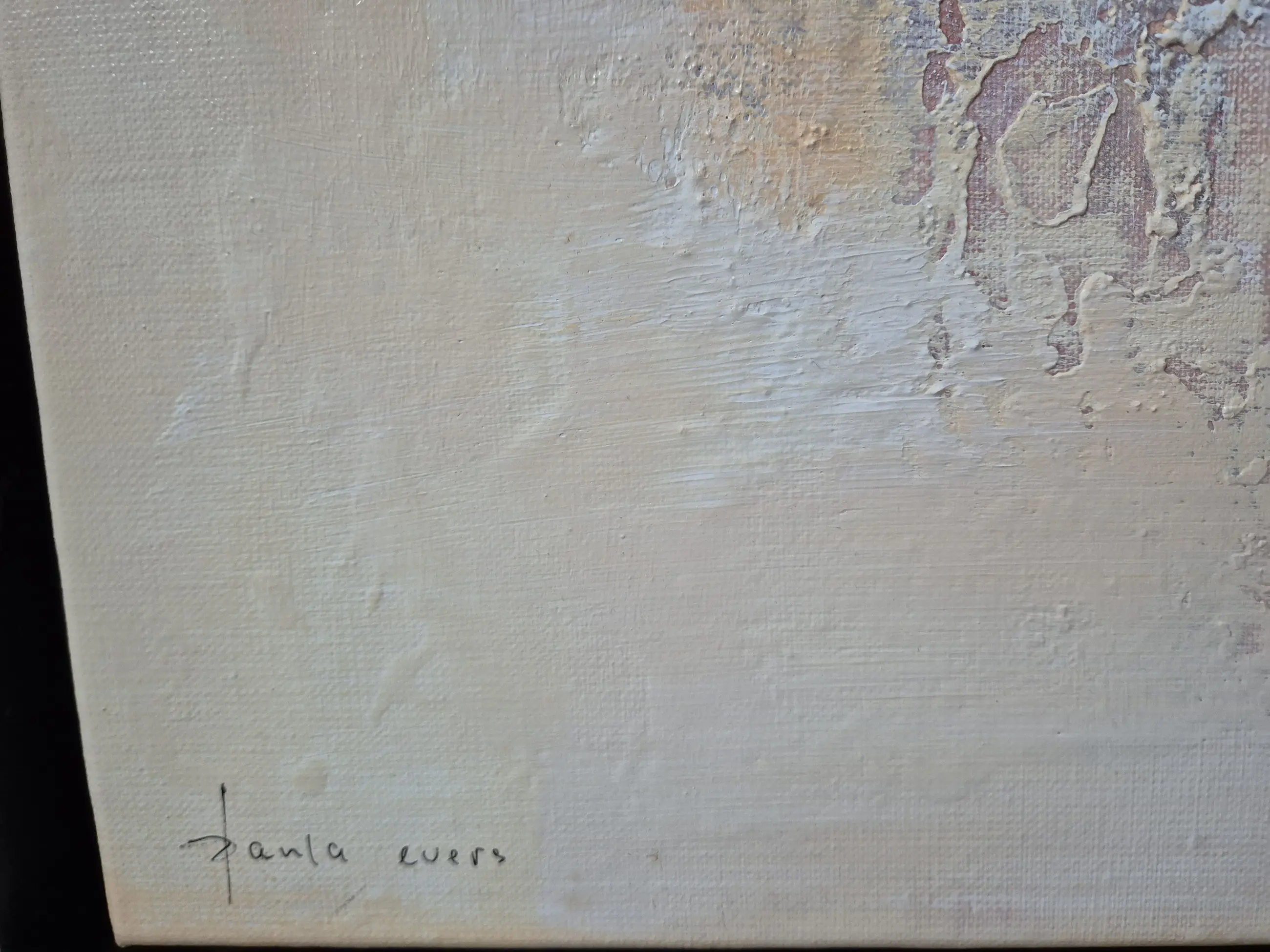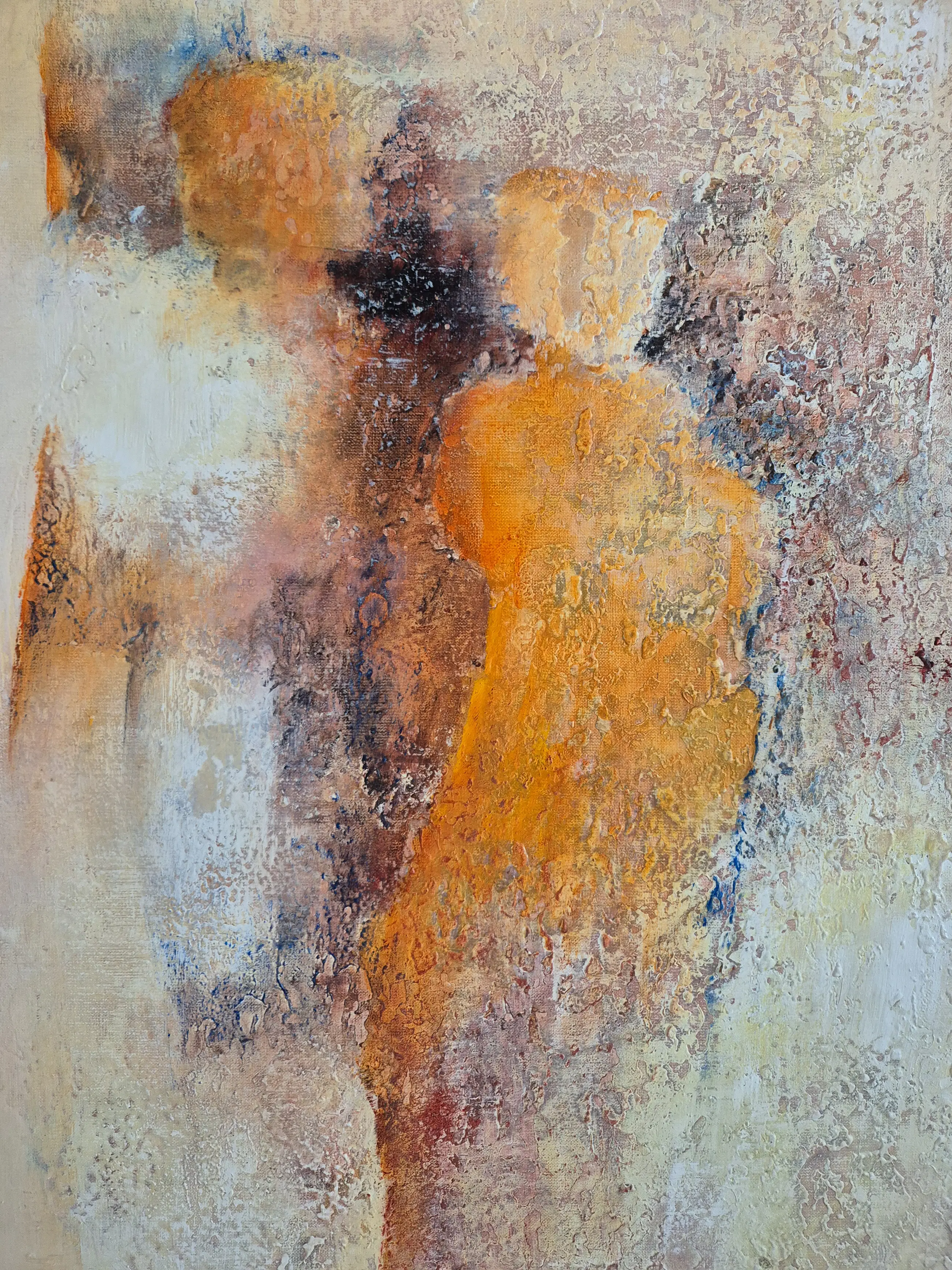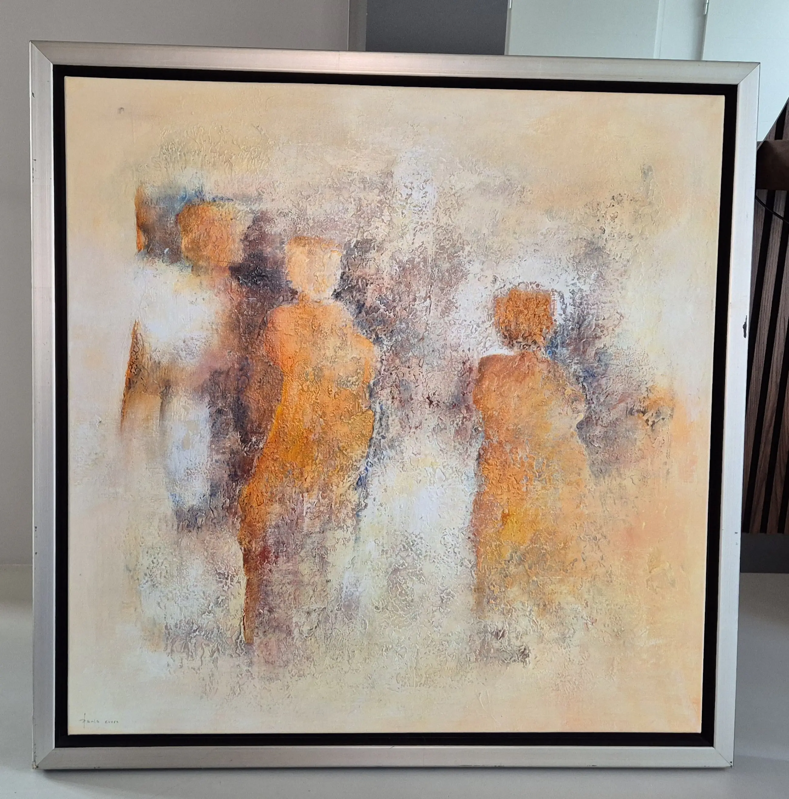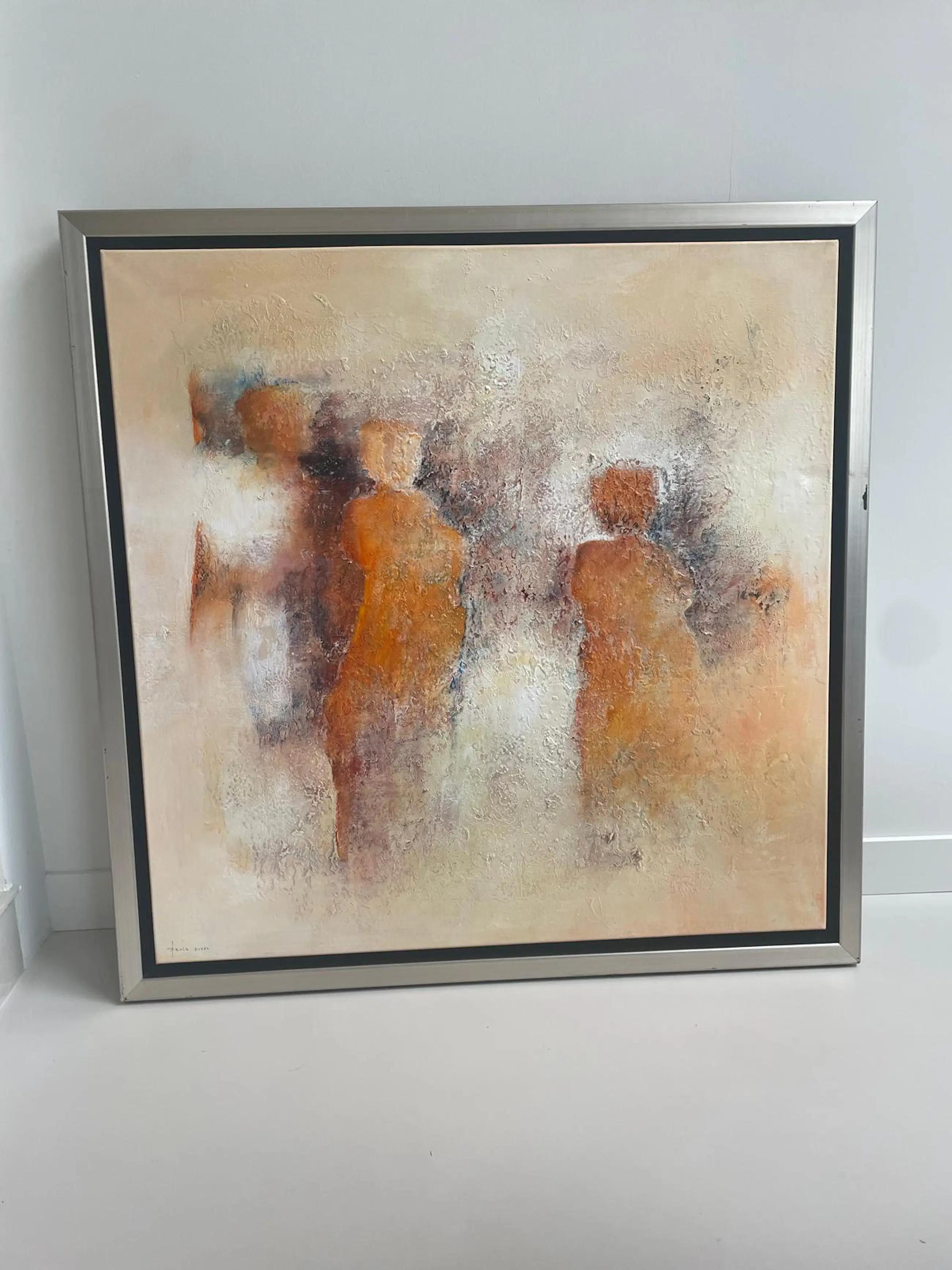 Abstract figuratief werk met geabstraheerde menselijke figuren. Rijk reliëf door gebruik van structuur pasta. Origineel schilderij, incl lijst