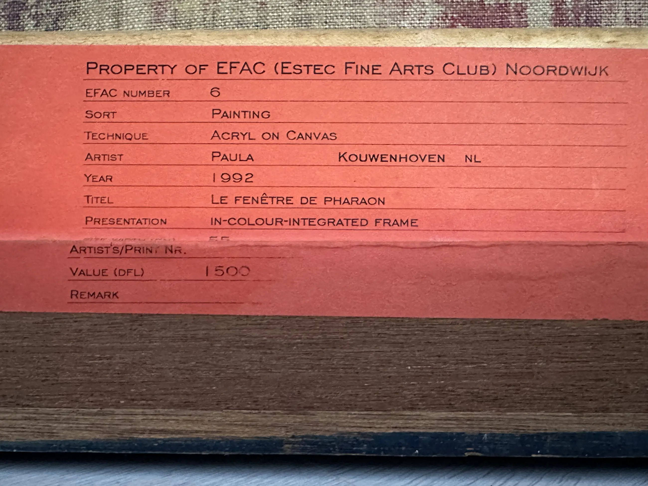 Afhalen | Het werk is af te halen op locatie. Als koper dient u zelf verpakkingsmateriaal mee te nemen. De locatie is: Heemstede, Nederland | ||||||||||