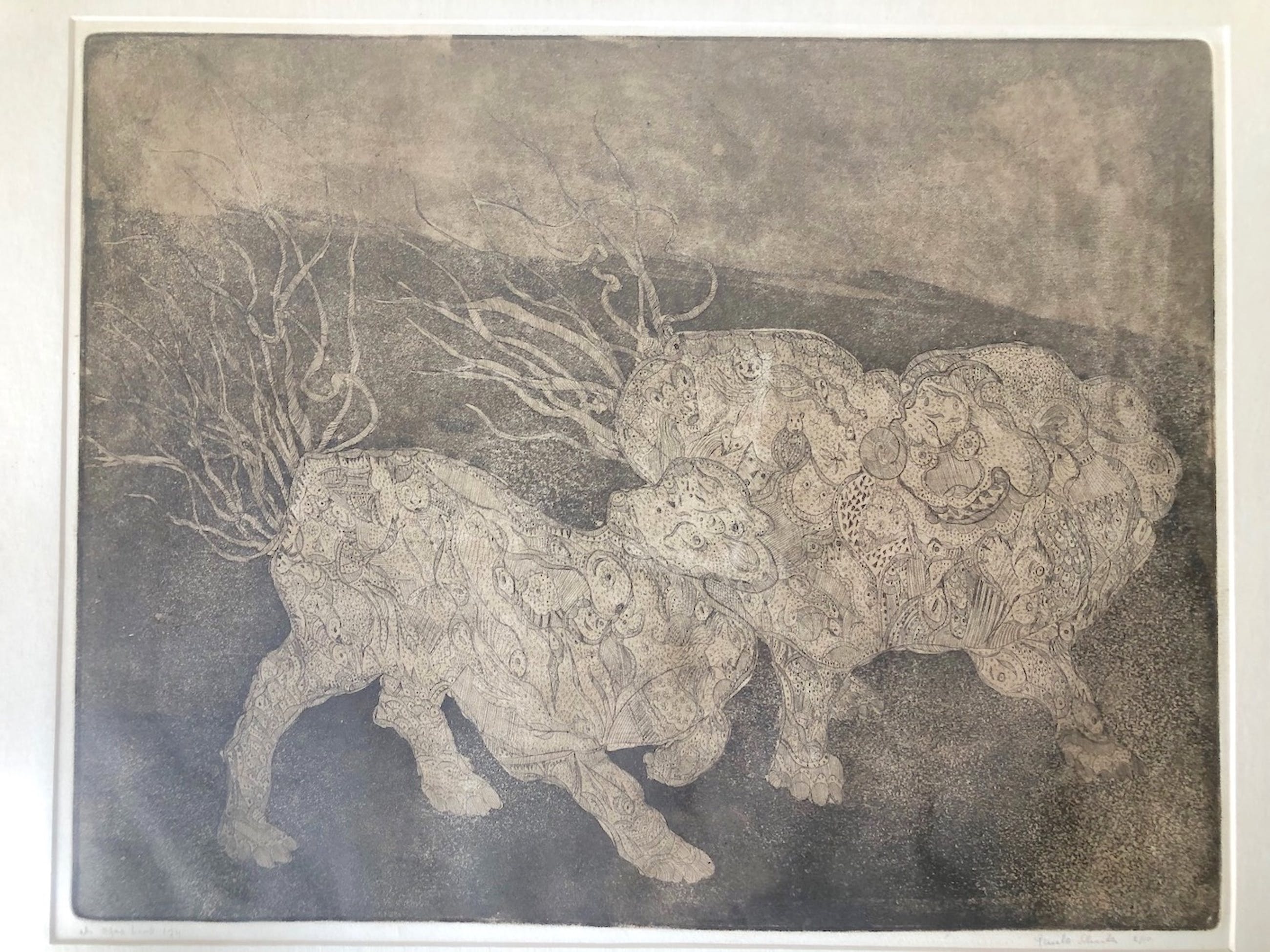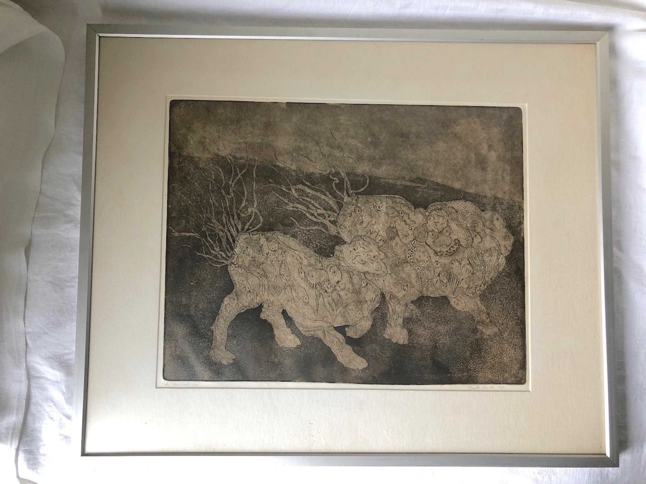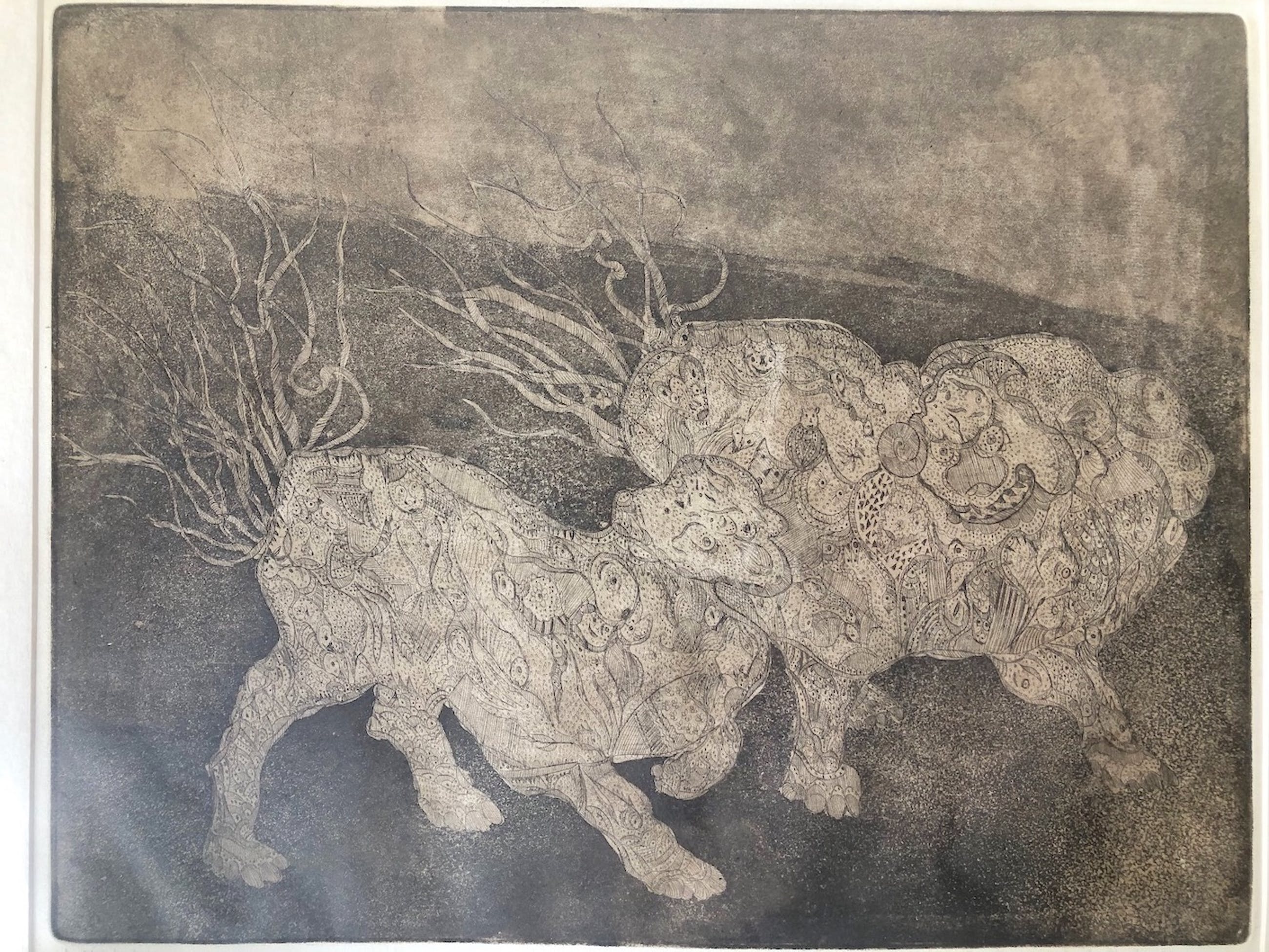 JC 670 A8 Paulina Johanna W. Sluiter Chinese Leeuwen Ets/aquatint 2/10 1974 31 x 39 cm 47 x 57 cm