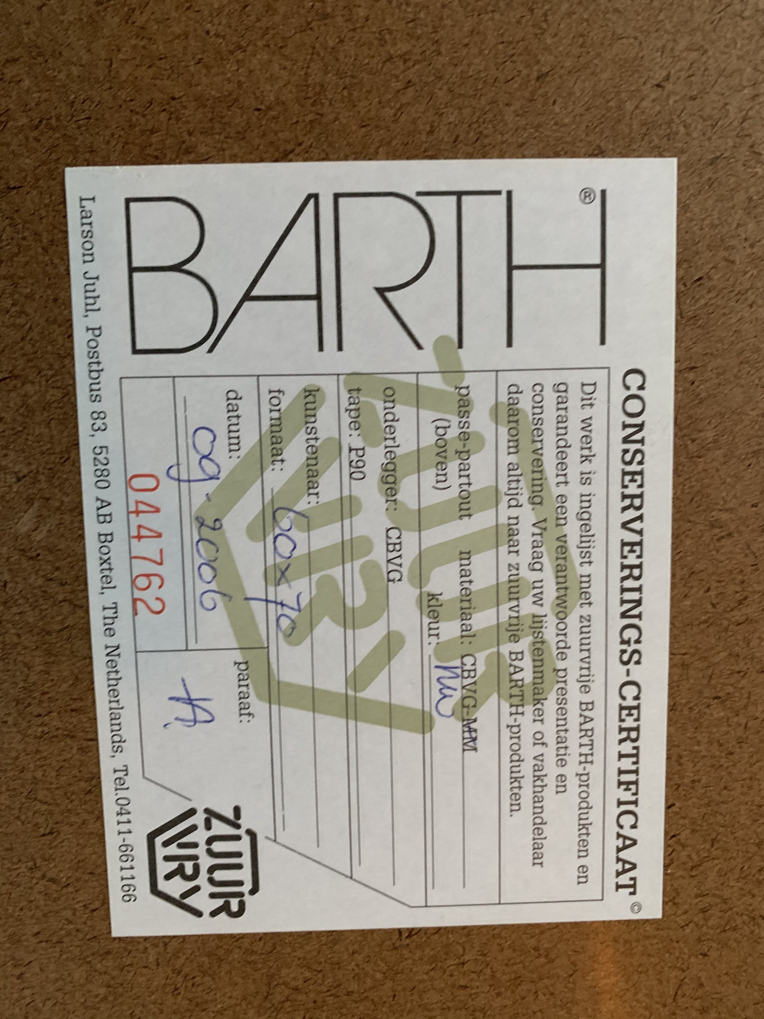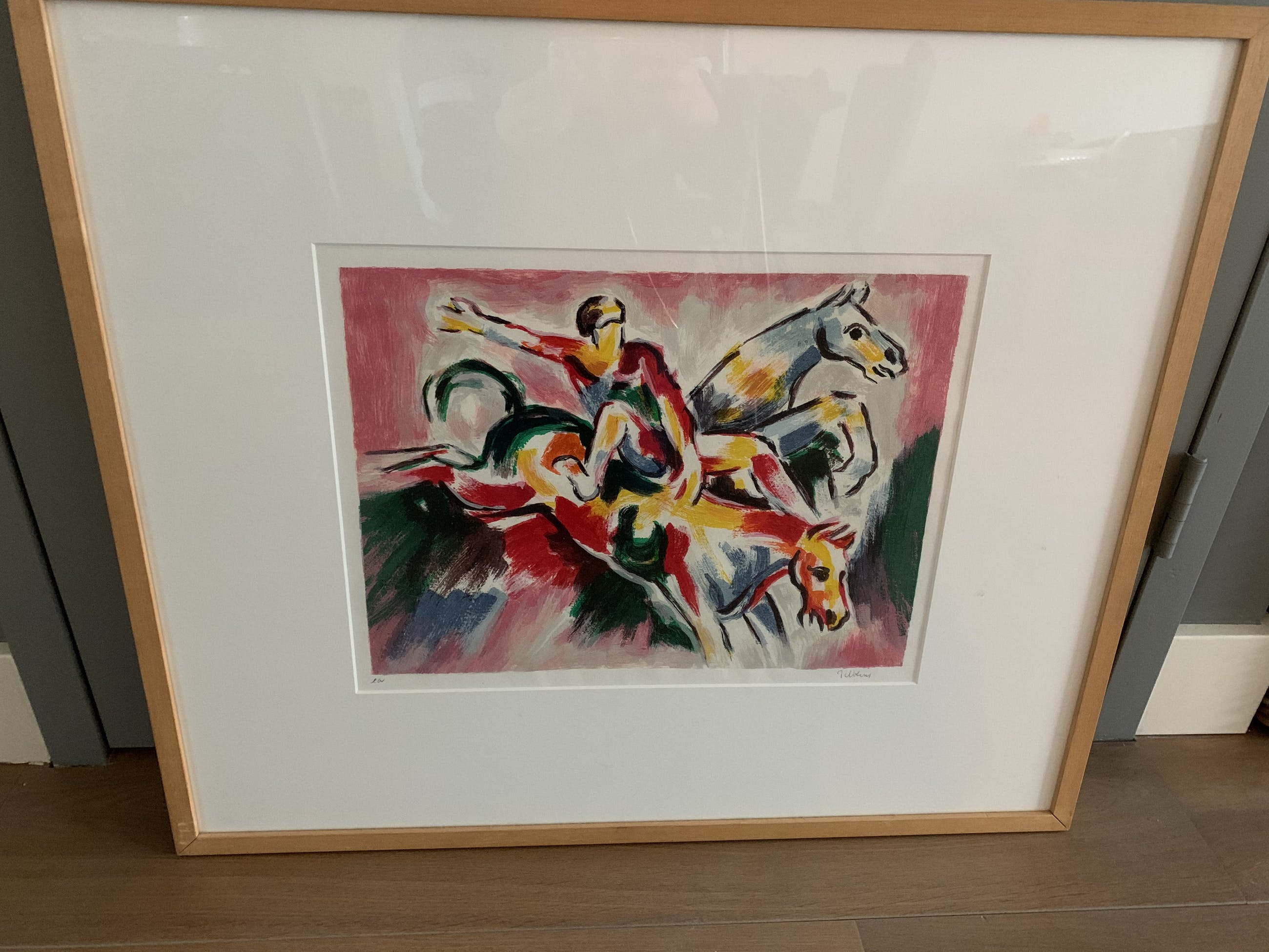 Het gaat om een zeefdruk in een lijst. Er zit een conserveringscertificaat bij.