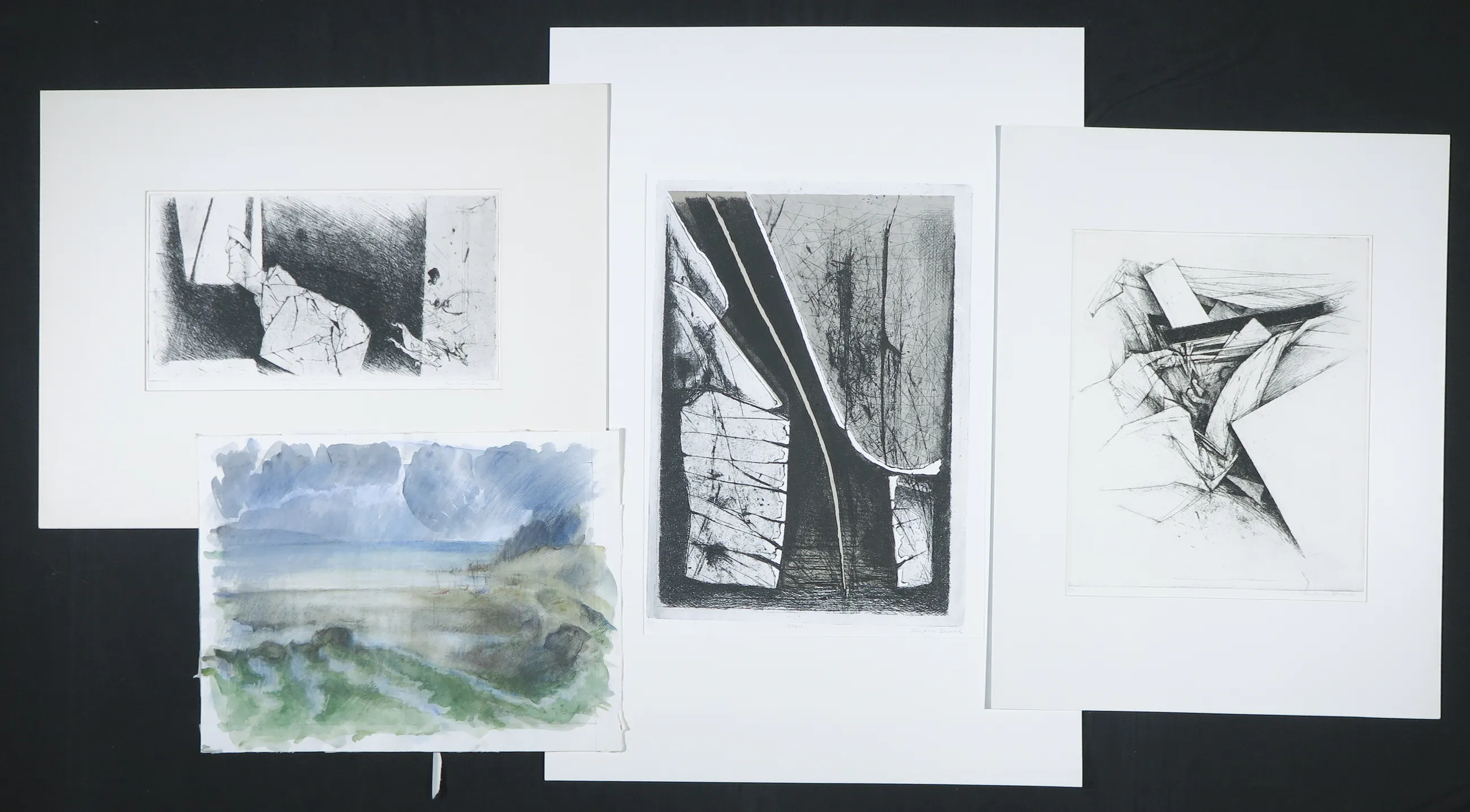 | Het grootste werk verkeert in zeer goede staat. De twee andere etsen zijn licht verkleurd. De aquarel wat lichte gebruikssporen. | |||||||||||