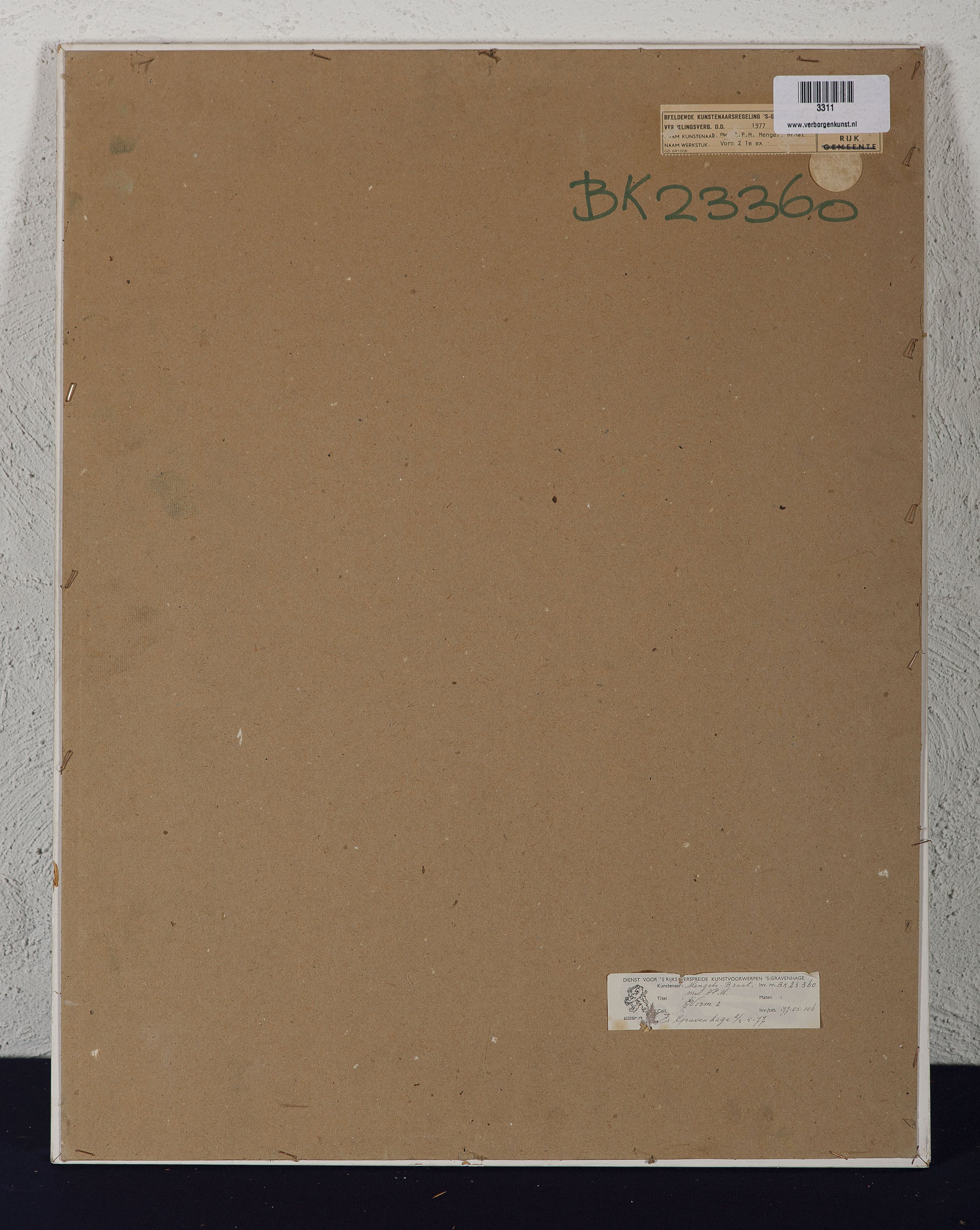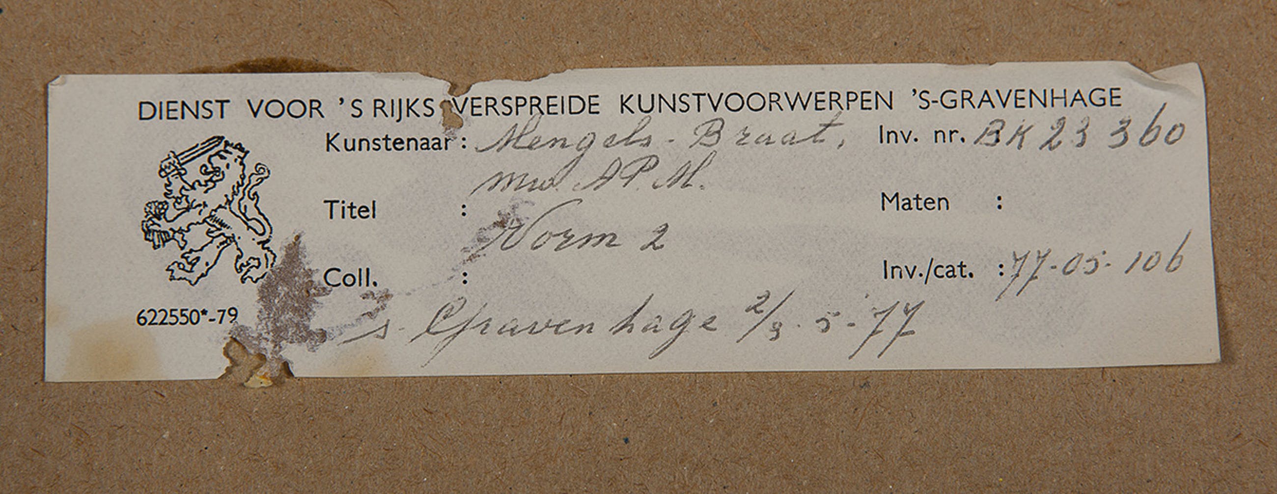 Herkomst: BKR Den Haag (Het kunstwerk is afgevoerd uit de