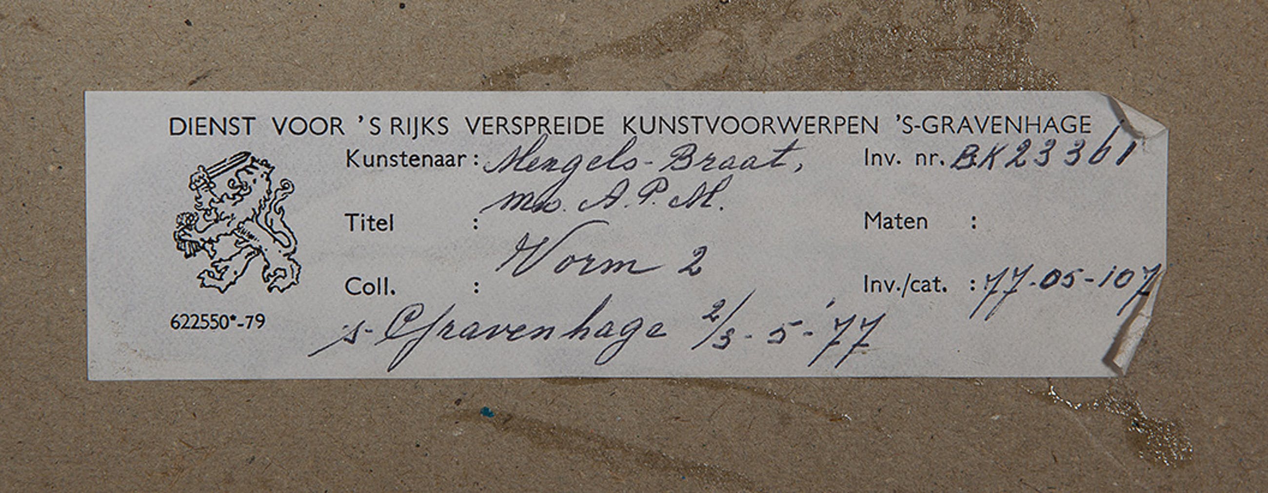 Herkomst: BKR Den Haag (Het kunstwerk is afgevoerd uit de rijkscollectie in 2018)