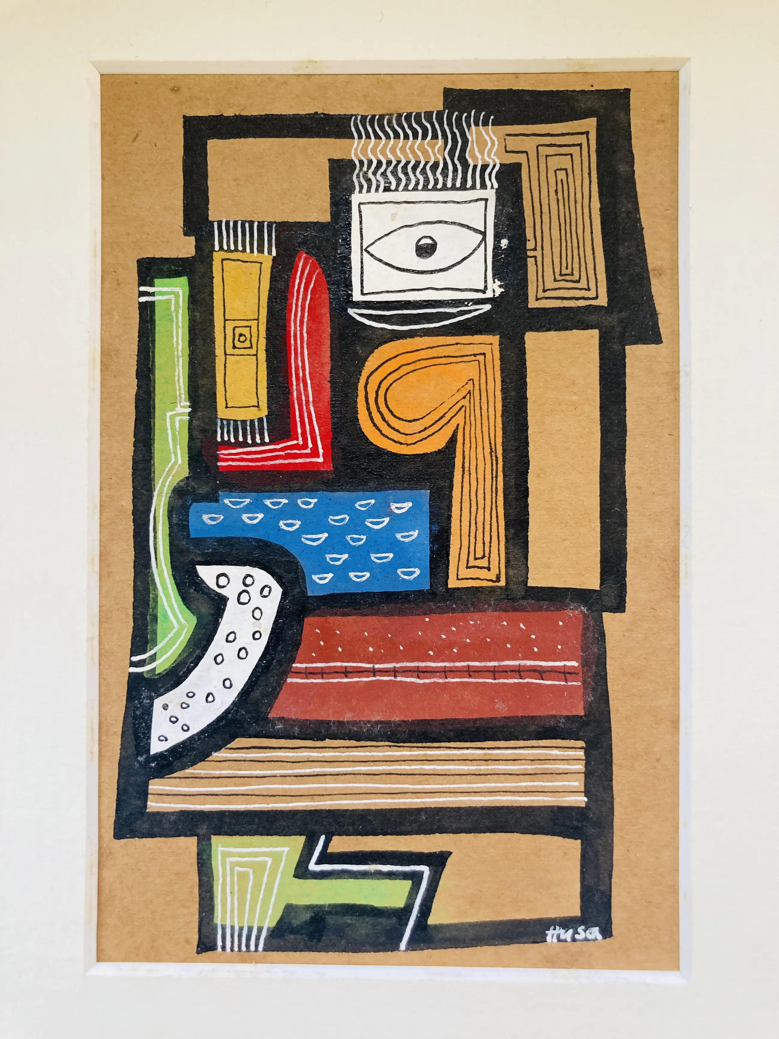 Abstracte compositie. Gemengde techniek op karton. Ges, r.o.
