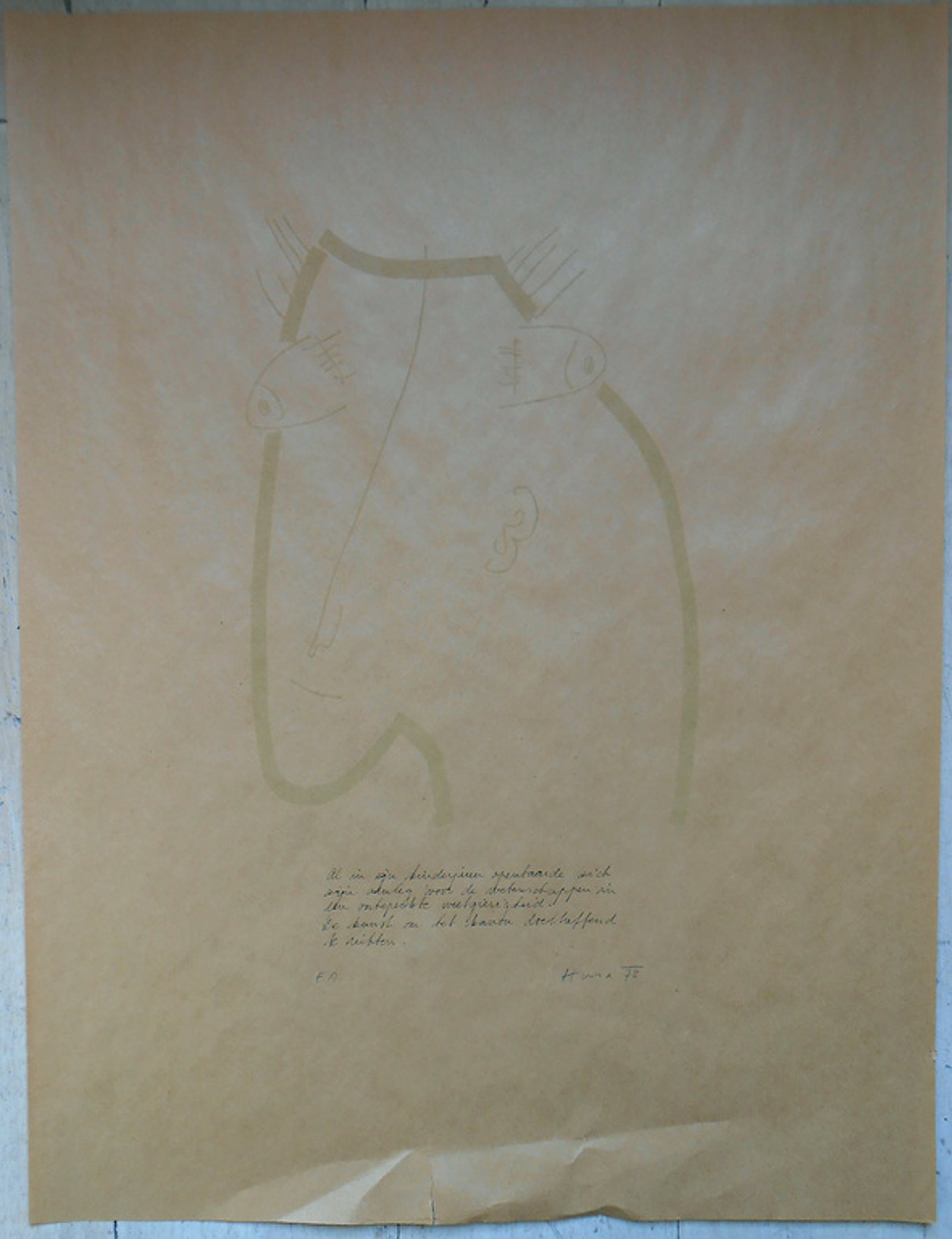 E.A. (Epreuve Artiste), gesigneerd met balpen en geschreven tekst onder de zeefdruk tekening: