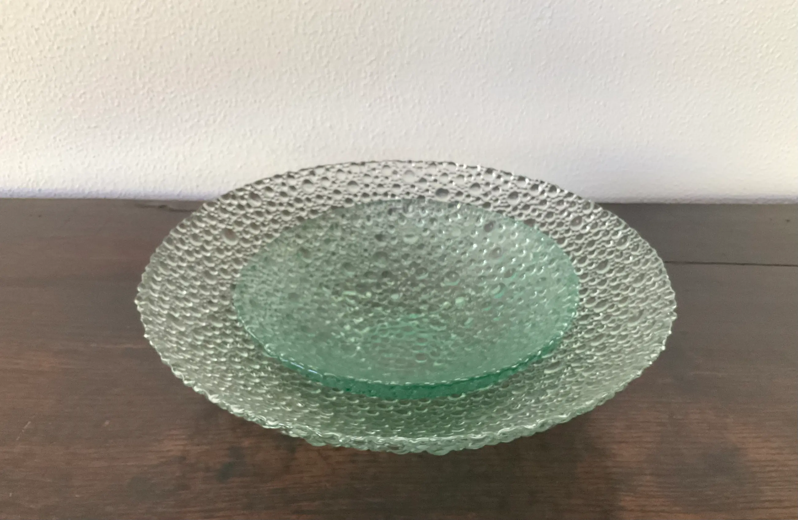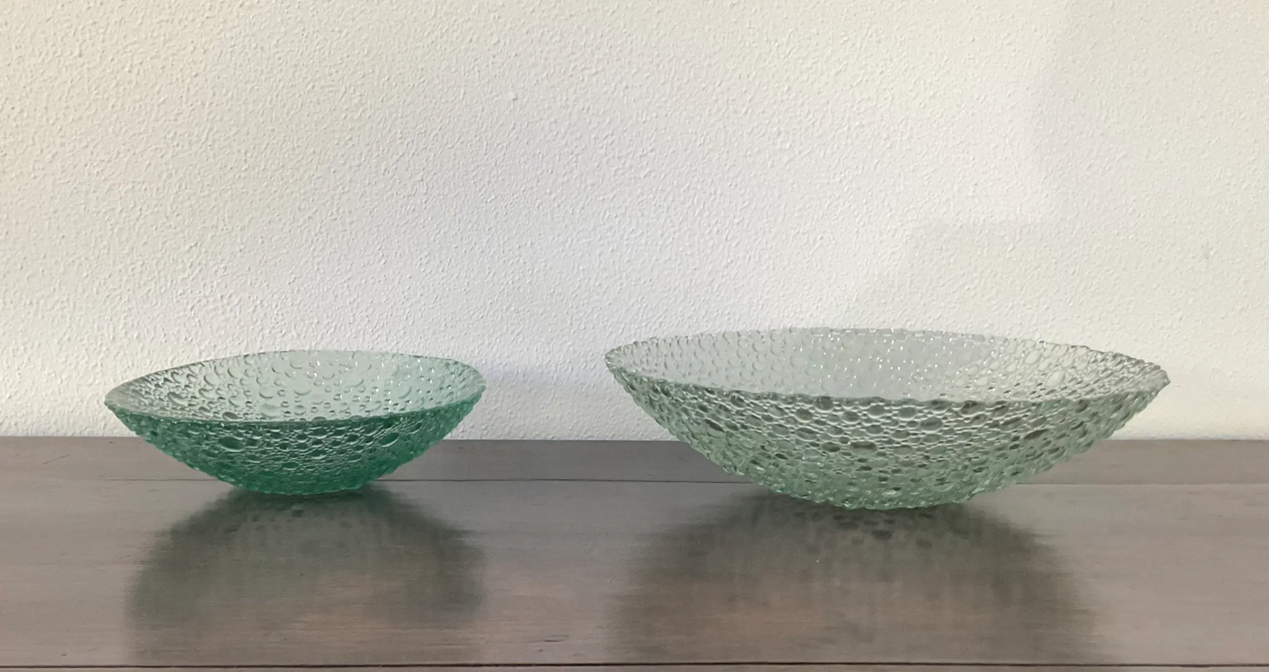 De grote schaal heeft een doorsnee van 30 cm en de andere 20 cm.