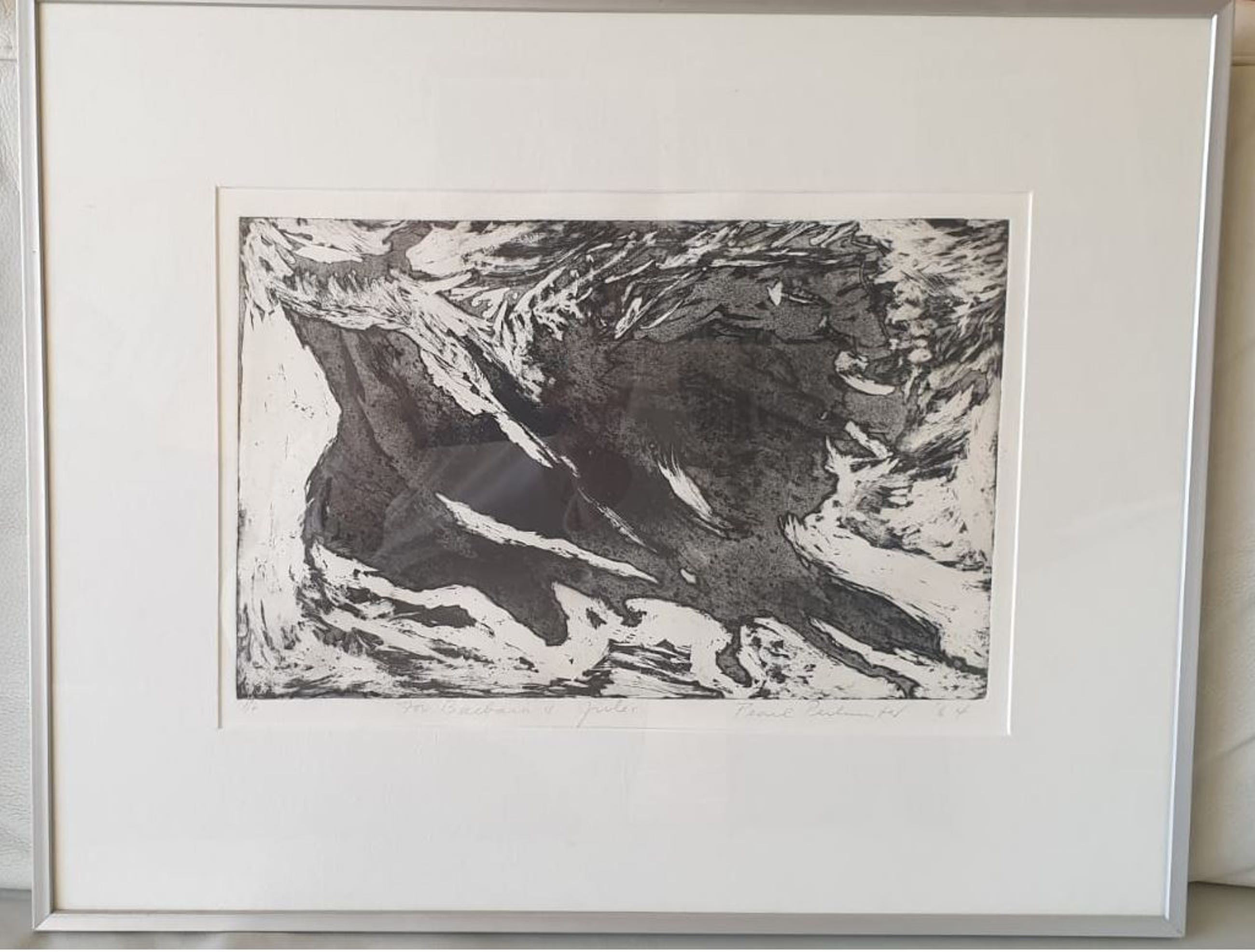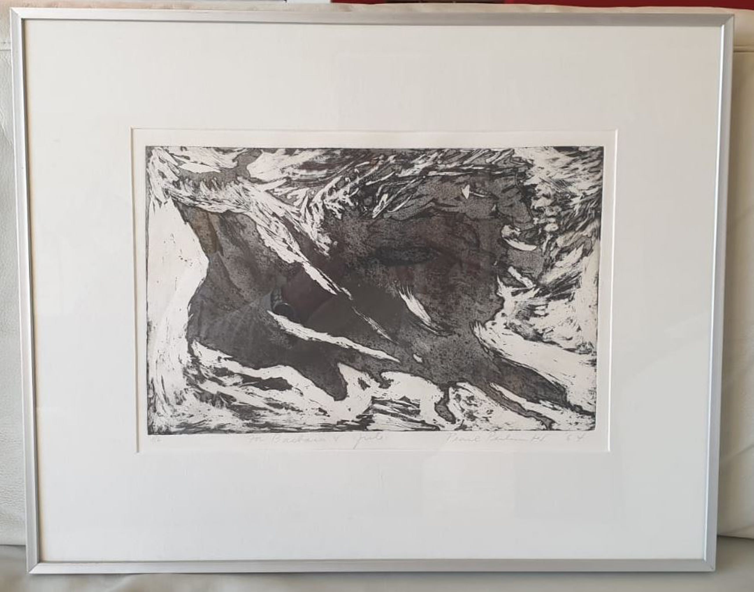 Fraai ingelijste zeefdruk van Pearl Perlmuter uit 1964 in zuurvrij passe-partout en moderne aluminium lijst in perfecte conditie. Voorzien van oplagenummer 1/6 en jaartal '64 en van annotatie met potlood "For Barbara & Jules".