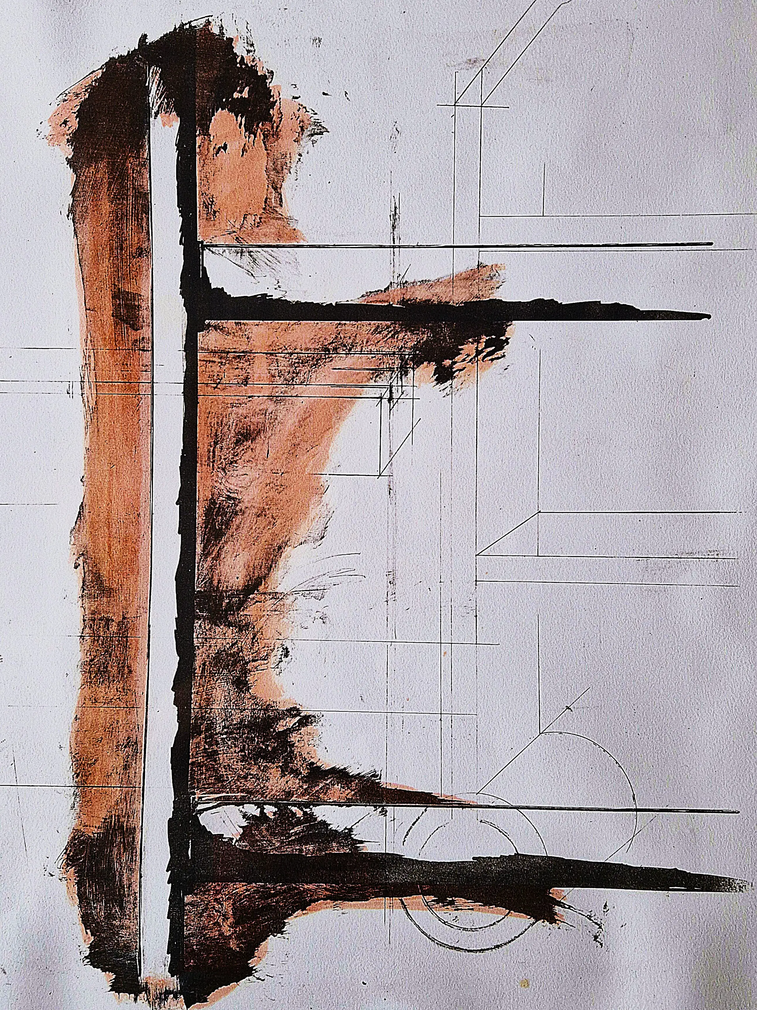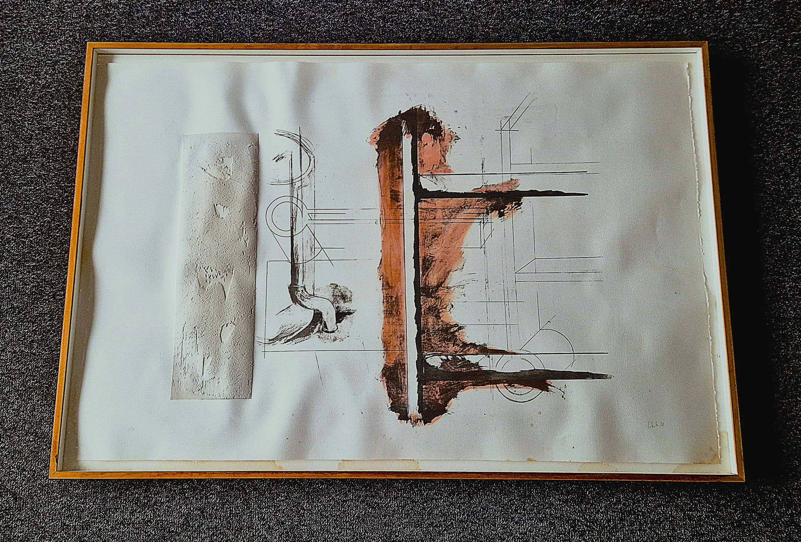 - Bijzondere en zeer grote gemengde (druk)techniek ( lithografie, zand en acrylverf) op papier getiteld "Architecture Storyboard" in 1990 gemaakt door de gelauwerde Portugese beeldend kunstenaar pedro cabrita Reis (Lissabon 1956-). Het werk is genummerd 7/25 en rechtsonder met potlood gesigneerd en gedateerd. Verkeert in goede conditie en is professioneel gelijst.
