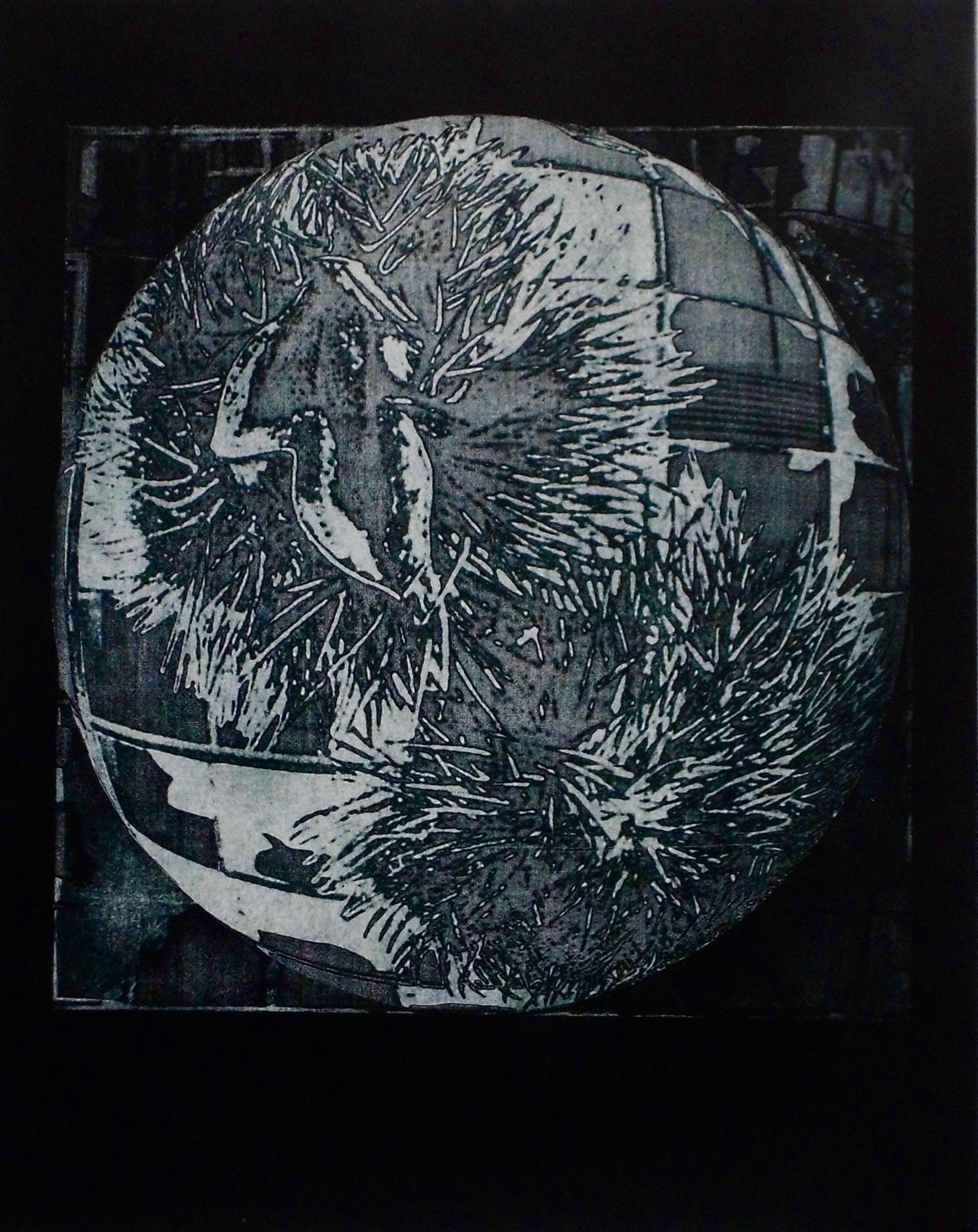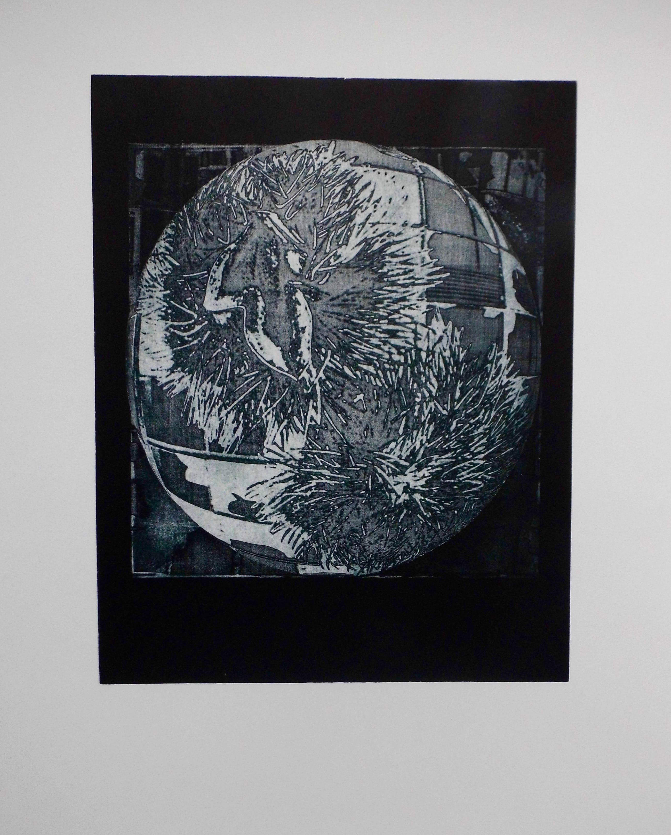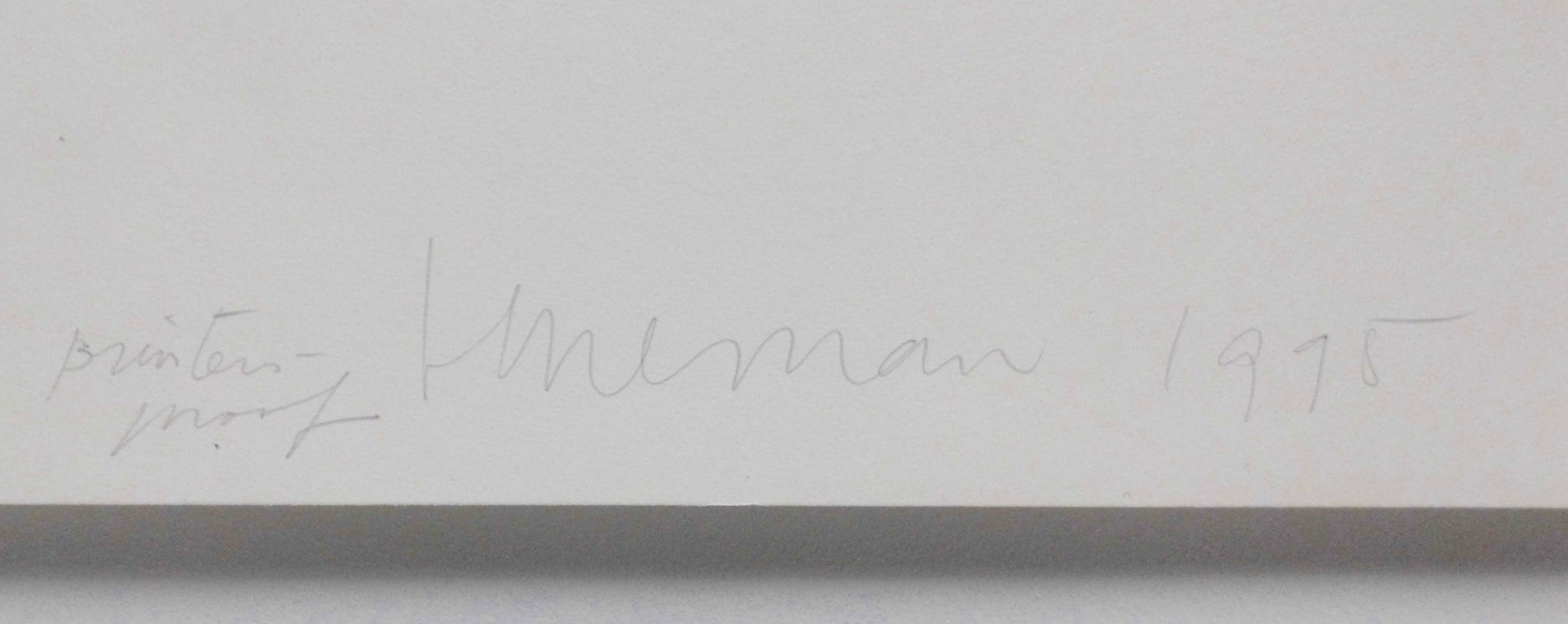 Ets/aquatint op groot (museum-) formaat, afgedrukt bij Grafisch Atelier Daglicht te Eindhoven Veneman (Eindhoven 1952) maakte o.a. veel ruimtelijke figuren, welke de ruimte invulden tussen abstractie en figuratie. Bij "Daglicht maakte hij meerdere etsen op groot formaat, waarvan deze er ėėn is.