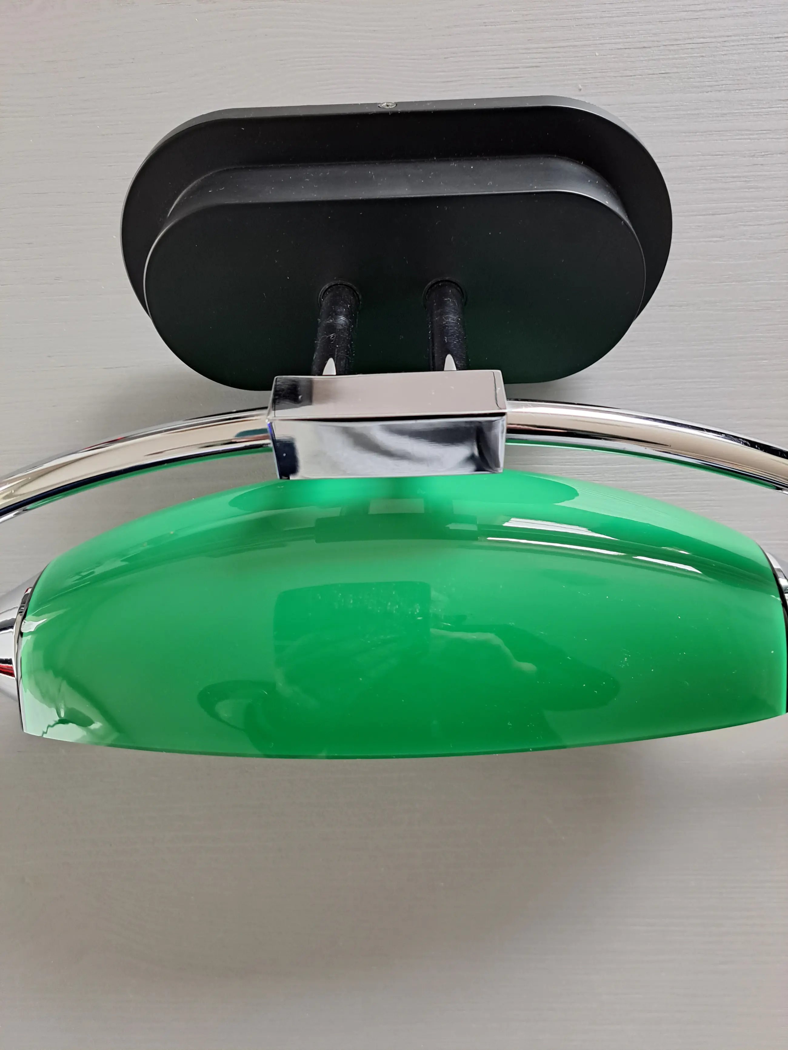 In goede staat, alleen op chrome houder rechts die weggewerkt is in de lamp zit een kleine beschadiging en enkel nauwelijks zichtbare krasjes op glas (zie foto's)