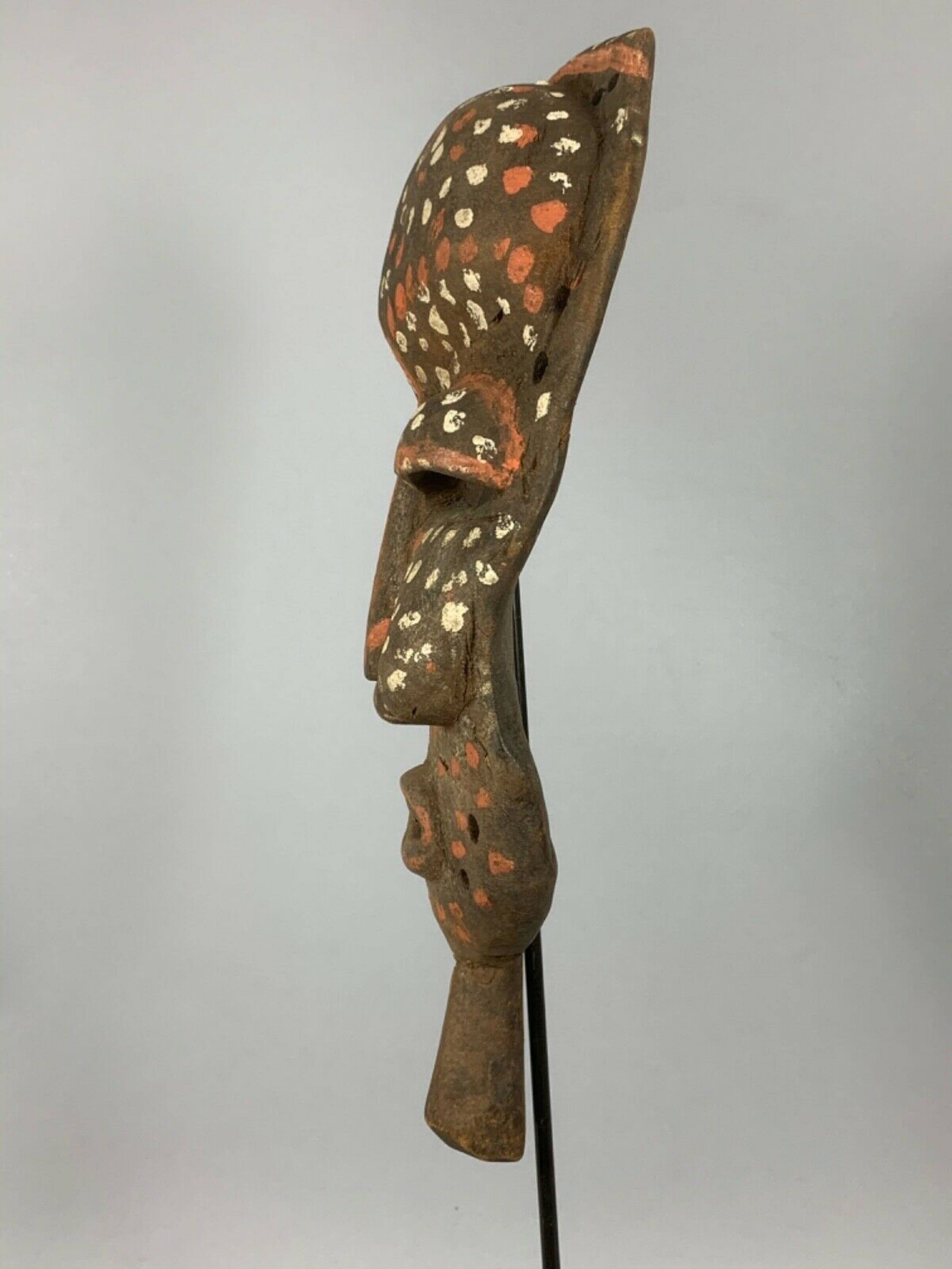Blacksmiths enjoyed enormous prestige, vestiges of which are still alive today. Blacksmiths and chiefs are considered of equivalent social status. When one or the other visits a village, his arrival must be honored by a day of rest for the entire population. Even though the society is matrilinear, the sculptor’s profession is transmitted from father to son. The ancestors are honored most especially during the masked celebration held in sanctuaries in the chiefs’ huts or on the edge of the forest. A statue of the chief’s wife sometimes stands atop the roof; it symbolizes fertility and emphasizes the importance of women.
