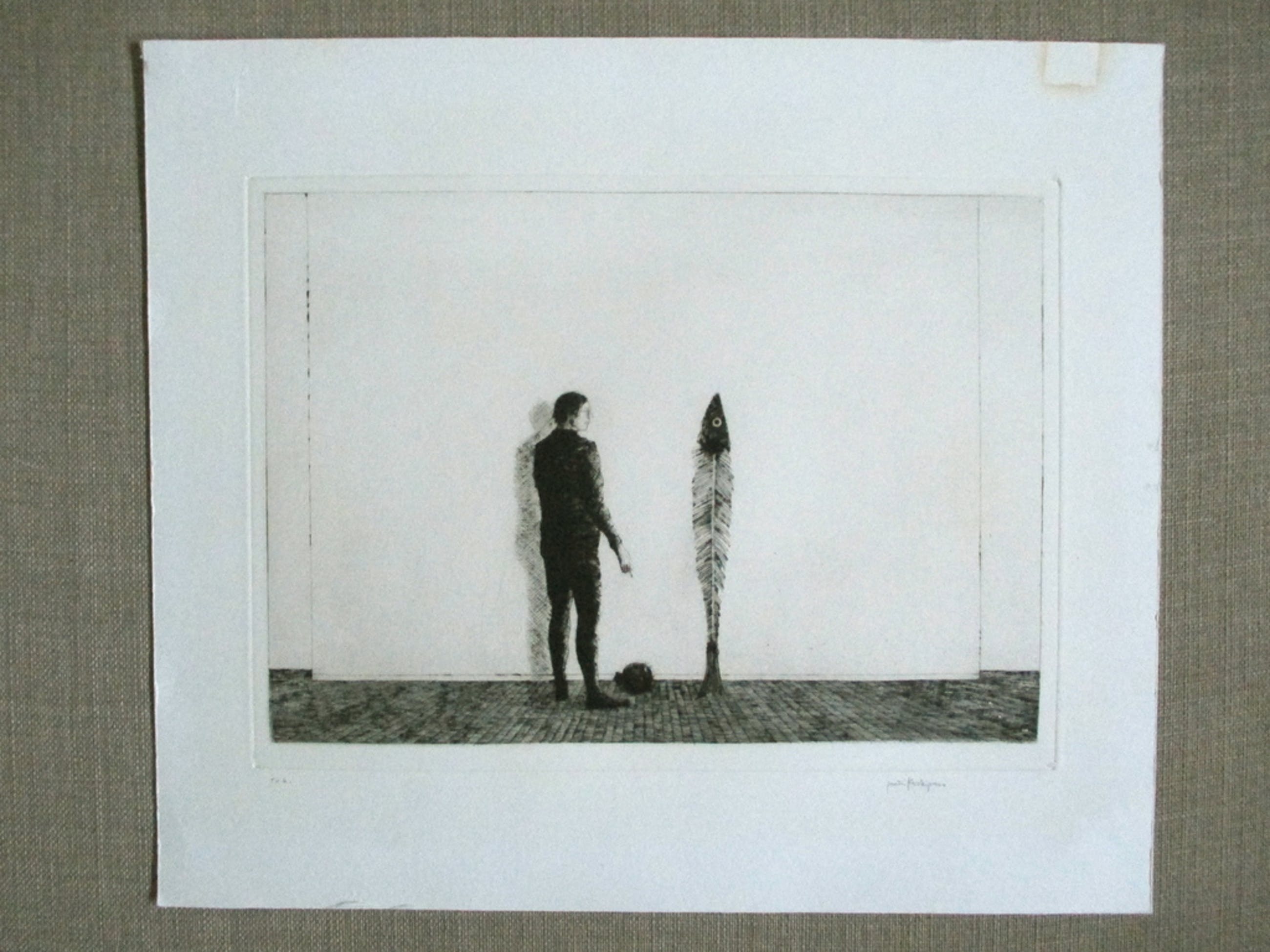Ets van de Finse kunstenaar Pentti Kaskipuro, r.o gesigneerd in potlood. Geen titel of datum. Afm. blad 37,3x32,2, beeld 29,5x22 cm. Dit blad is afkomstig uit de collectie van ABN AMRO.