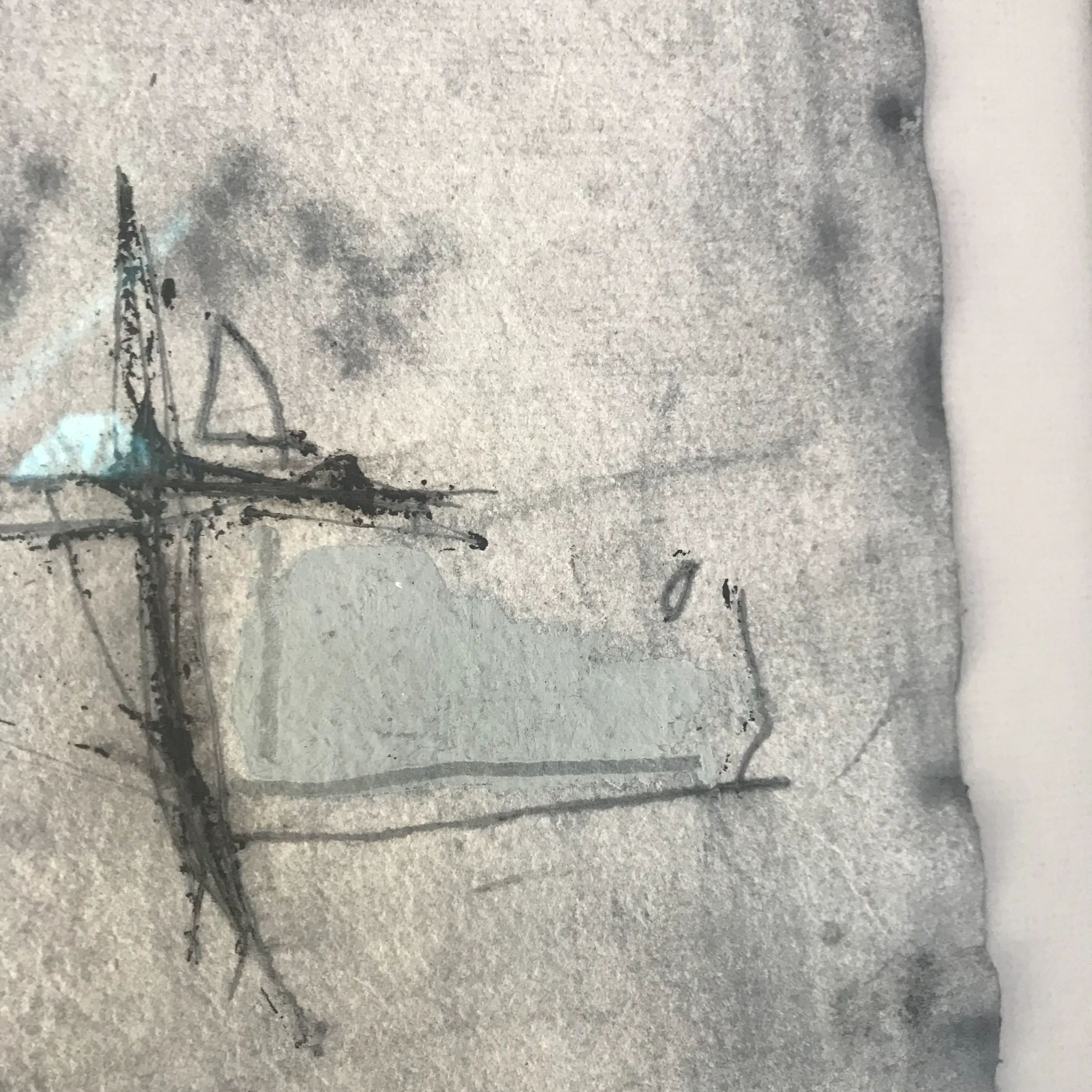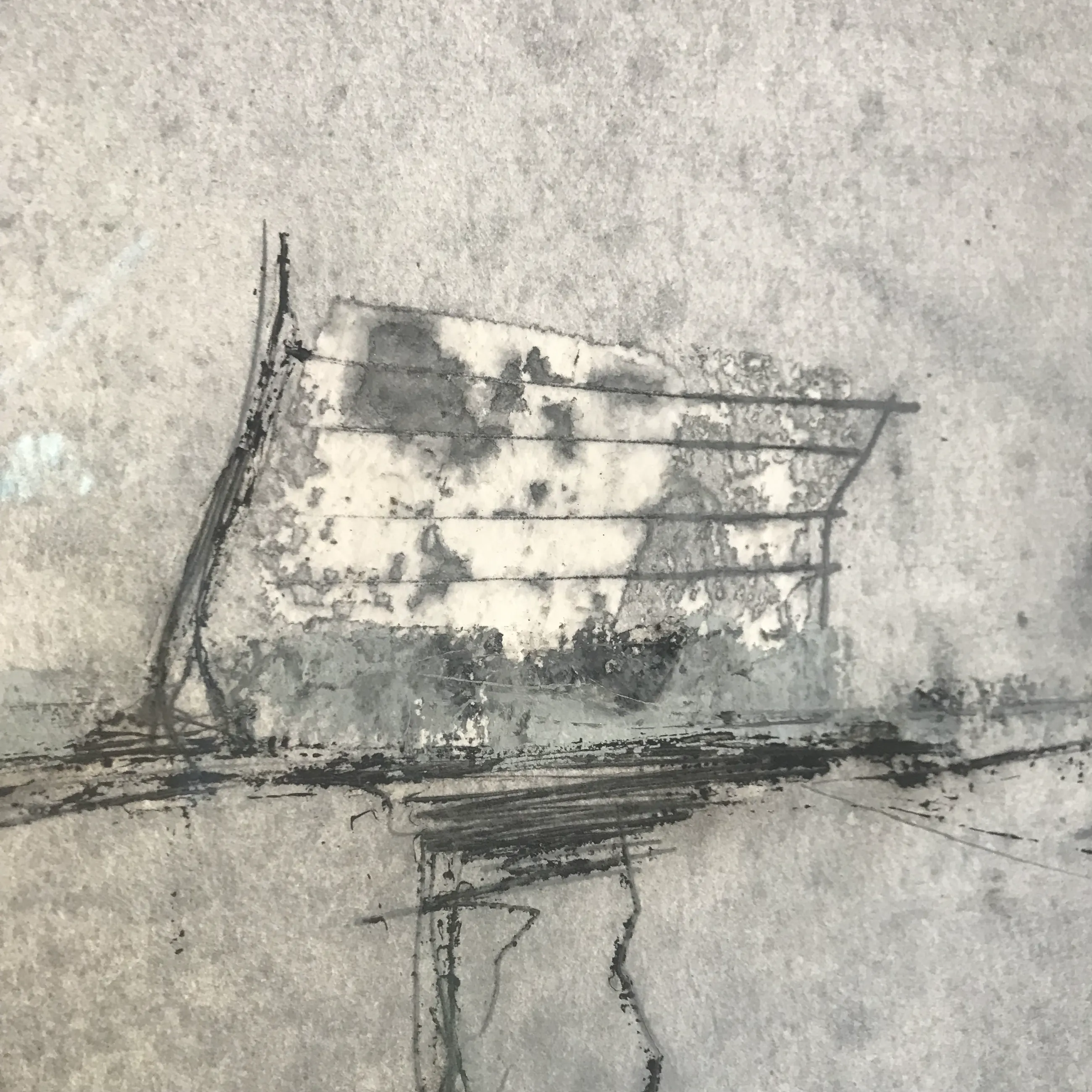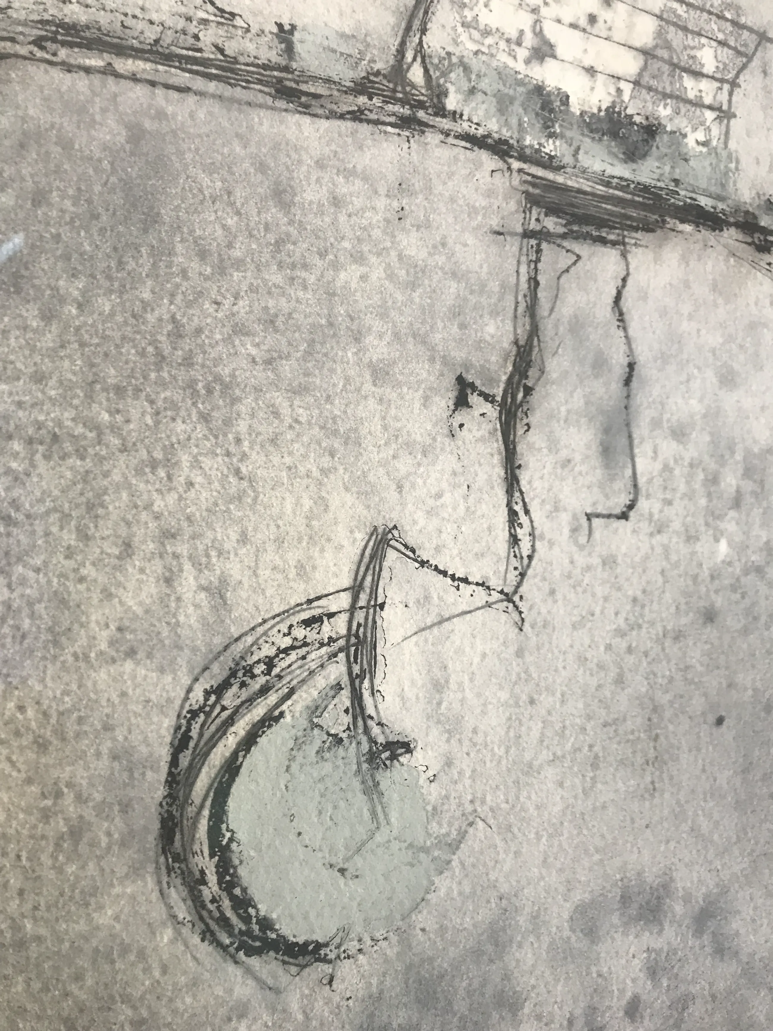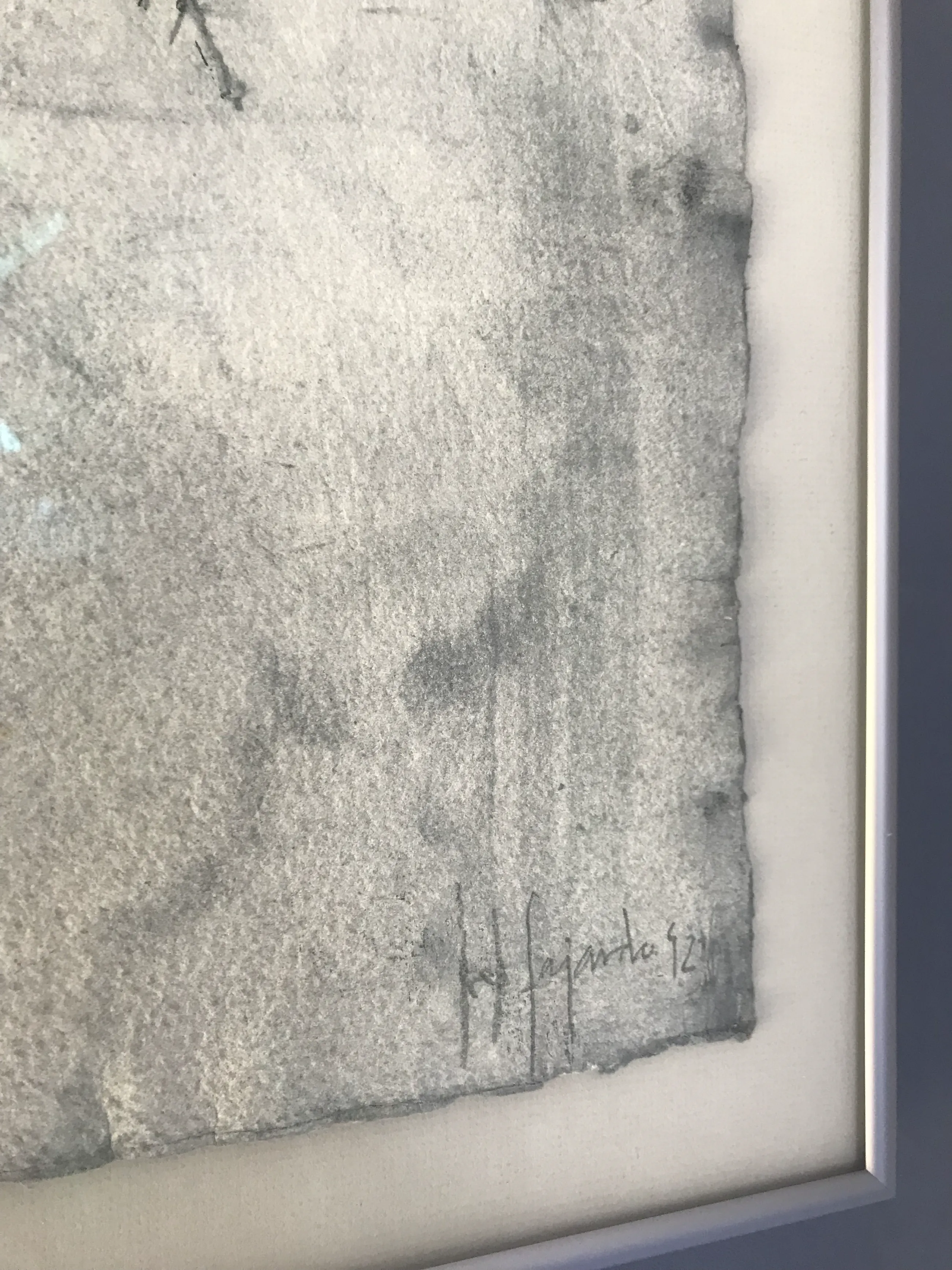 Pep Fajardo (Barcelona, 1961) Gemengde techniek (carborundum) op papier gesigneerd en gedateerd in 1992 in potlood. Mooi ingelijst. Blauw-grijze tinten. Gesigneerd en gedateerd door de kunstenaar RO.