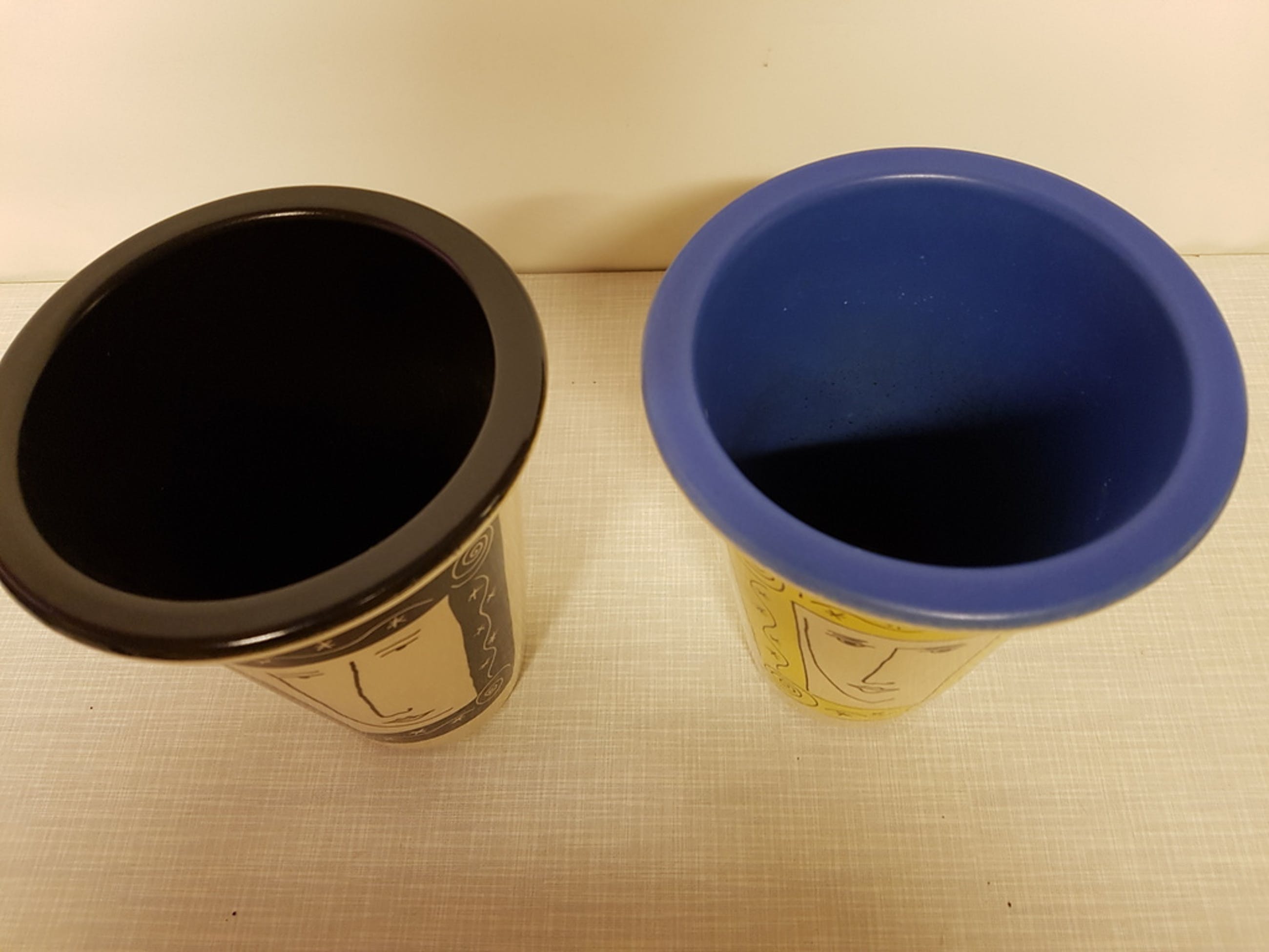 De vaas is uitgekomen in verschillende kleurontwerpen, waarvan hier twee verschillende