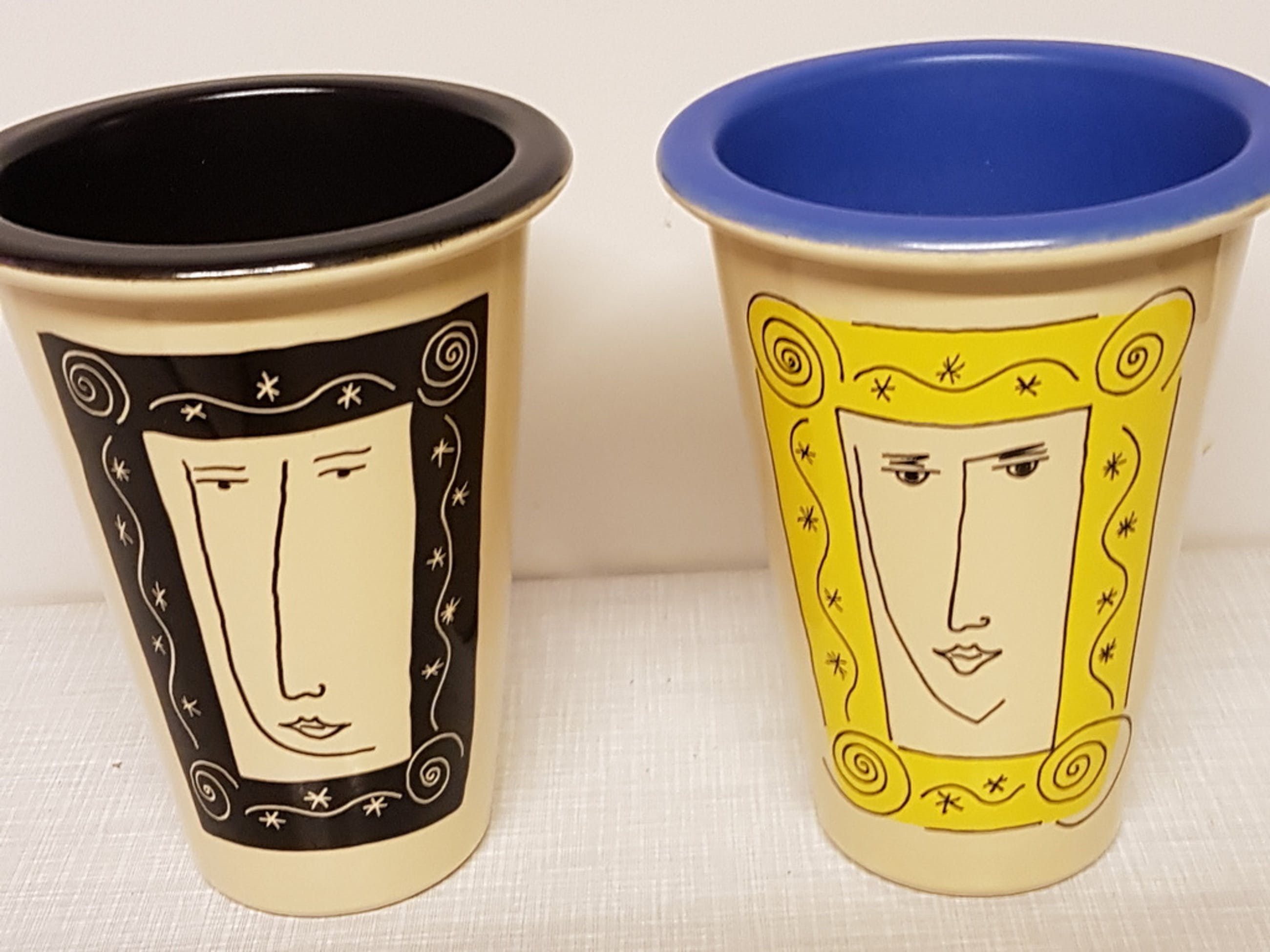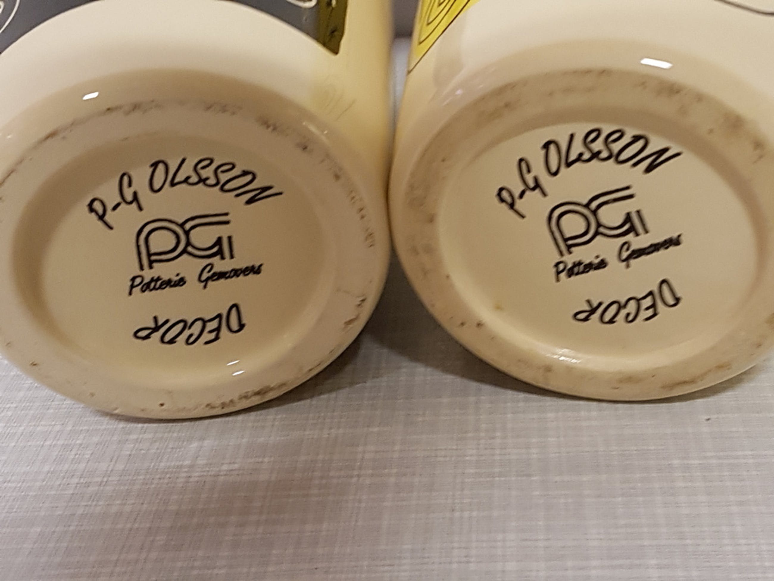 2 mooie vazen uit de jaren 80/90 gemaakt en ontworpen door P-G Olsson in zijn Nederlandse periode voor Potterie Gemovers waar hij 10 jaar heeft gewerkt als free lance designer. Hij kreeg zijn opleiding o.a. in Den Bosch. Daarna ging hij terug naar Zweden waar hij een eigen atelier heeft.