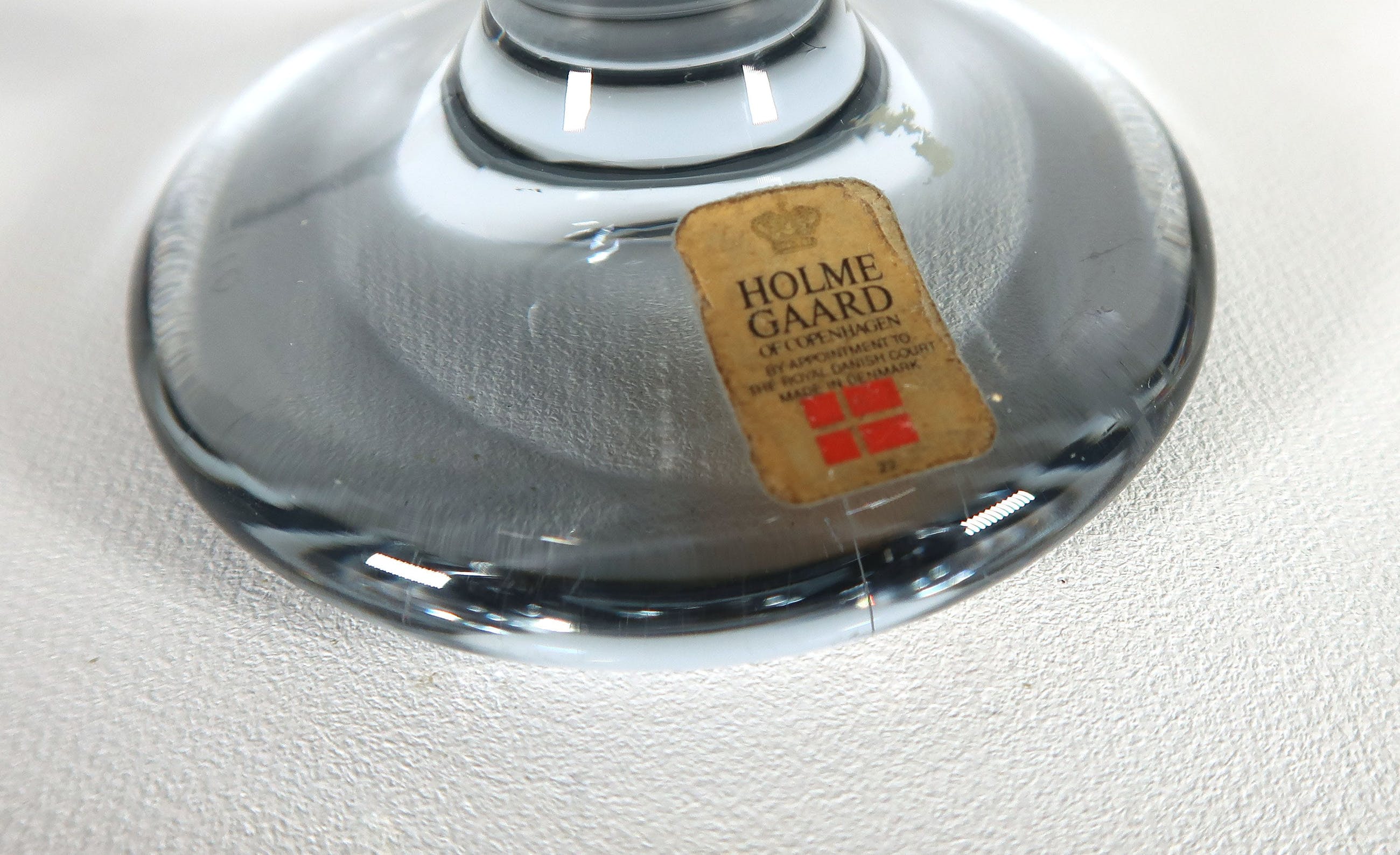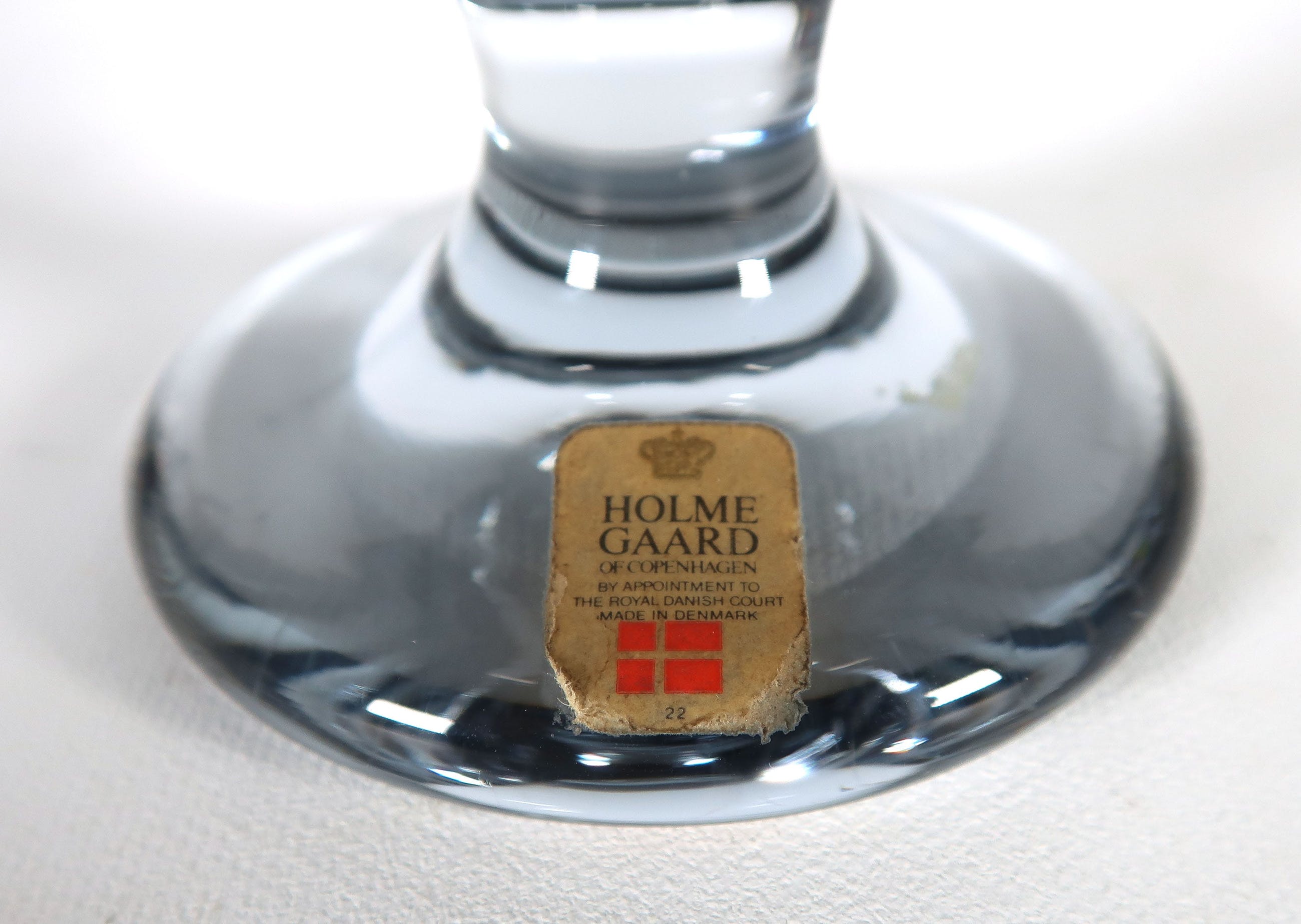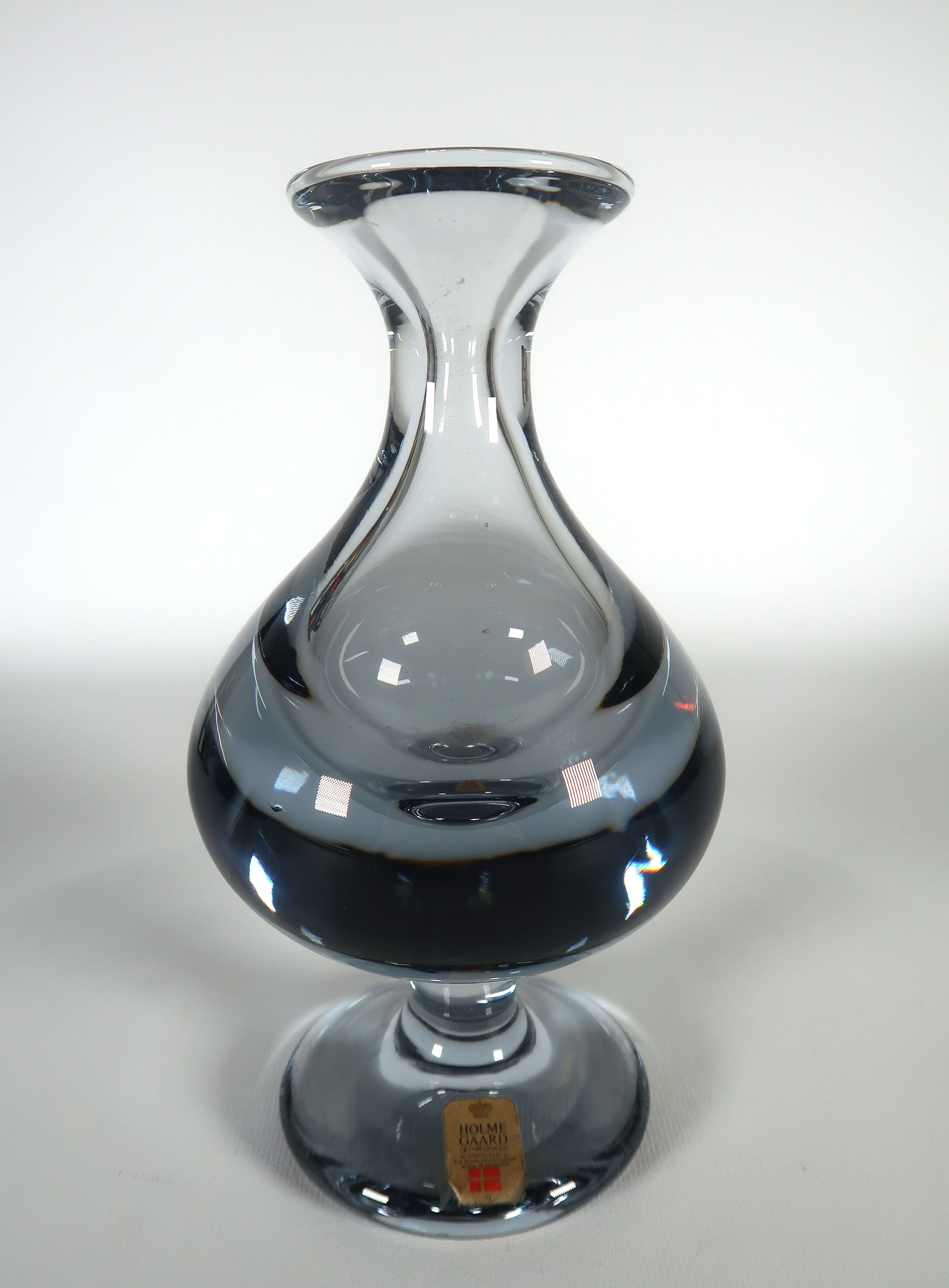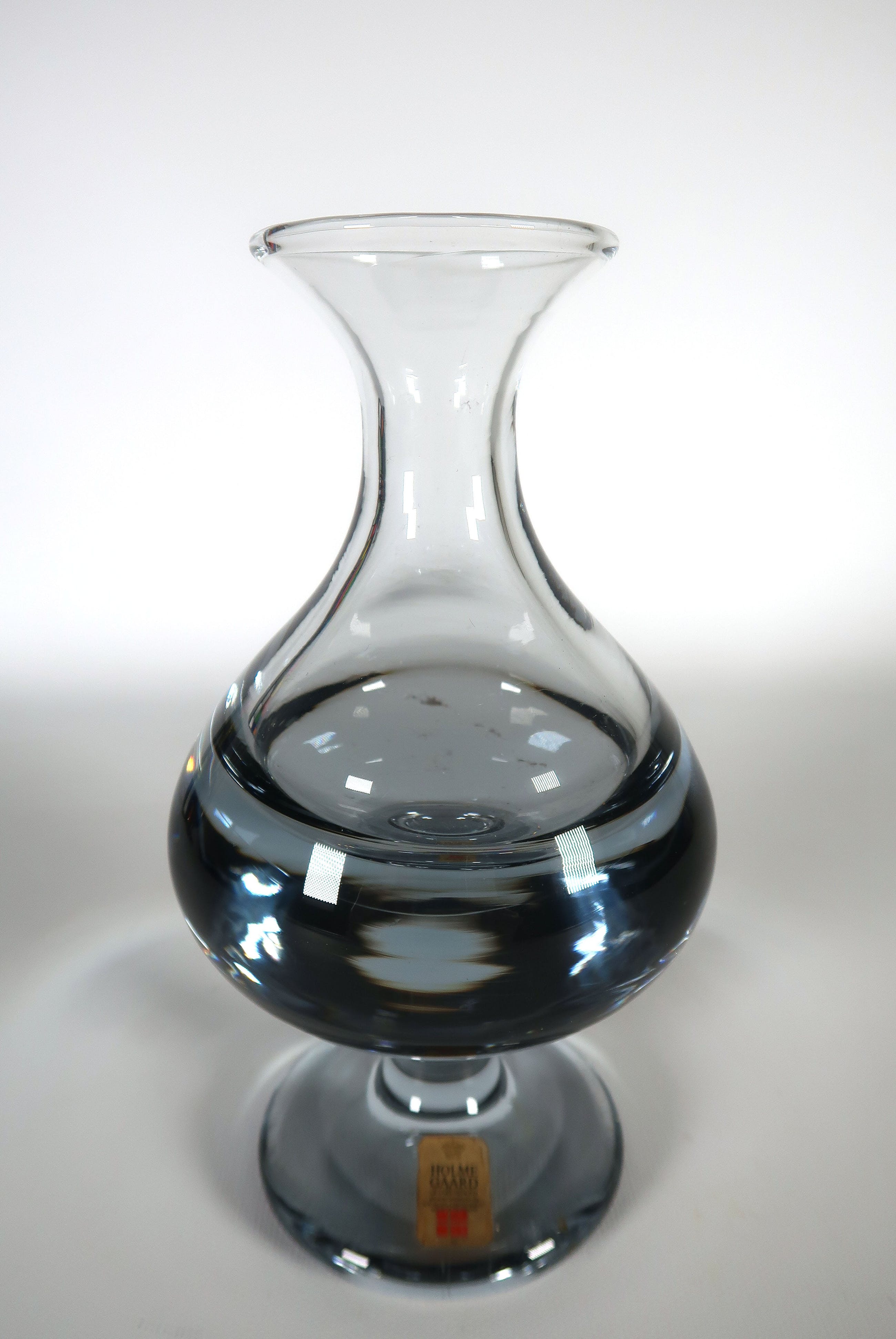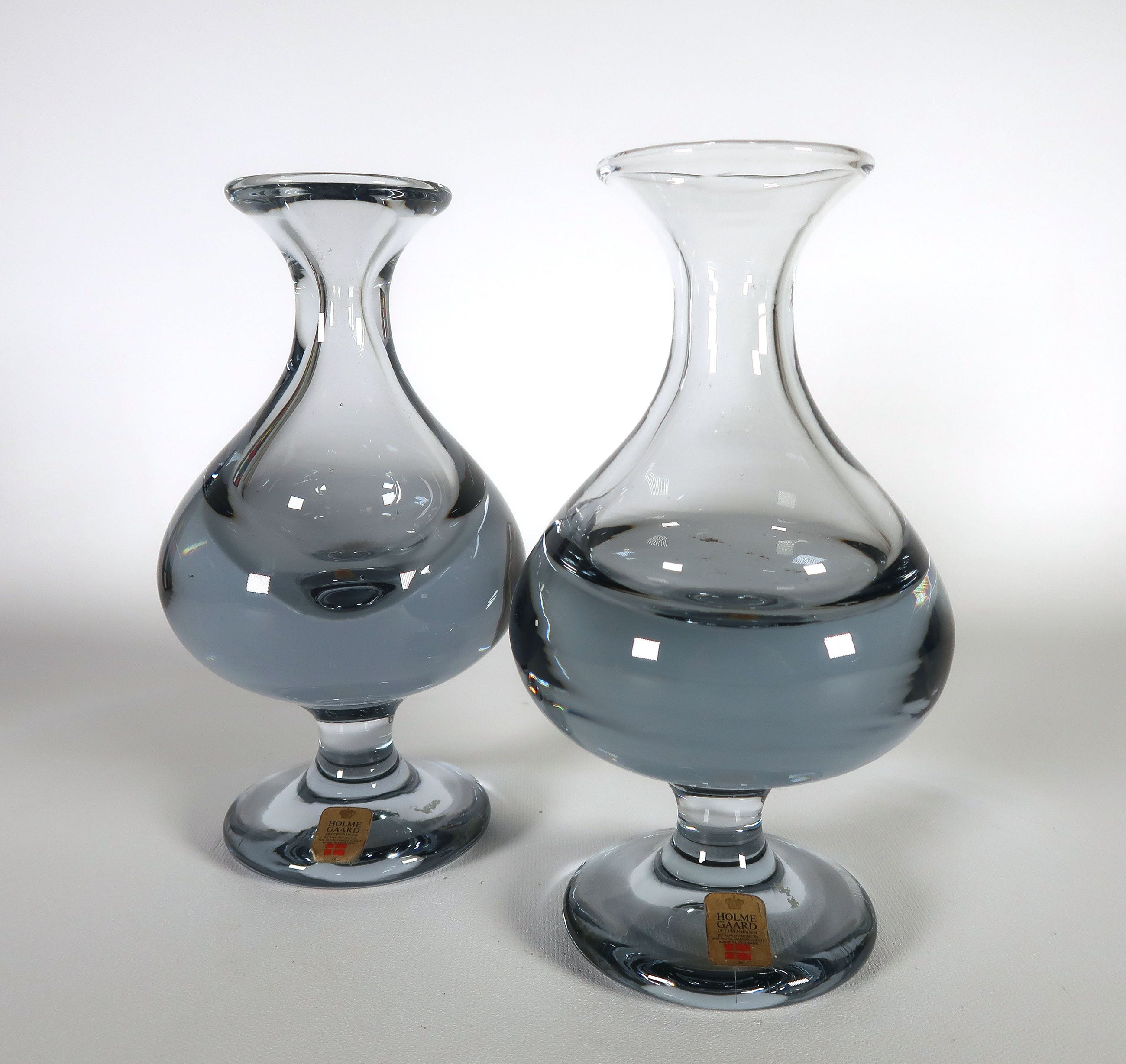 Beide vaasjes hebben dezelfde afmetingen, zijn voorzien van Holmegaard stickers en zijn aan de onderzijde gesigneerd met: ''Holmegaard 10.410''