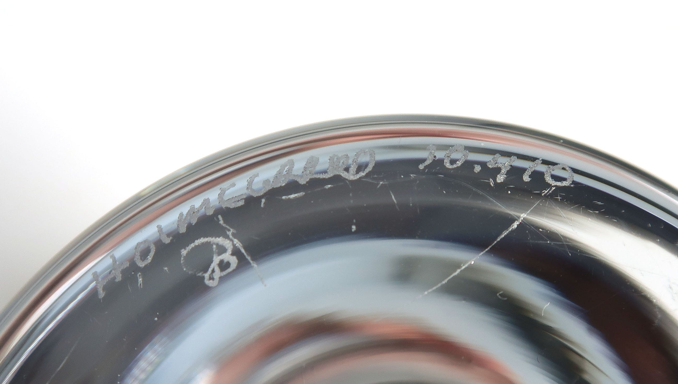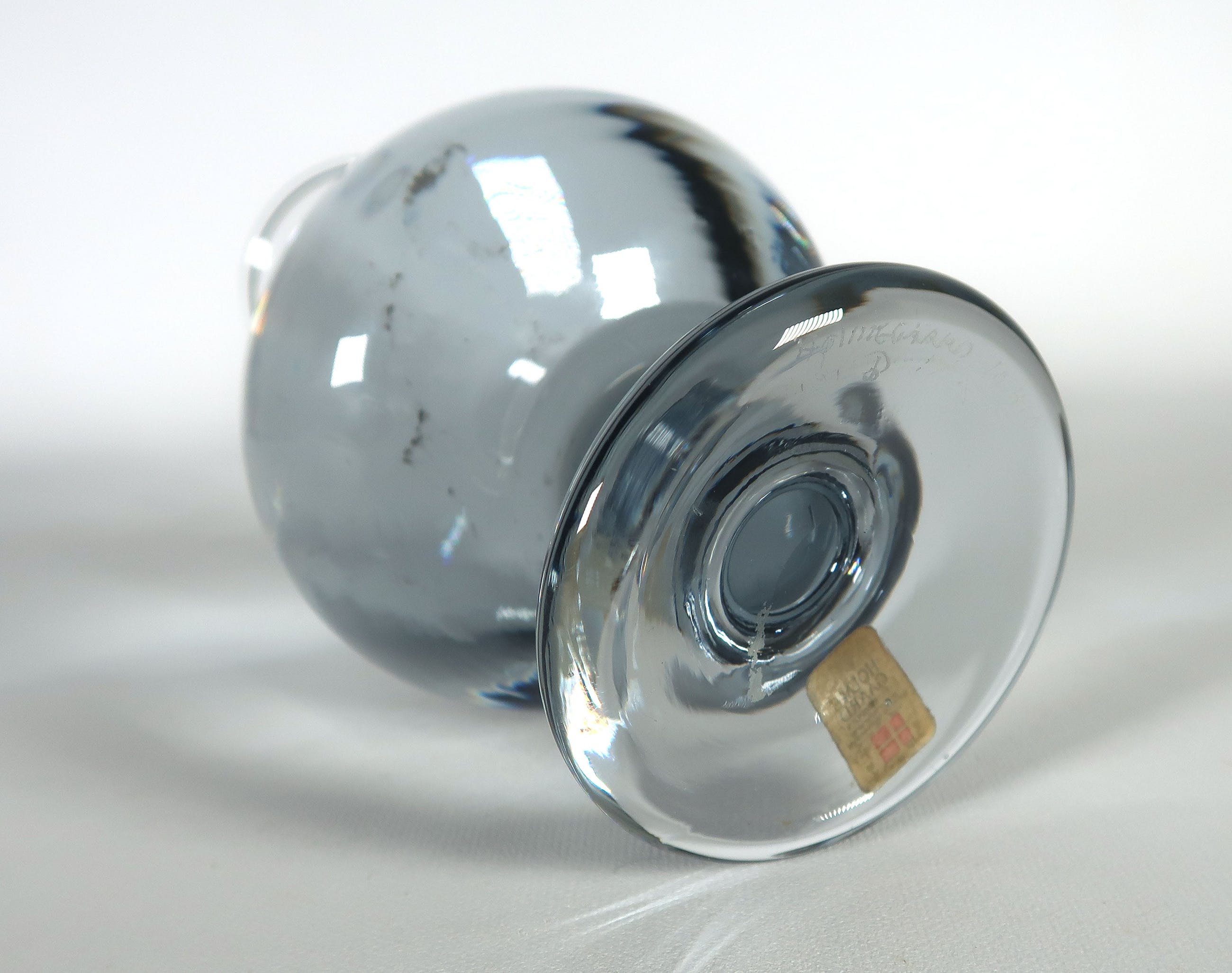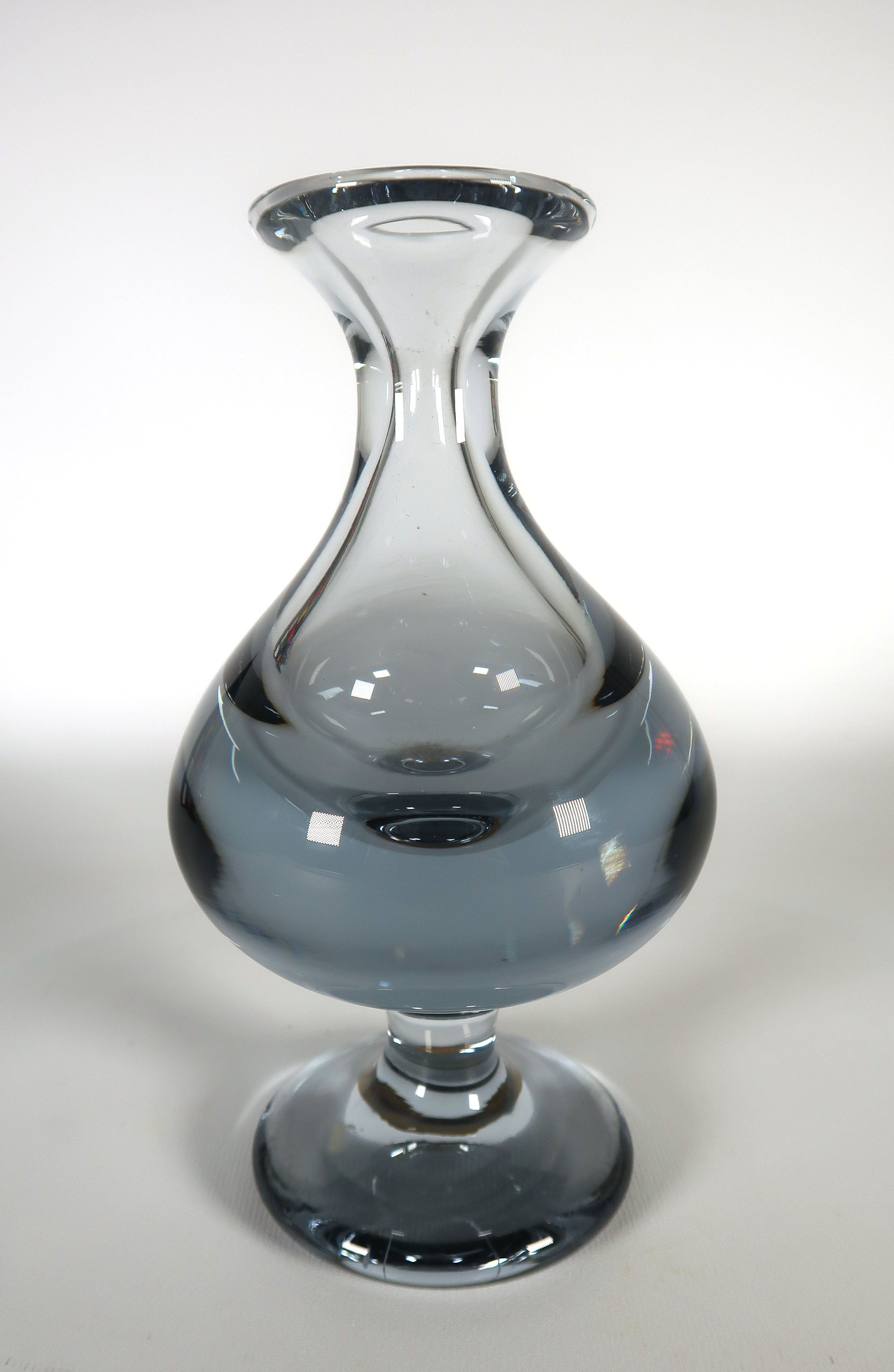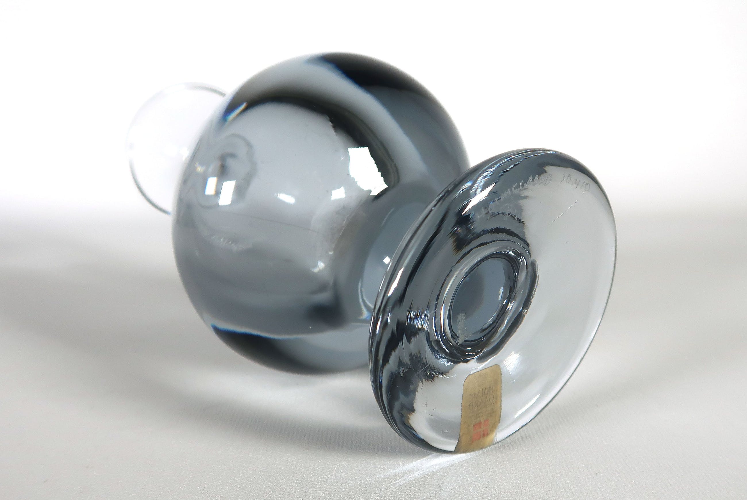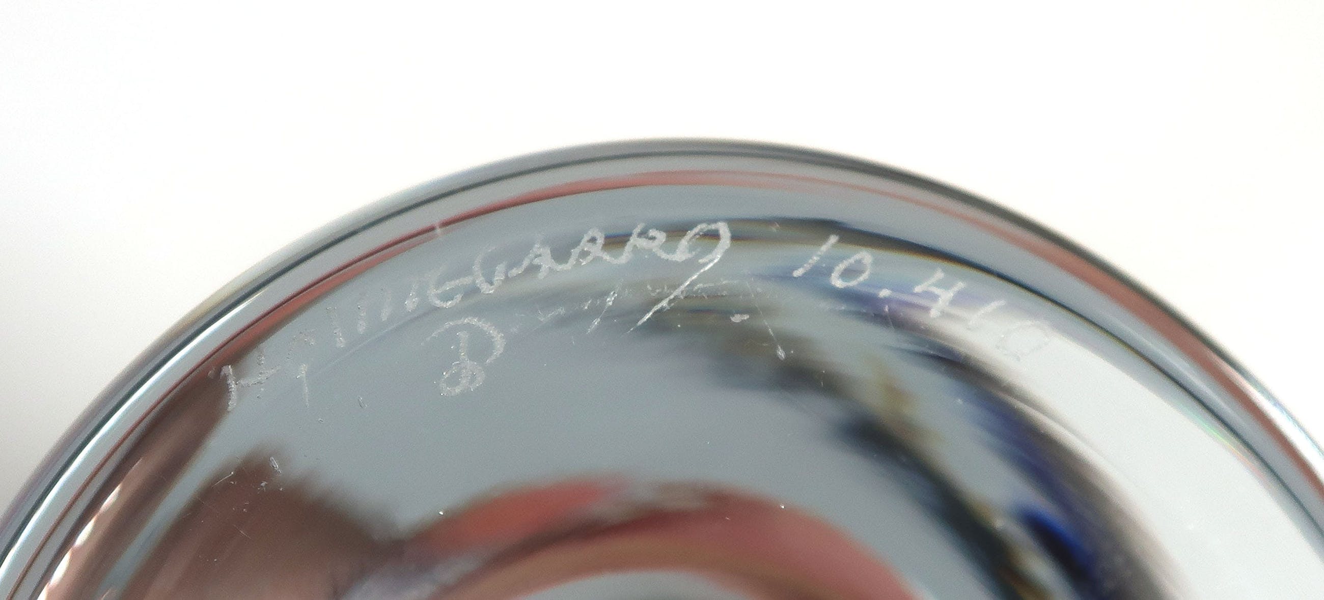 Beide vaasjes hebben dezelfde afmetingen, zijn voorzien van Holmegaard stickers en zijn aan de onderzijde gesigneerd met: ''Holmegaard 10.410''