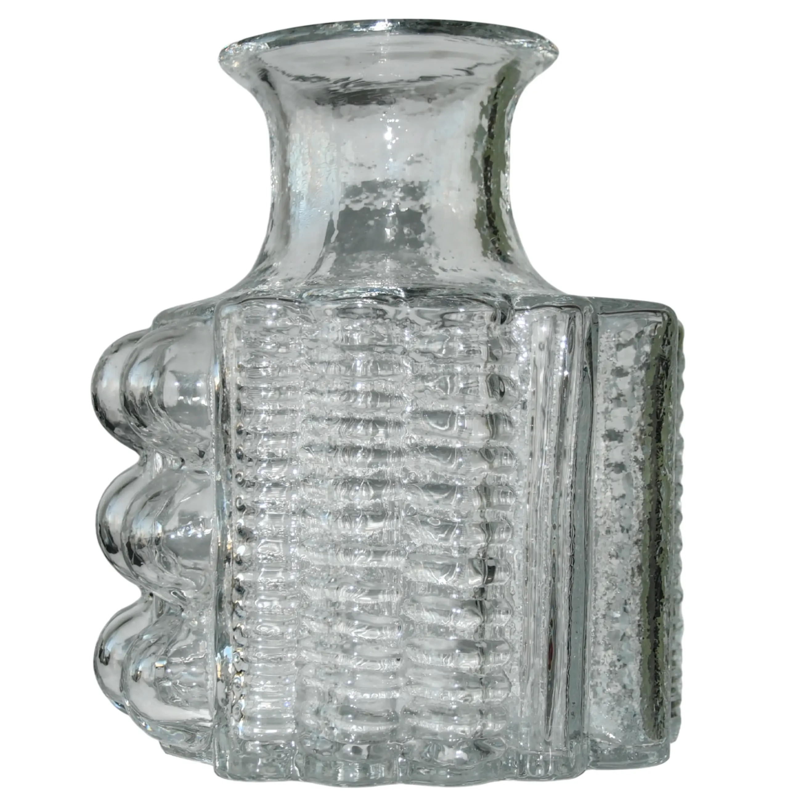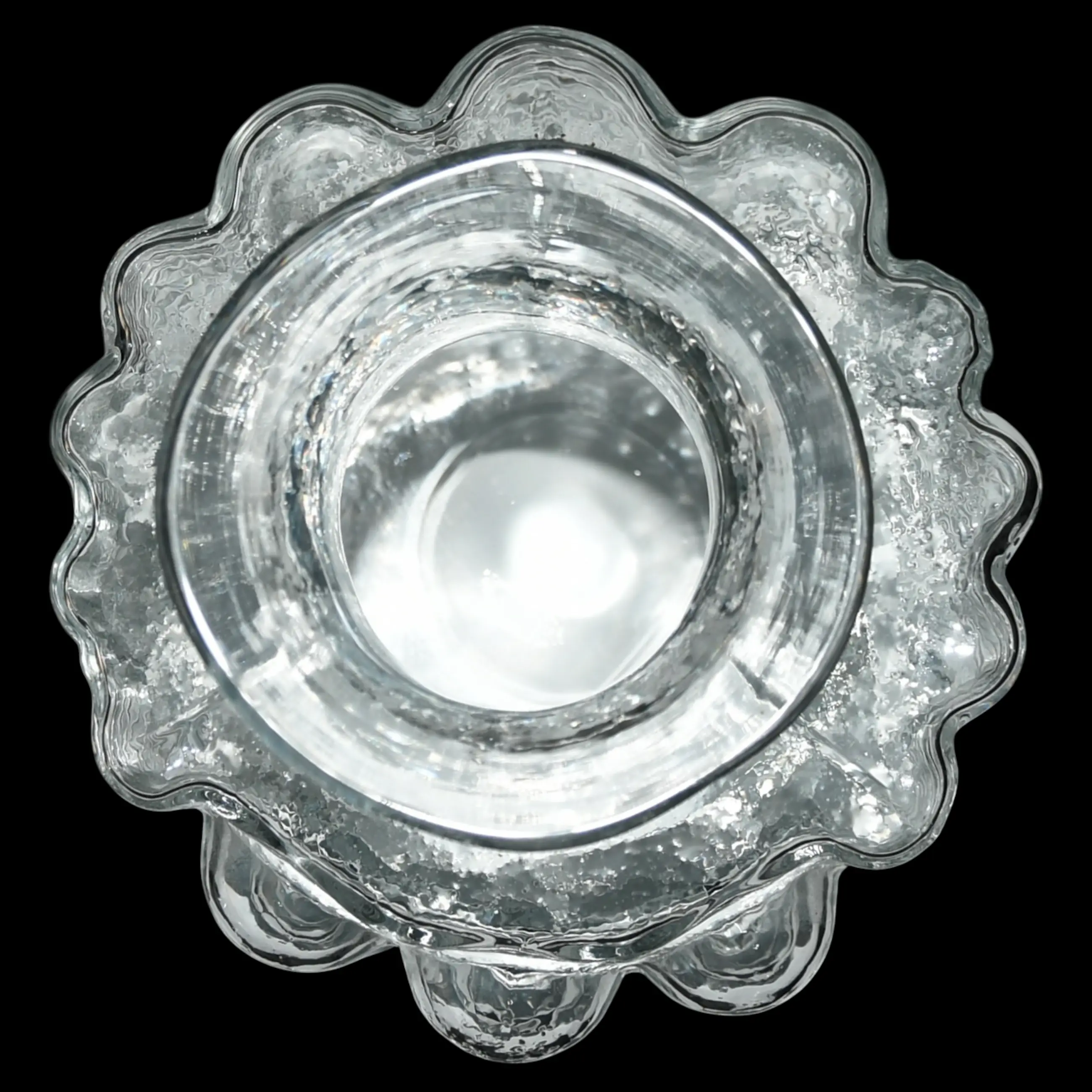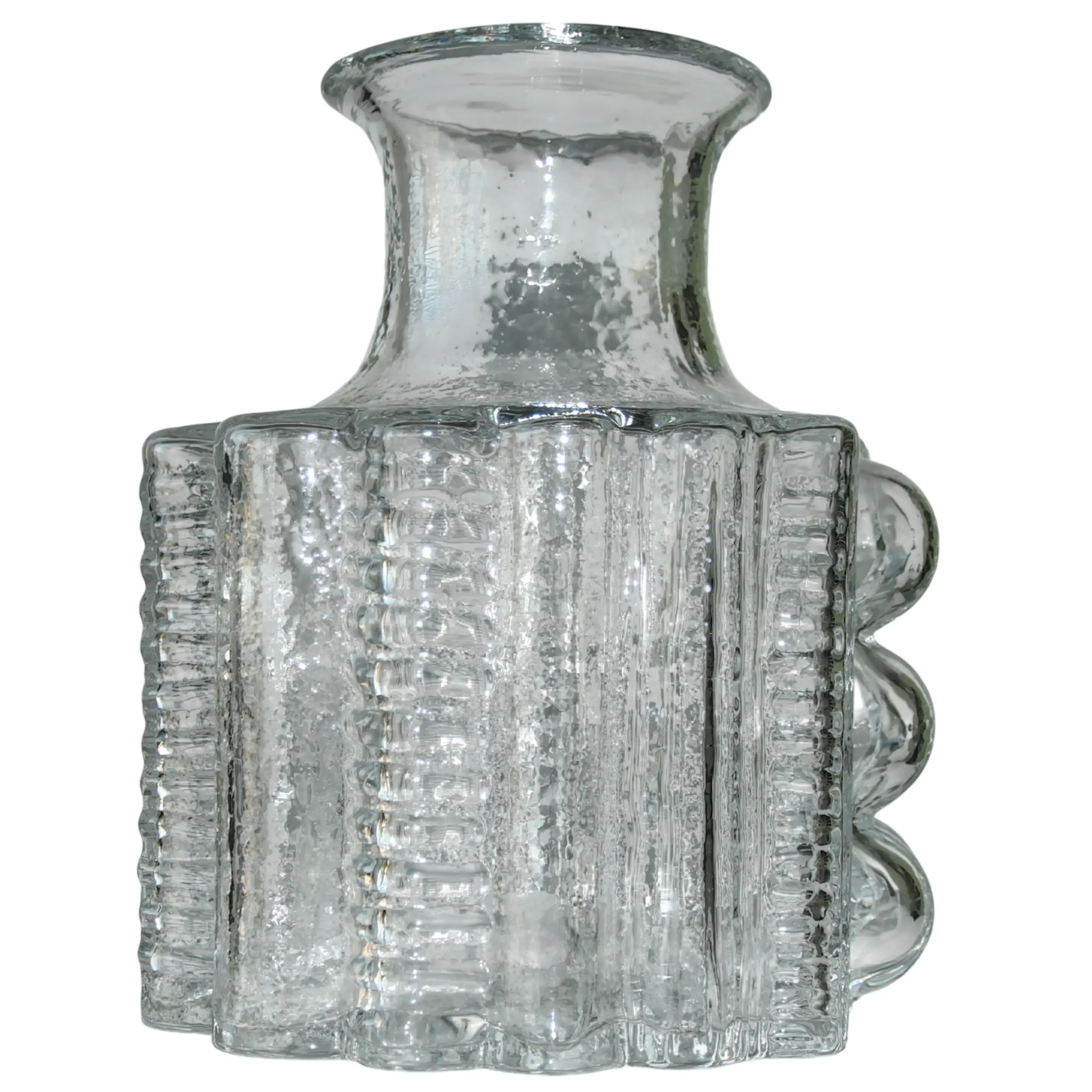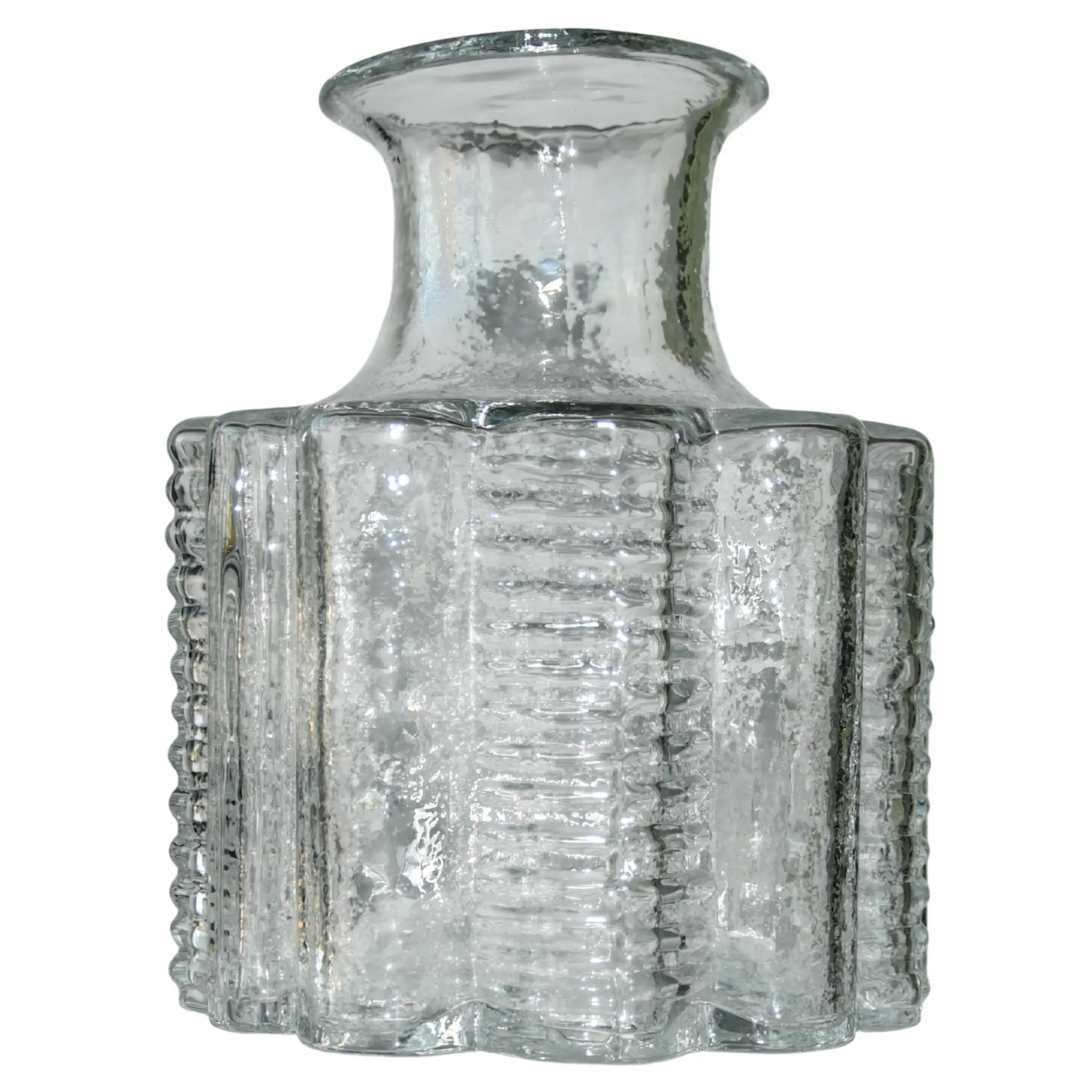 Een prachtige Scandinavische zware vaas van getextureerd doorzichtig mondgeblazen glas.