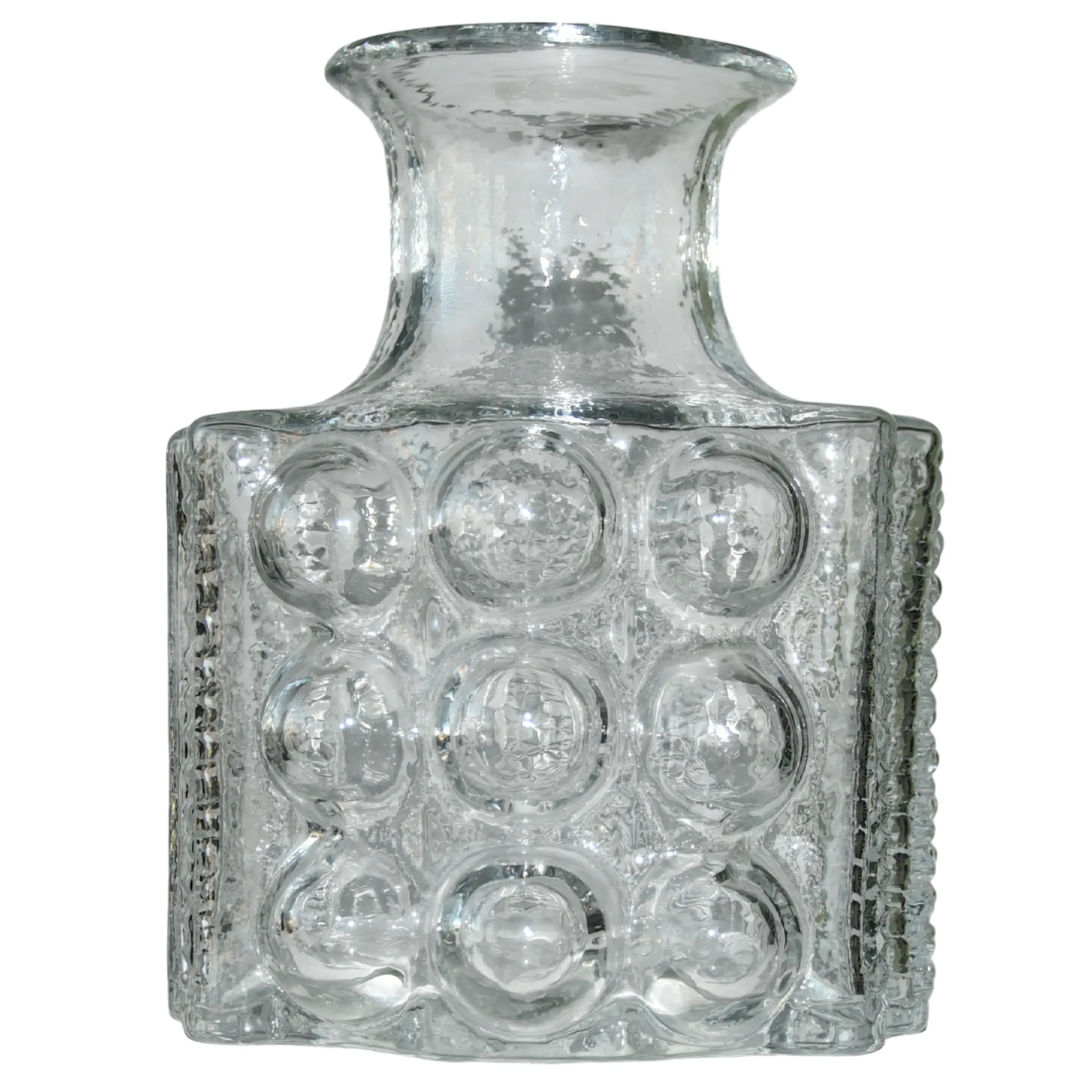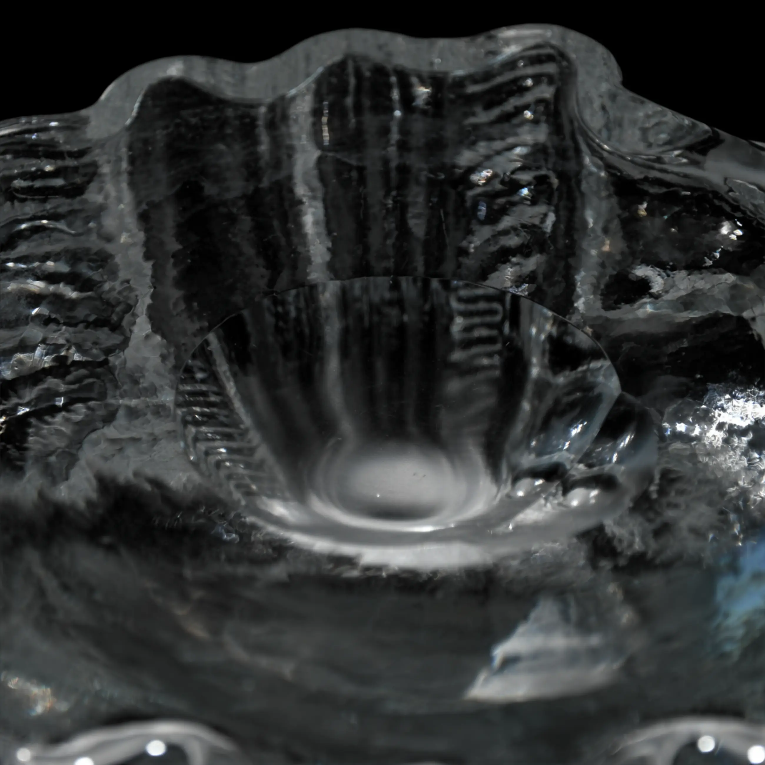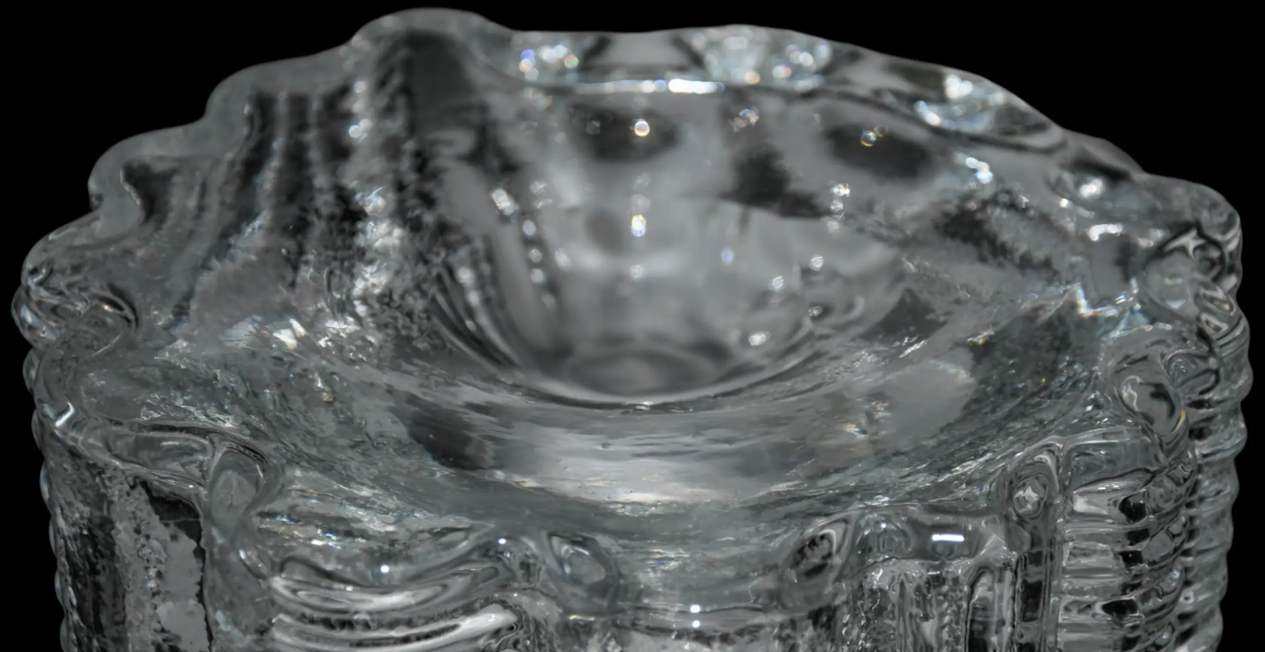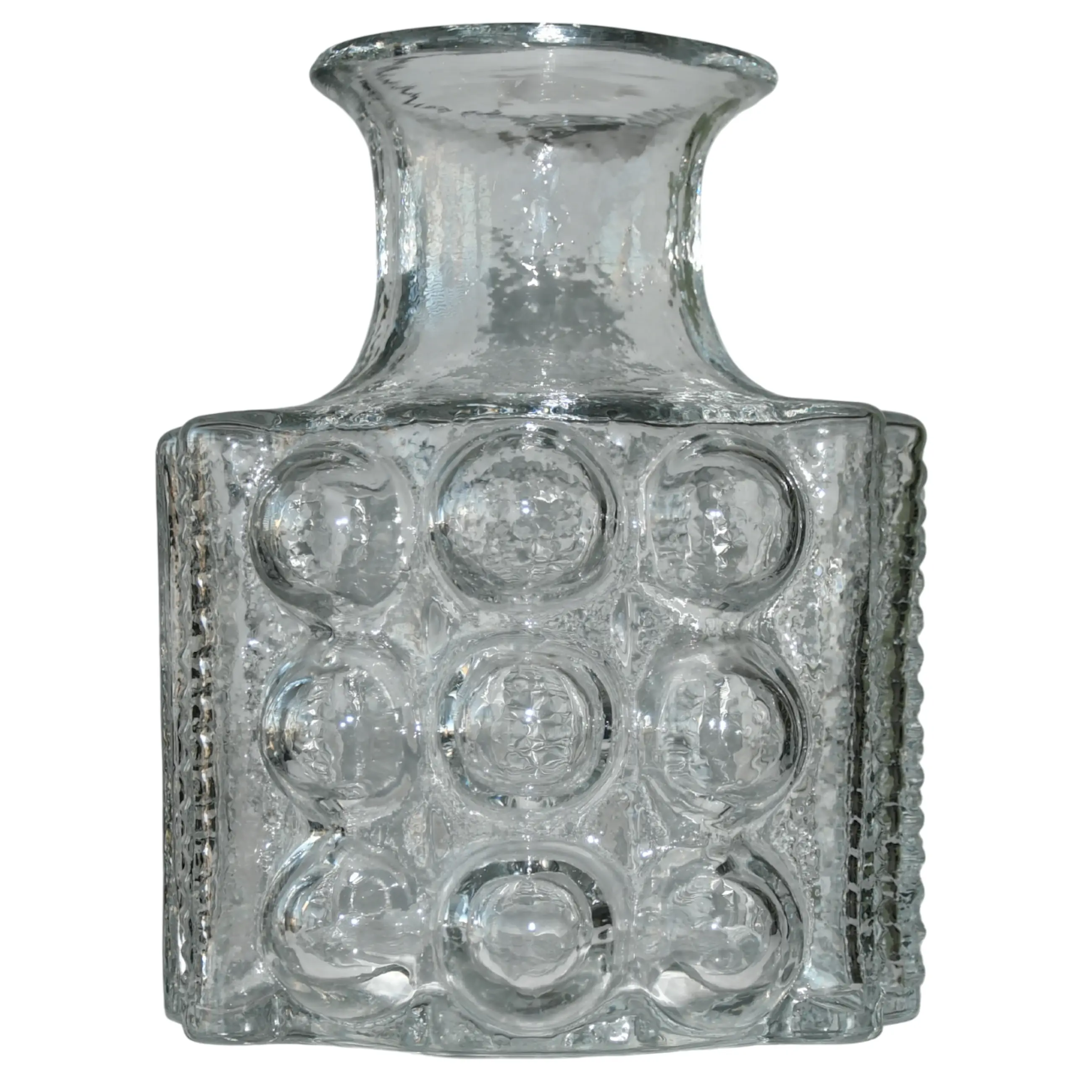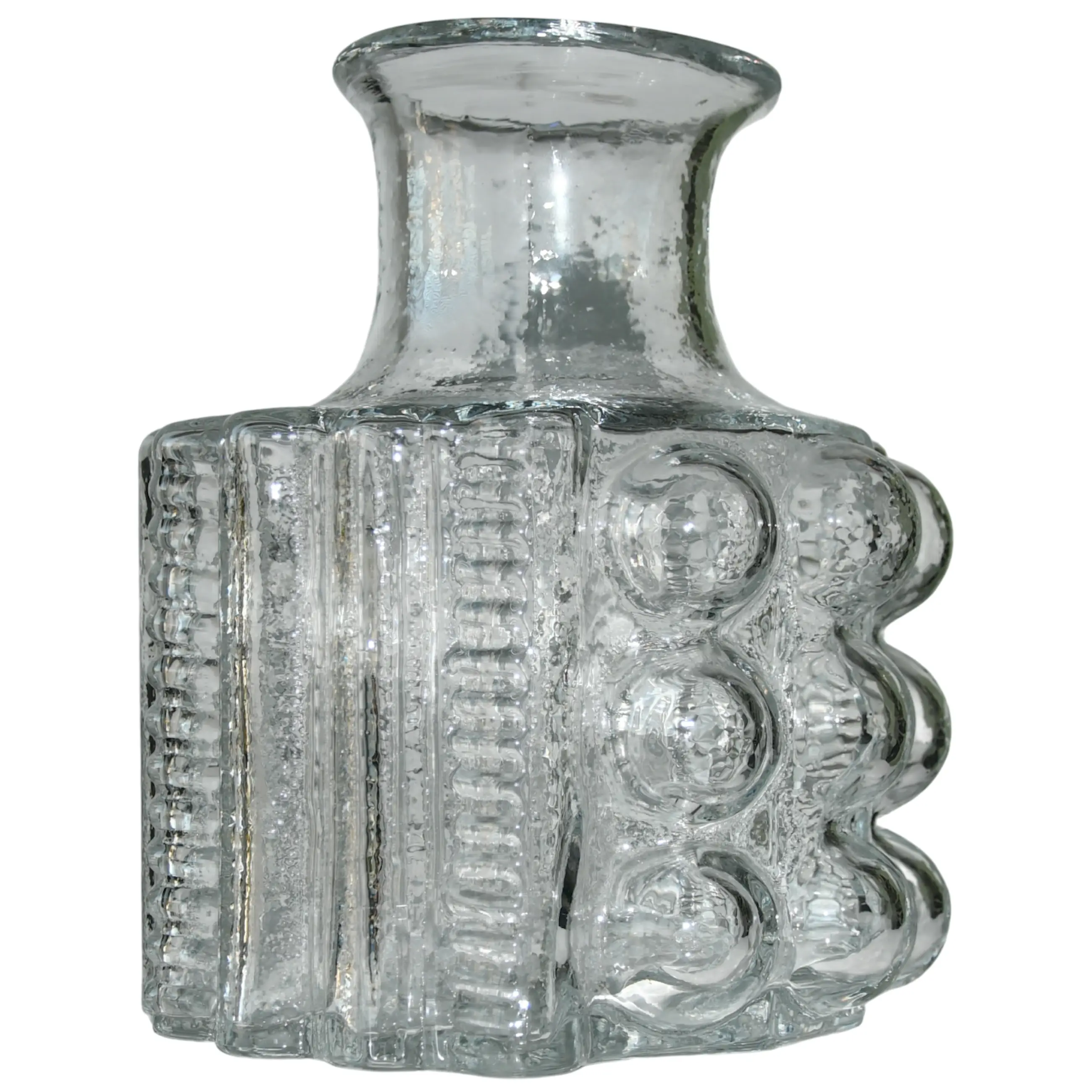 Een prachtige Scandinavische zware vaas van getextureerd doorzichtig mondgeblazen glas.