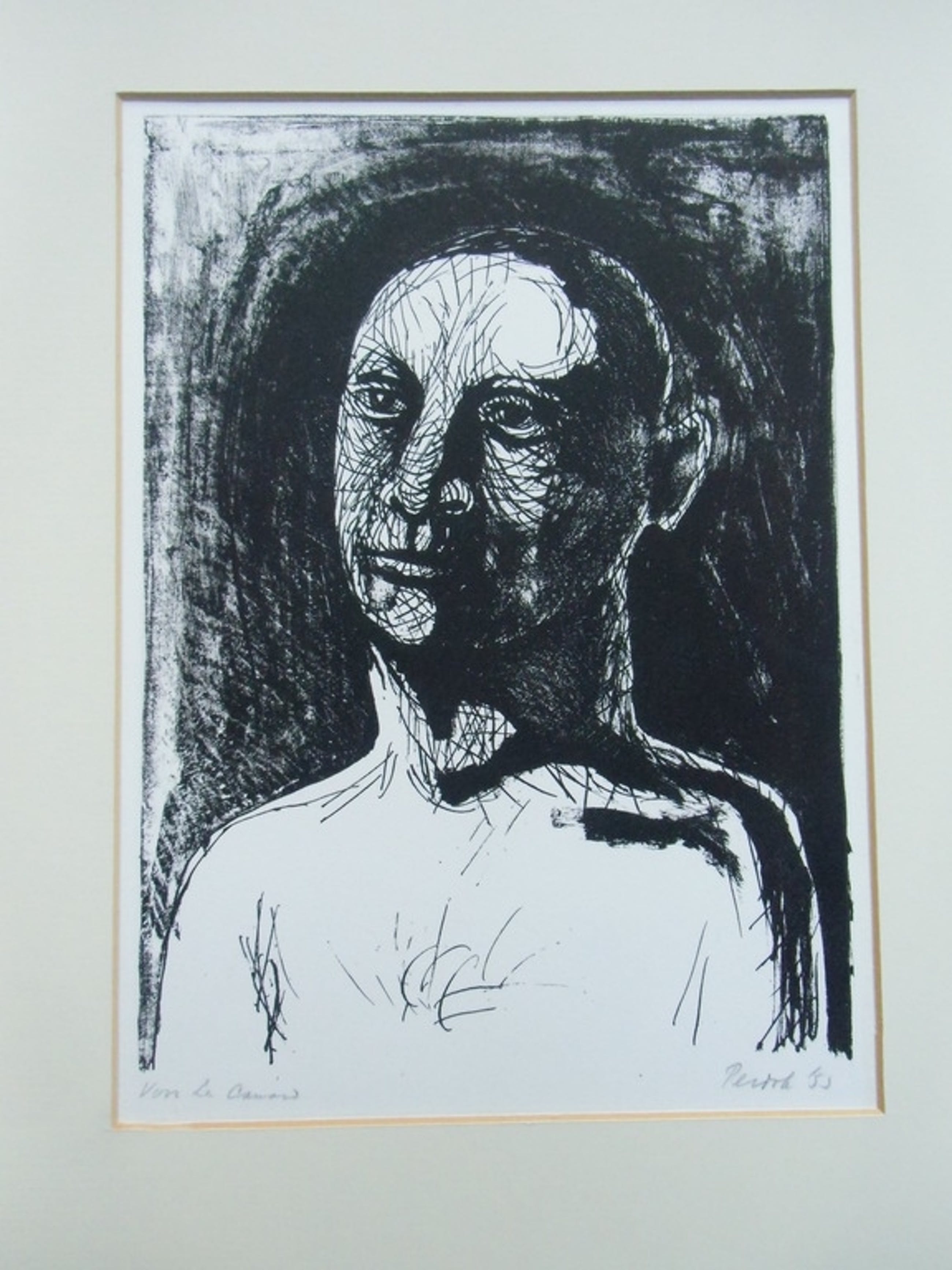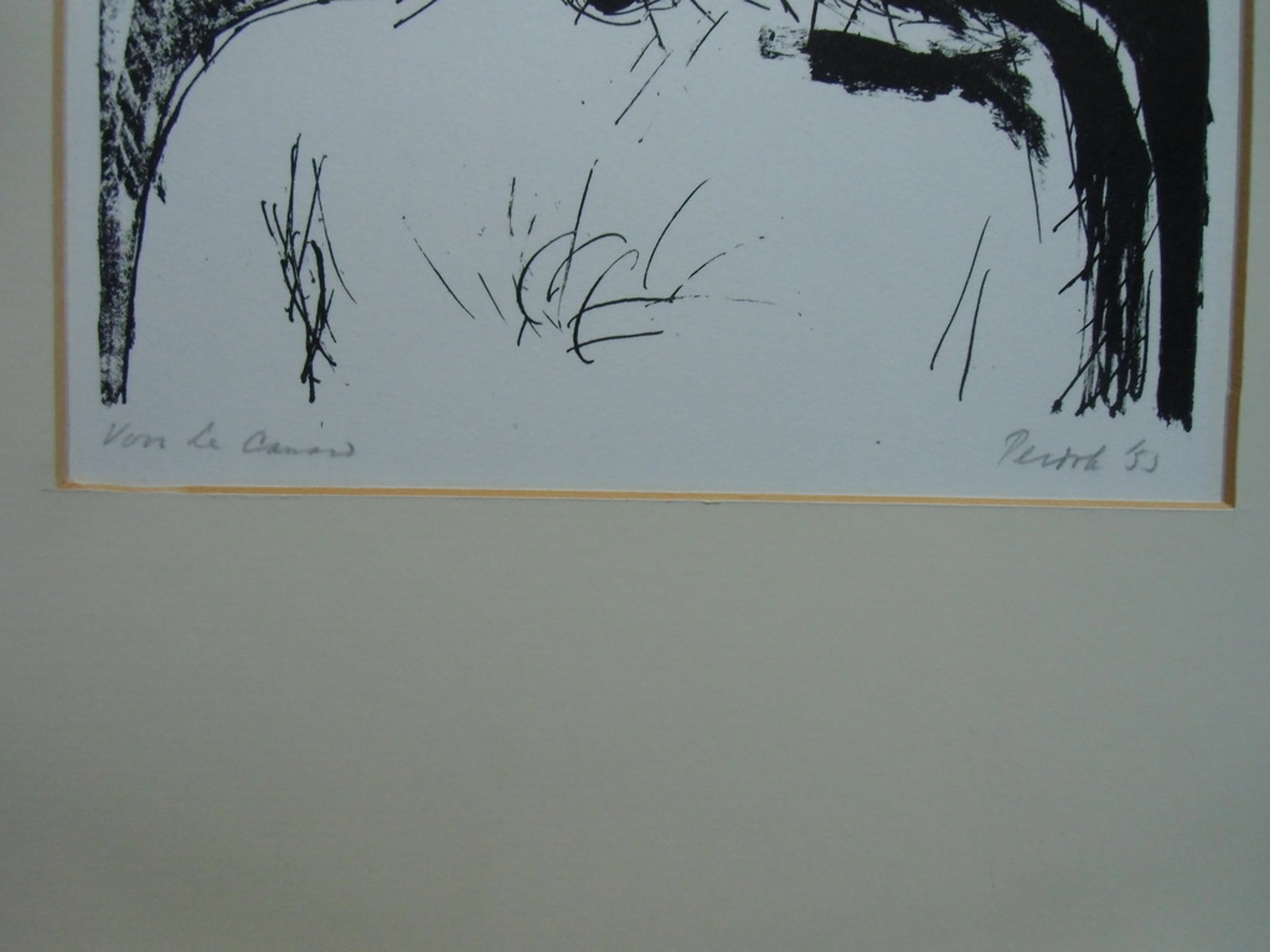 De litho is in goede conditie en gesigneerd en betiteld met potlood. Jaar 1953. Afmetingen beeld 29.6 x 21.7 cm. Opgenomen in passepartout.