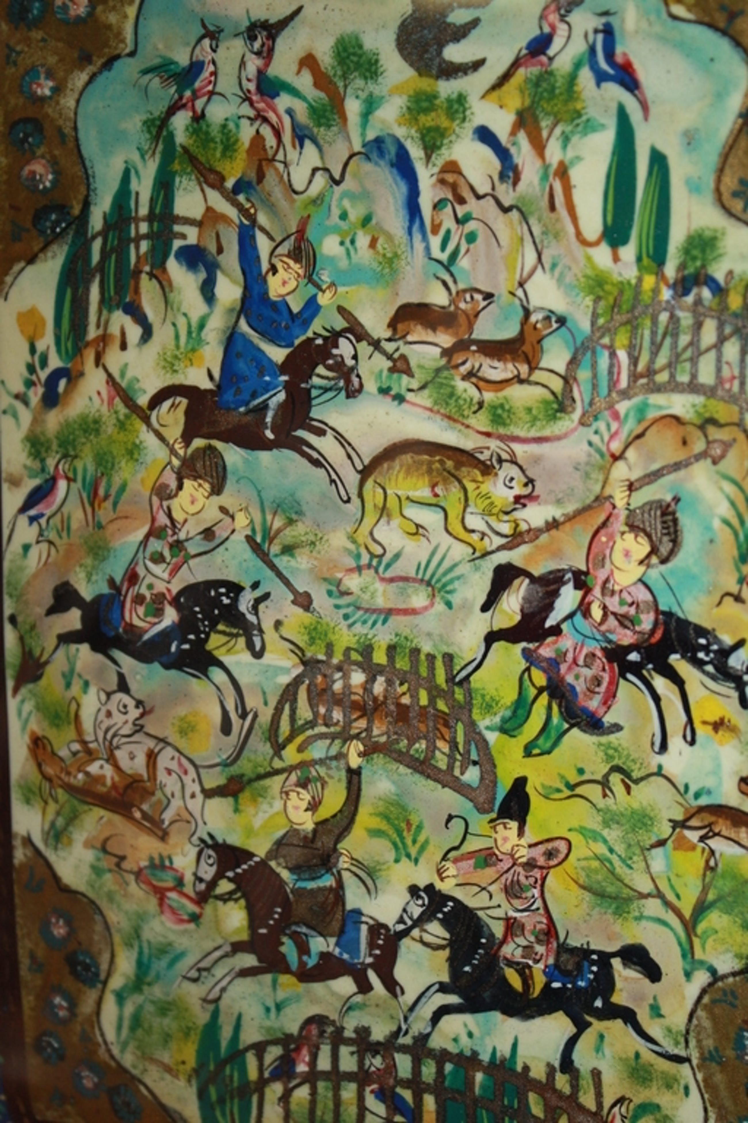 In een zeer fraai intarsia ingelegd lijstje in de maat 22 x 28 cm