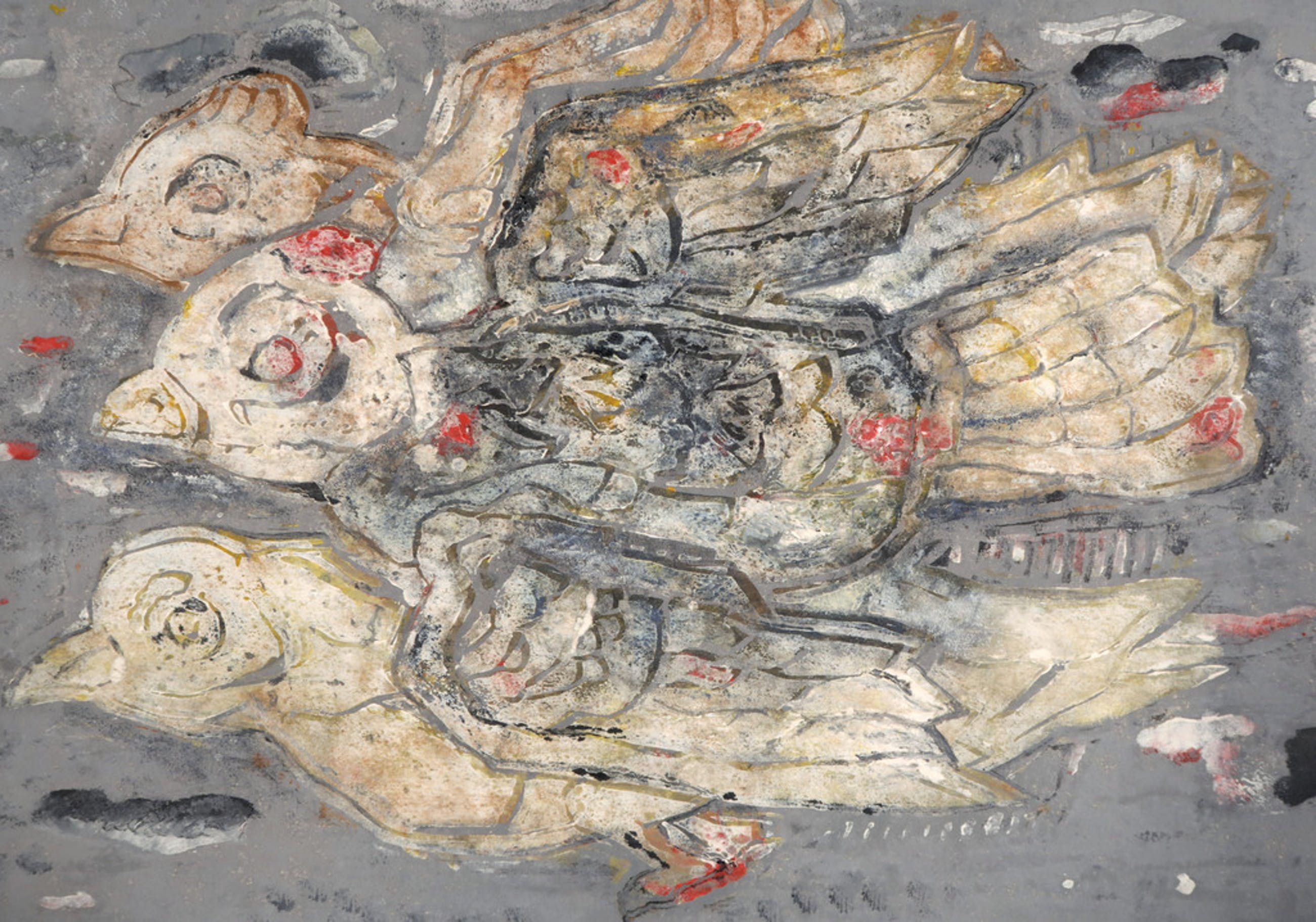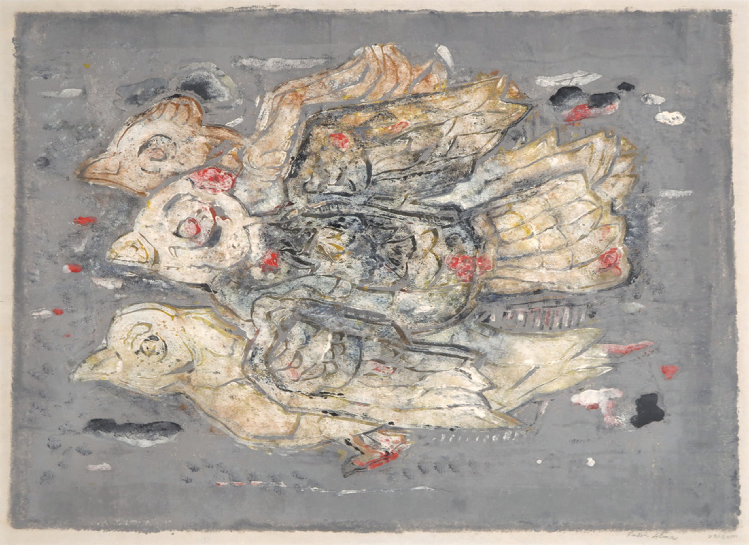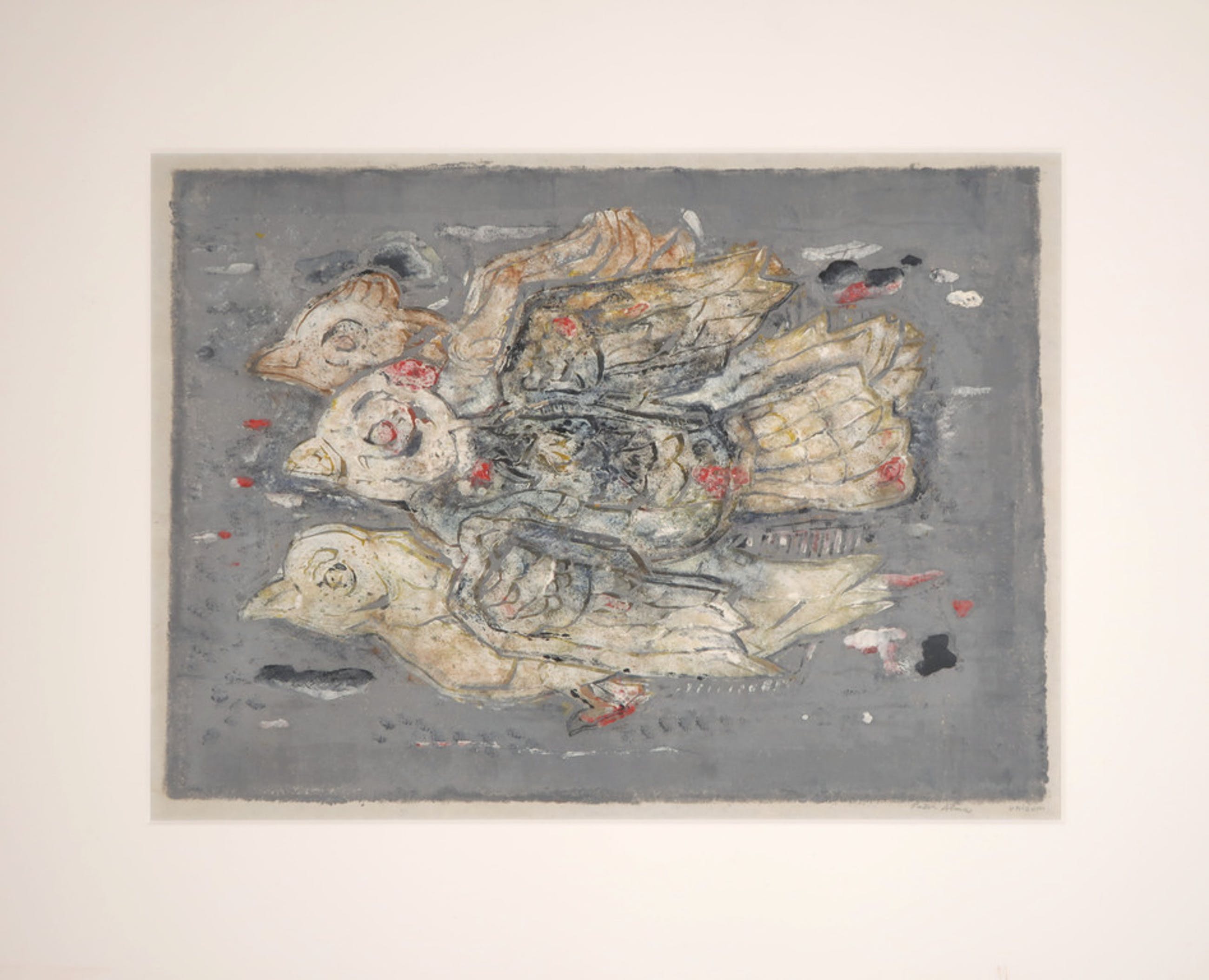 Materiaal: Gemengde techniek op Rijstpapier, achter passe-partout