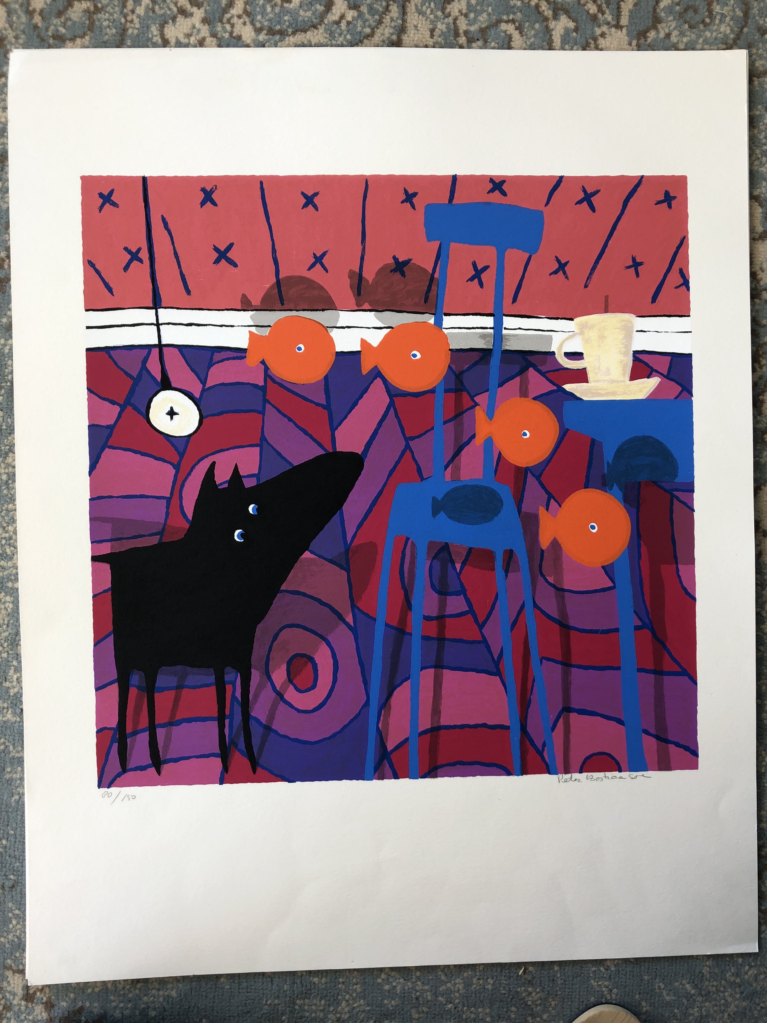 Leuke zeefdruk met de hond in de hoofdrol ( Art is a dog) van Bastiaanssen.