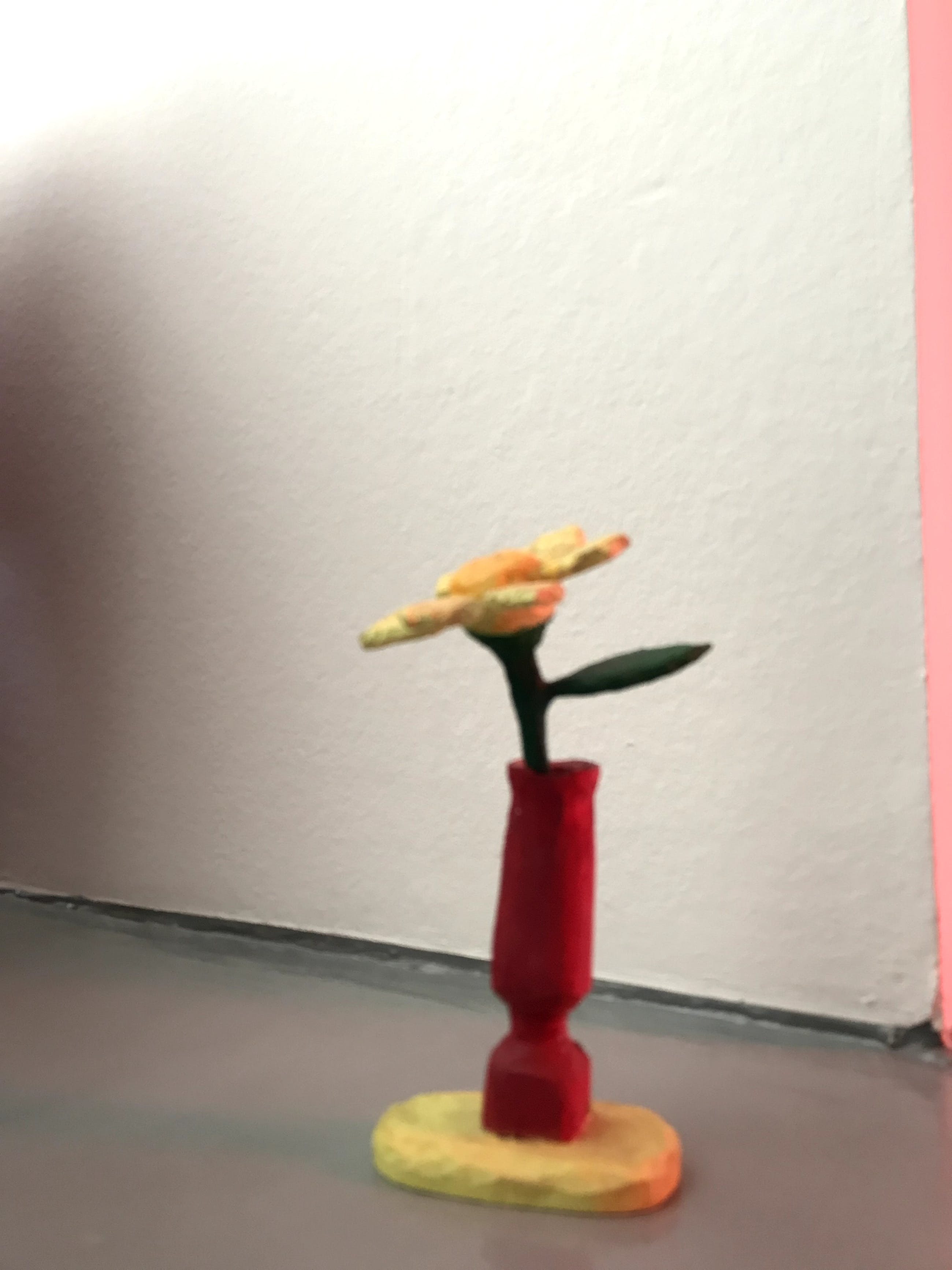Een bescheiden bloemetje van hout in een houten vaasje. Gemaakt door de kunstenaar Peter Bastiaanssen. Indien geïnteresseerd kunt u meer, grotere werken van hem vinden in mijn andere veilingen.