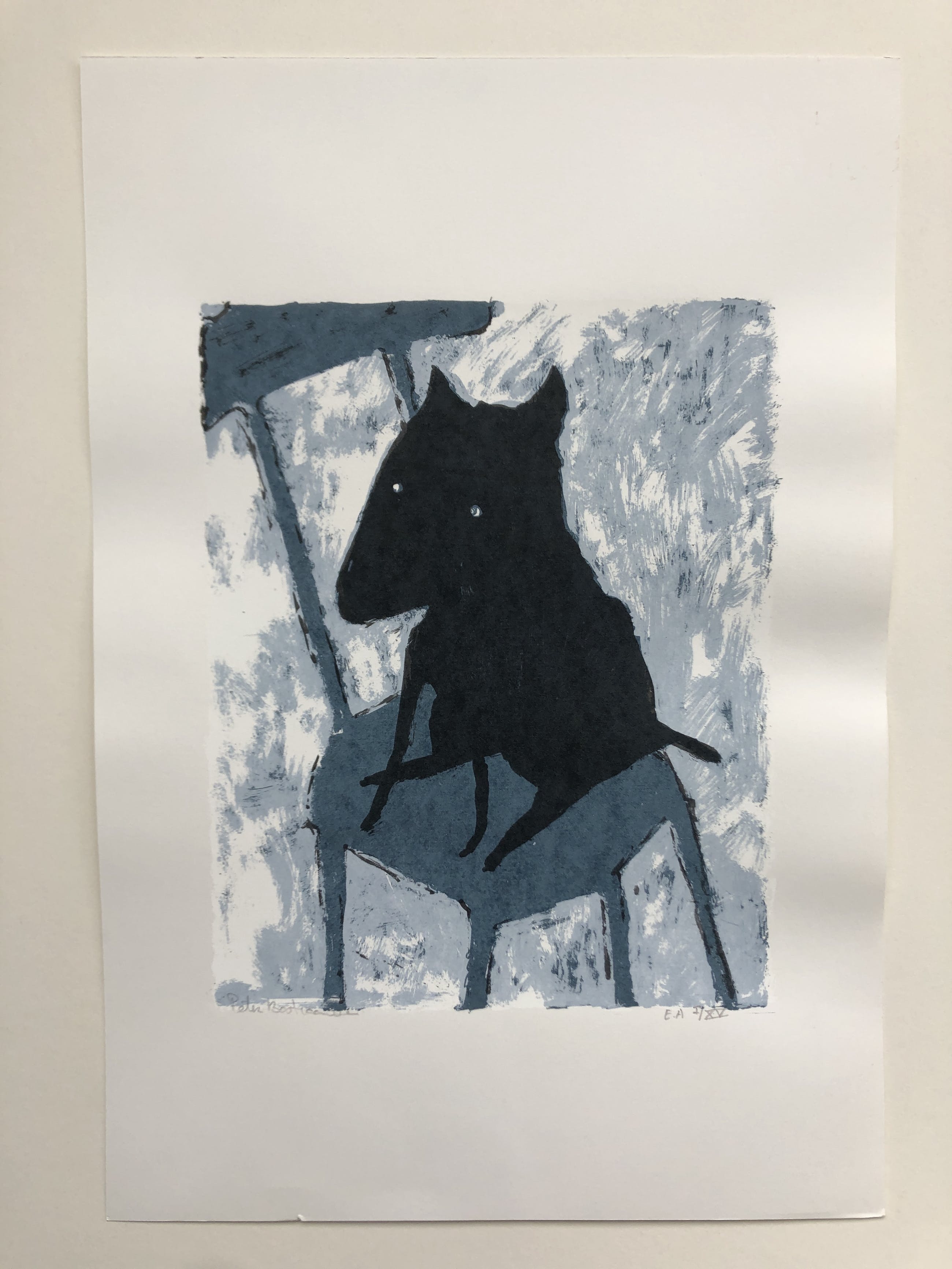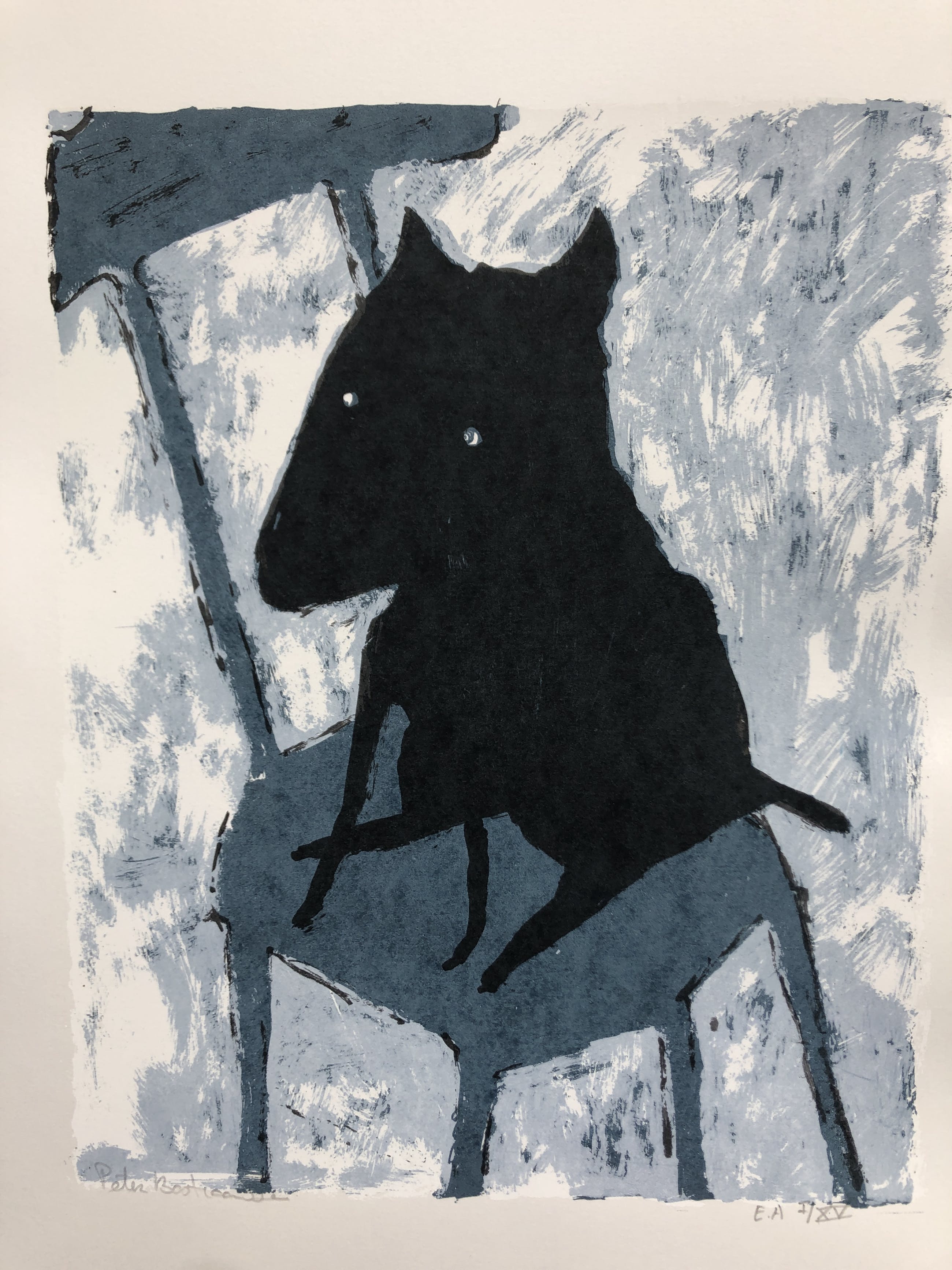 Grappig werk van de Rotterdamse kunstenaar Bastiaanssen. Met zijn handelsmerk de hond ( Art is a dog) weet hij altijd weer humor in zijn werk te betrekken. In deze serie duikt het hondje op in de woonkamer. U kunt het werk vooraf komen beoordelen in onze schatkamer in Gorcum.