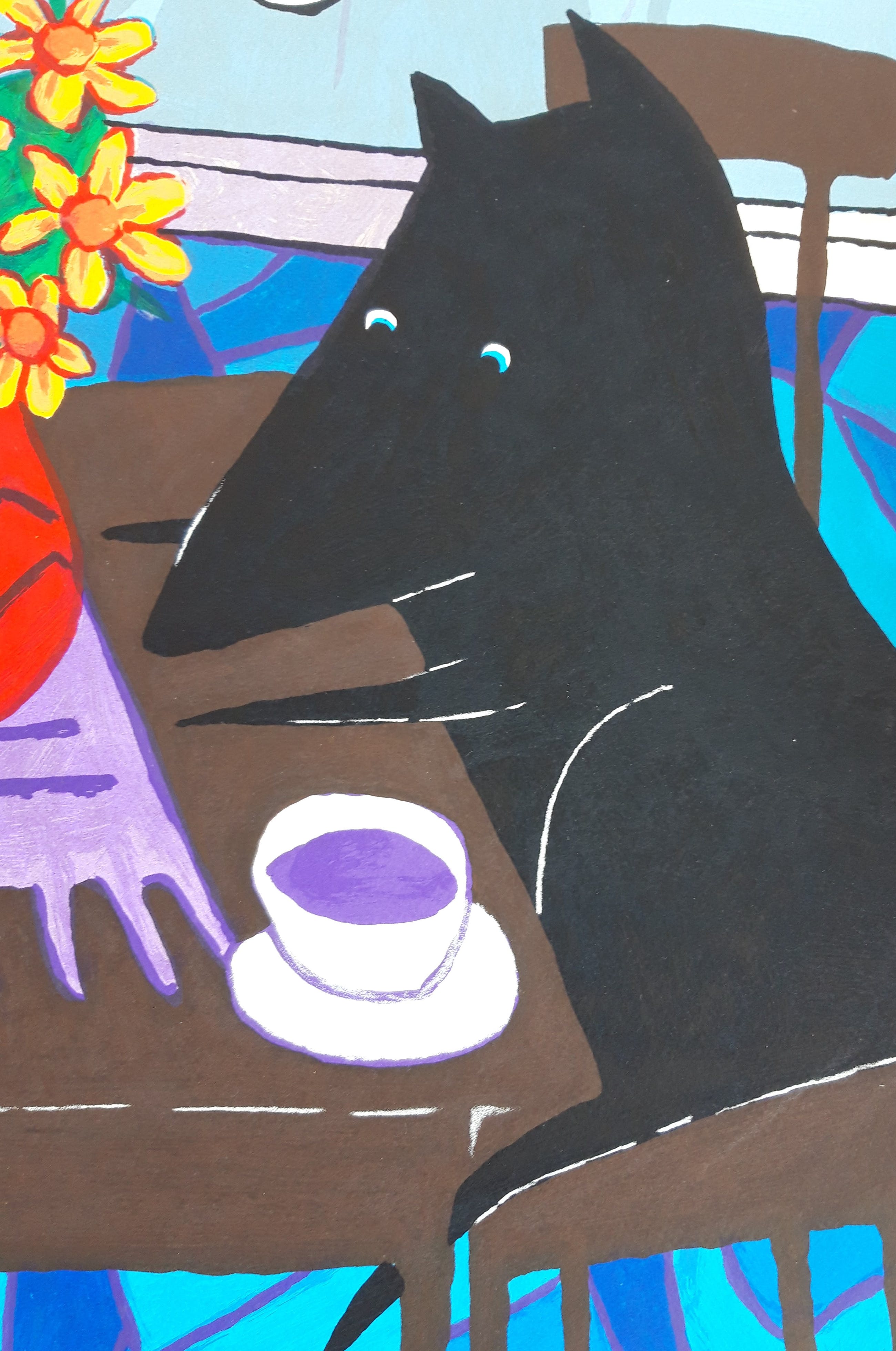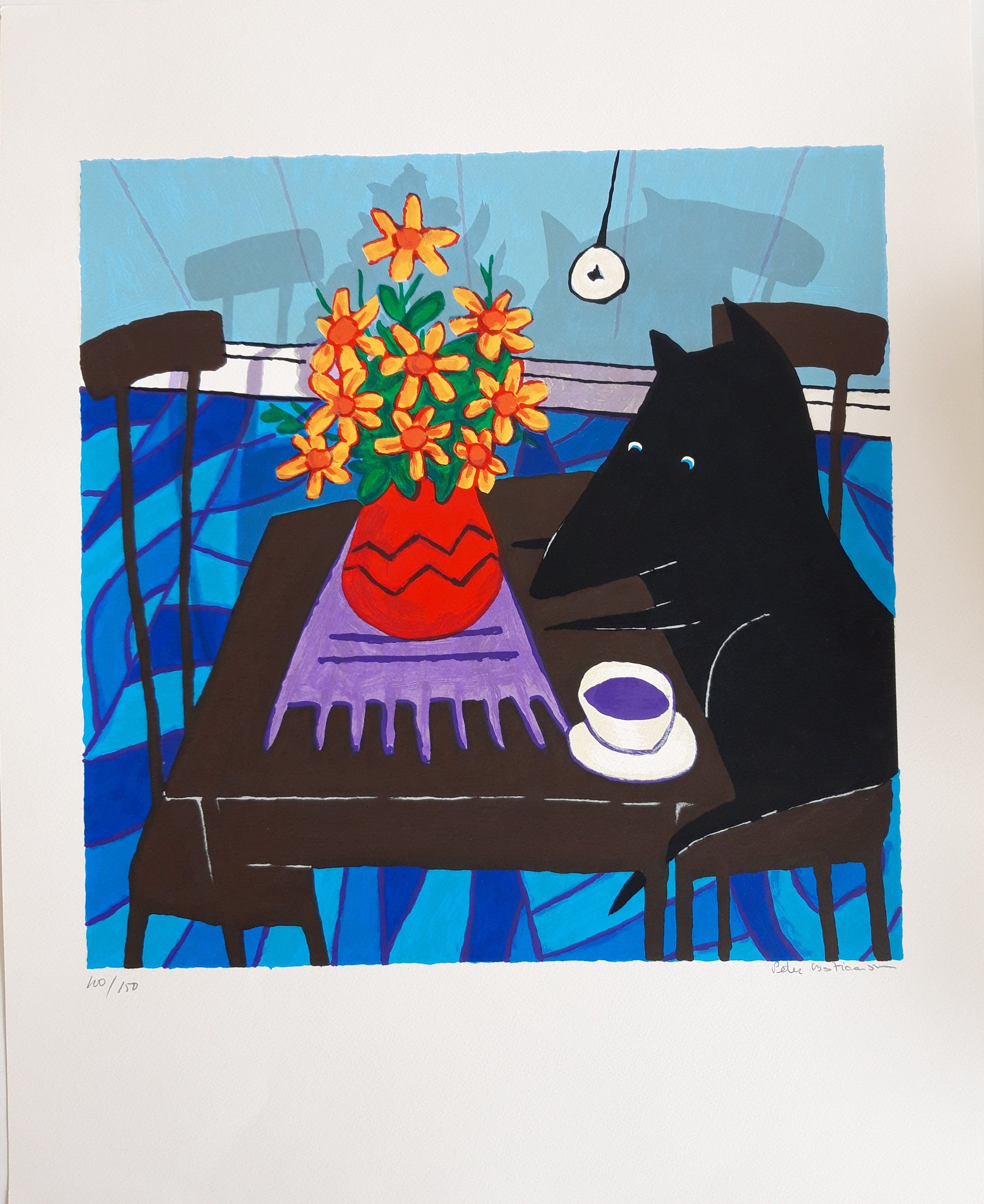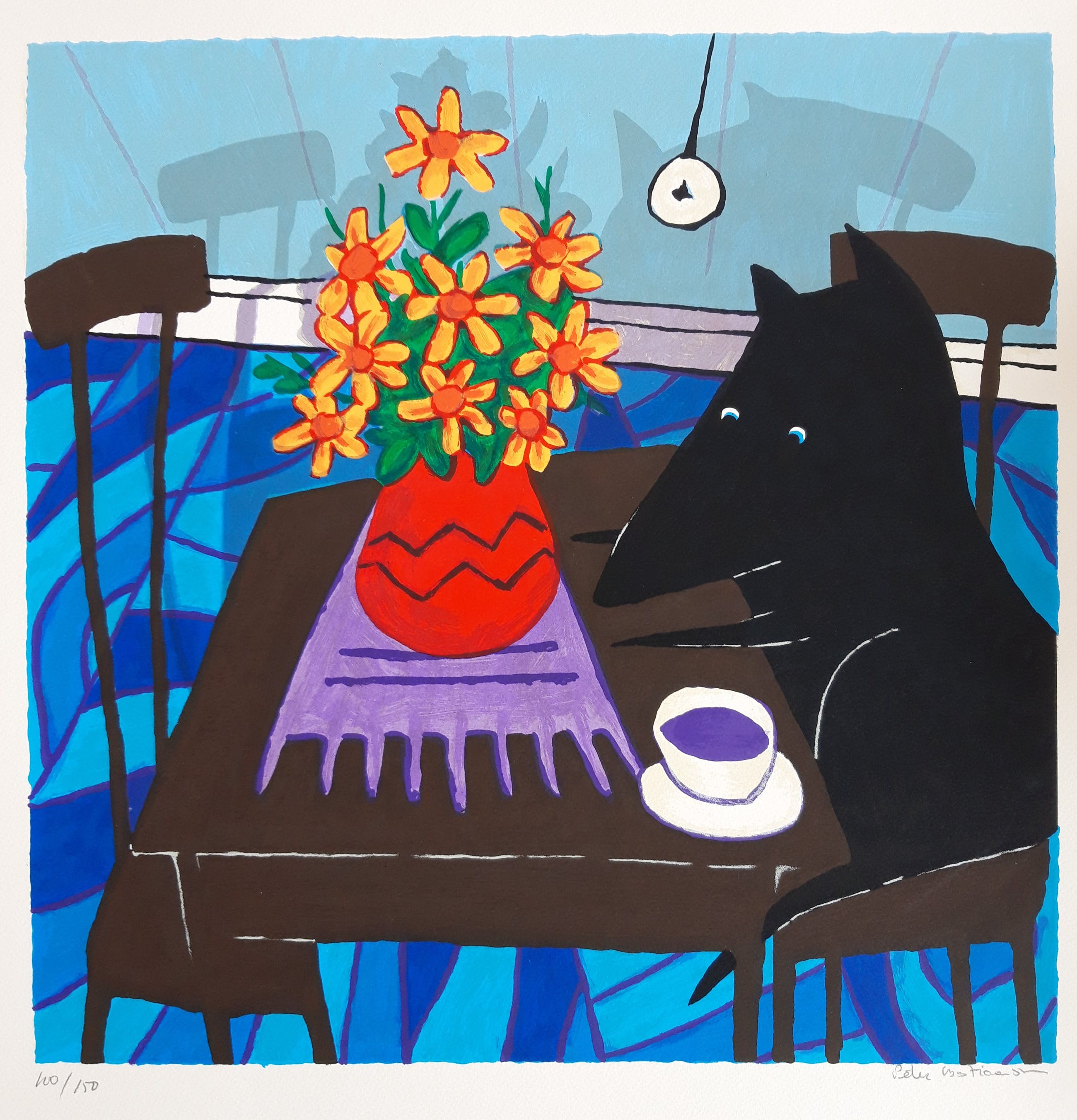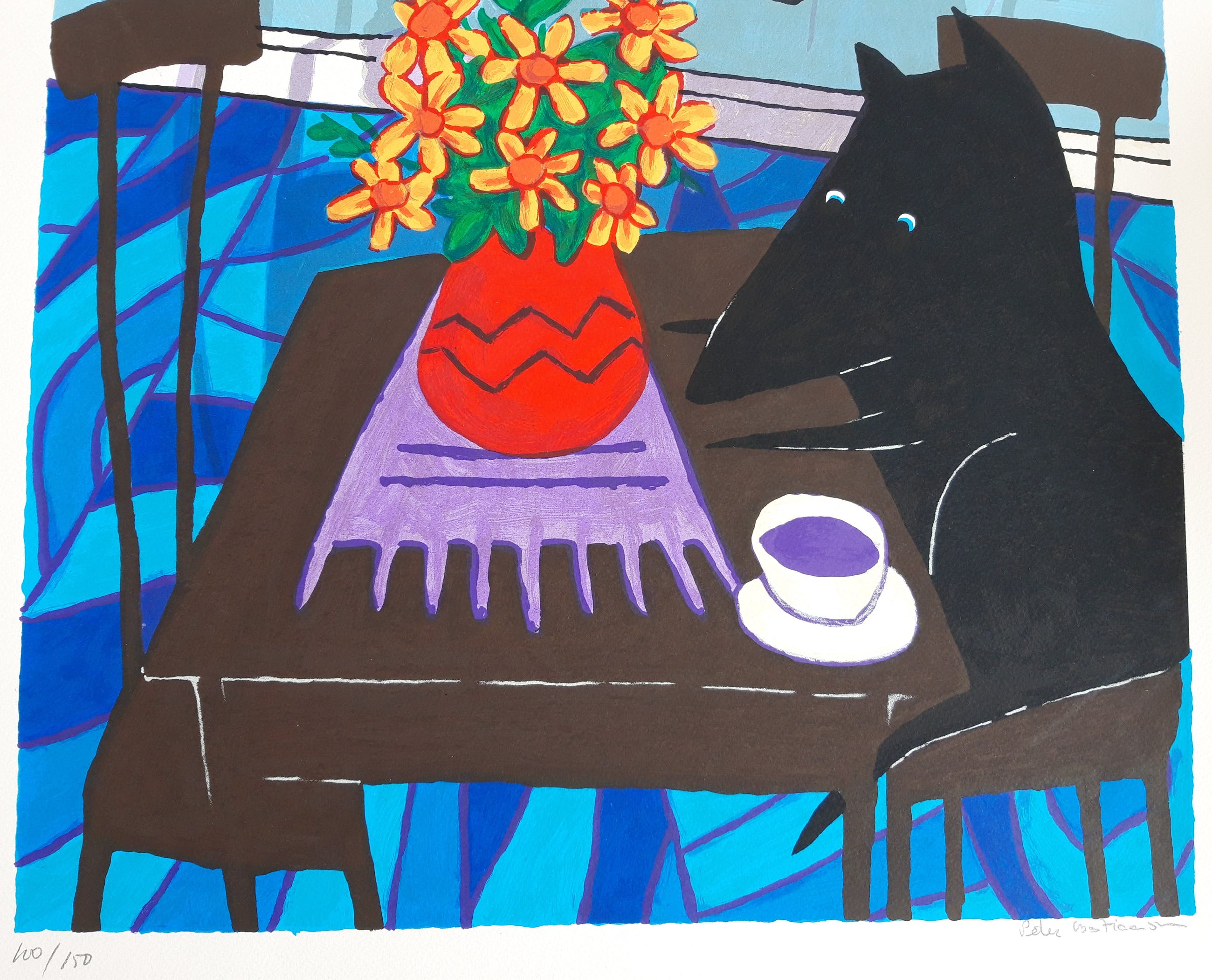 Kenmerkend voor de werken van Peter Bastiaanssen zijn de vrolijke kleuren en de aanwezigheid van de hond met kraaloogjes. Bastiaanssen zet een vraagteken bij kunst waar je eindeloos over moet nadenken zonder dat er beeldende kwaliteit valt te ontdekken. In zijn kleurige schilderijen figureren decoratieve wandversieringen, een kleed, een vaas bloemen, een vis in een kom, een of meerdere kopjes koffie en de zwarte hond. Een van zijn projecten is ‘Art is a dog’. De zwarte hond verschijnt in zijn schilderijen, houten beelden en zeefdrukken, vaak in een kleurrijke omgeving.