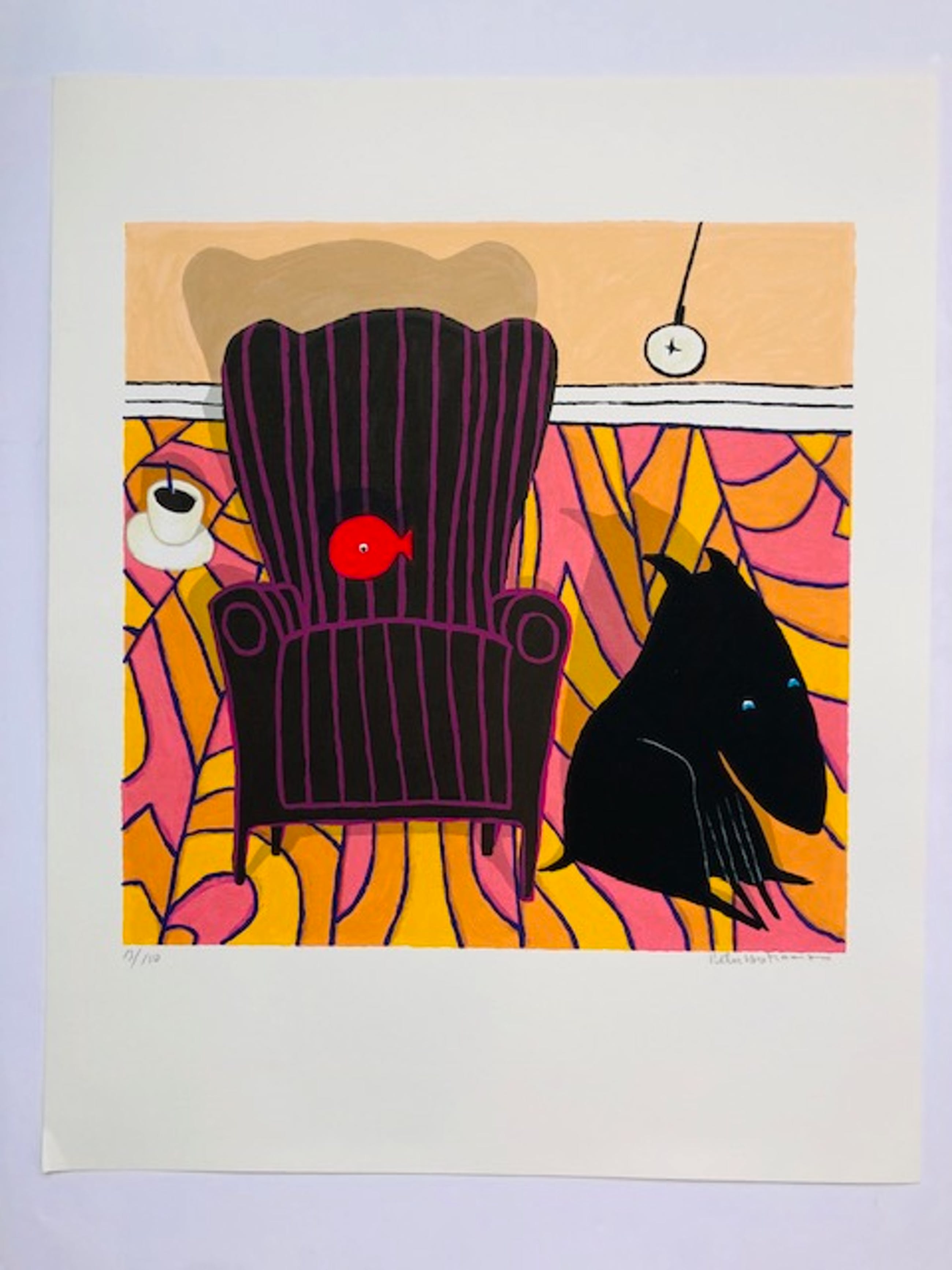 Fraaie zeefdruk van de Rotterdamse kunstenaar Bastiaanssen. Met zijn handelsmerk de hond ( Art is a dog) weet hij altijd weer humor in zijn werk te betrekken.