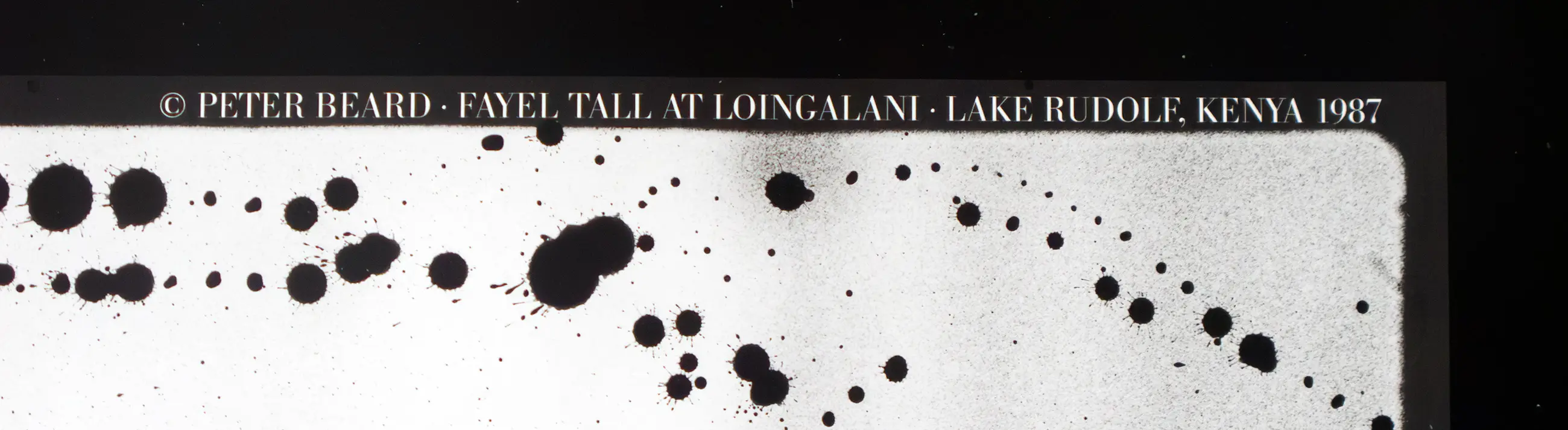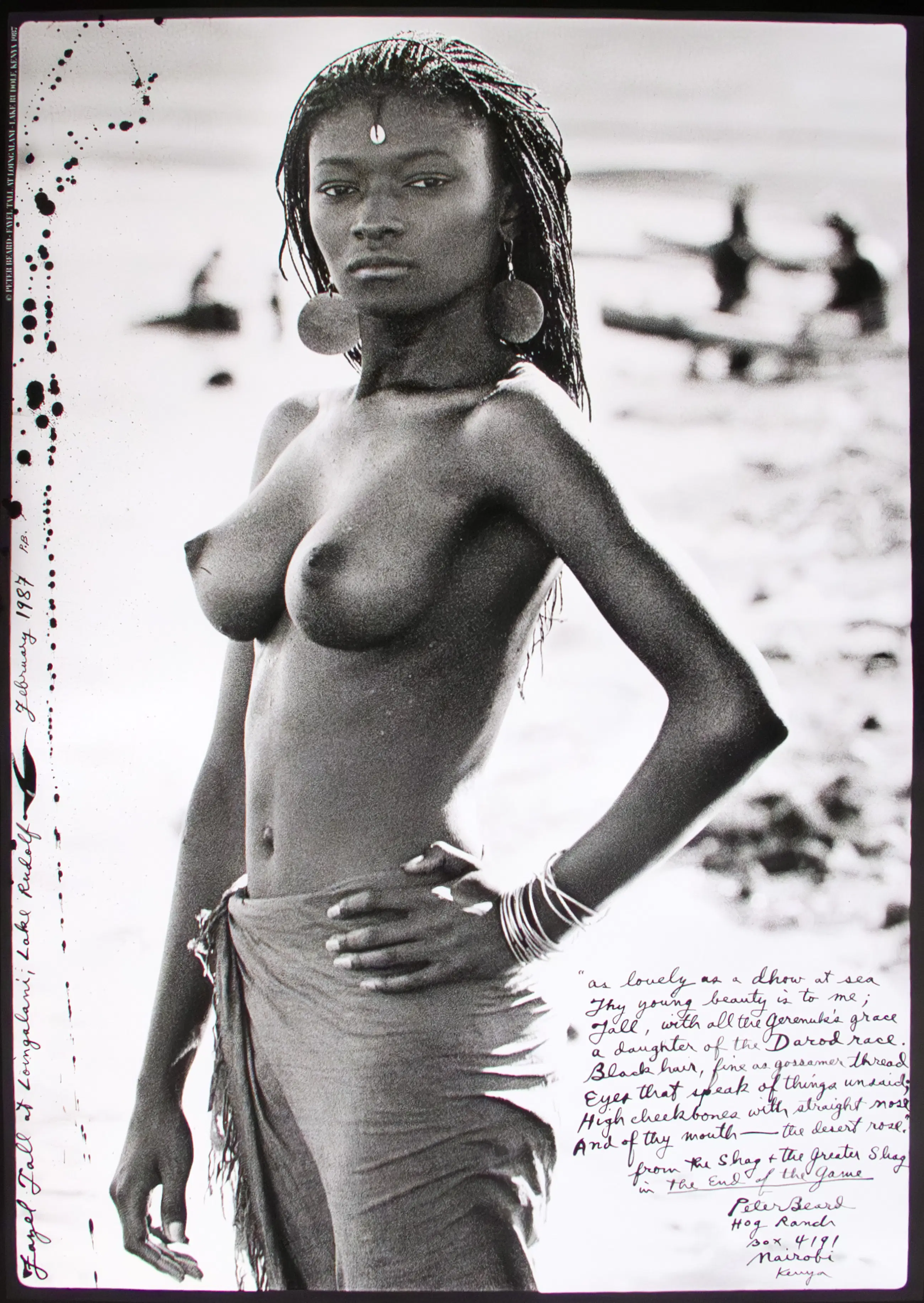 Peter Beard was een Amerikaanse fotograaf, vooral bekend om zijn documentaire foto's van Afrika. Zijn unieke fotocollages combineerden schilderkunst, tekenkunst en tekst. De foto toont Fayel Tall, een prachtig jong model uit Mali dat internationaal succes boekte. CAMERA WORK is een gerenommeerde fotogalerie in Berlijn, opgericht in 1997. Het wordt beschouwd als een van Europa's toonaangevende galerieën voor klassieke en hedendaagse fotografie.