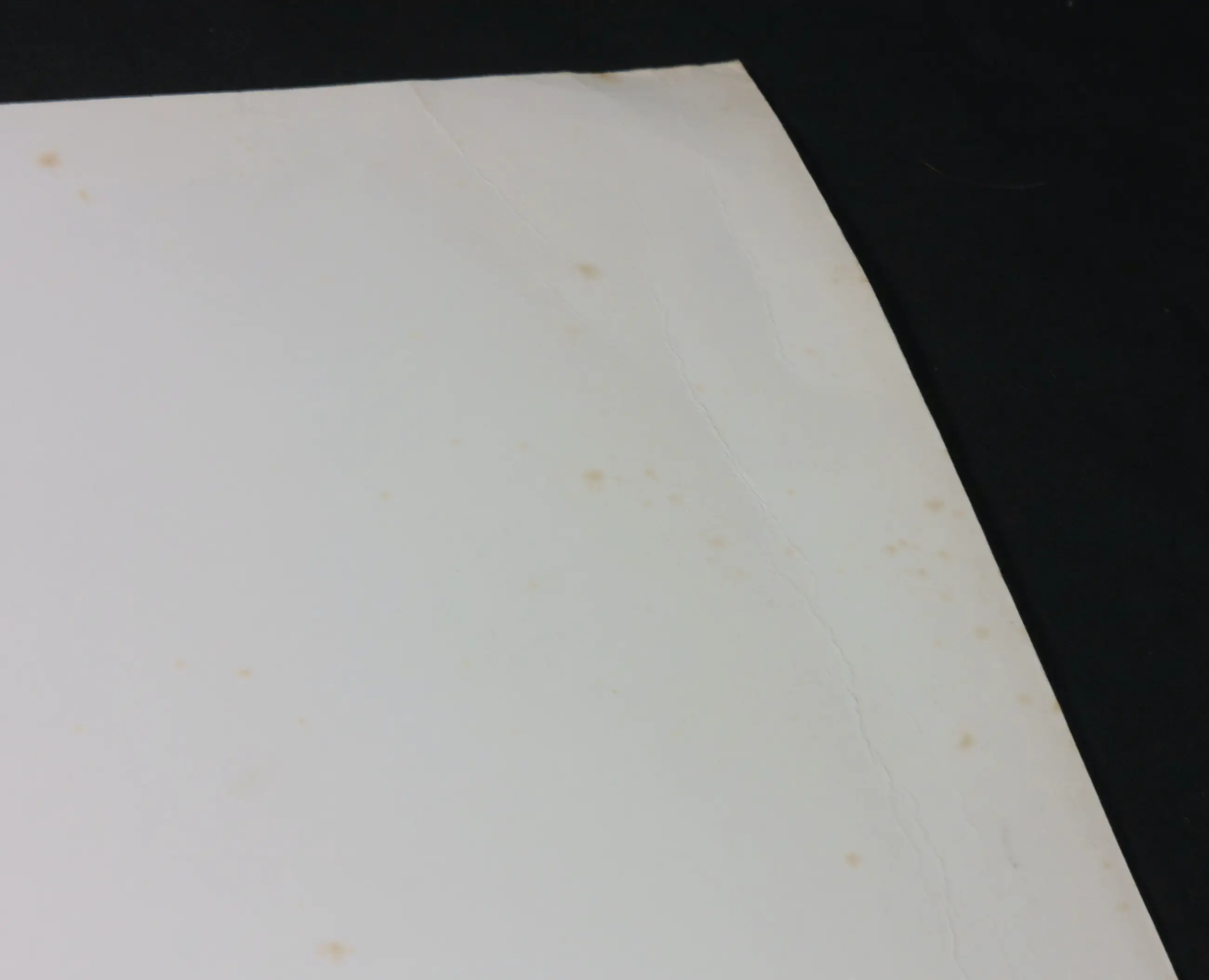| Omgevouwen hoekjes en wat foxing zichtbaar op het papier. (Zie detailfoto's) | |