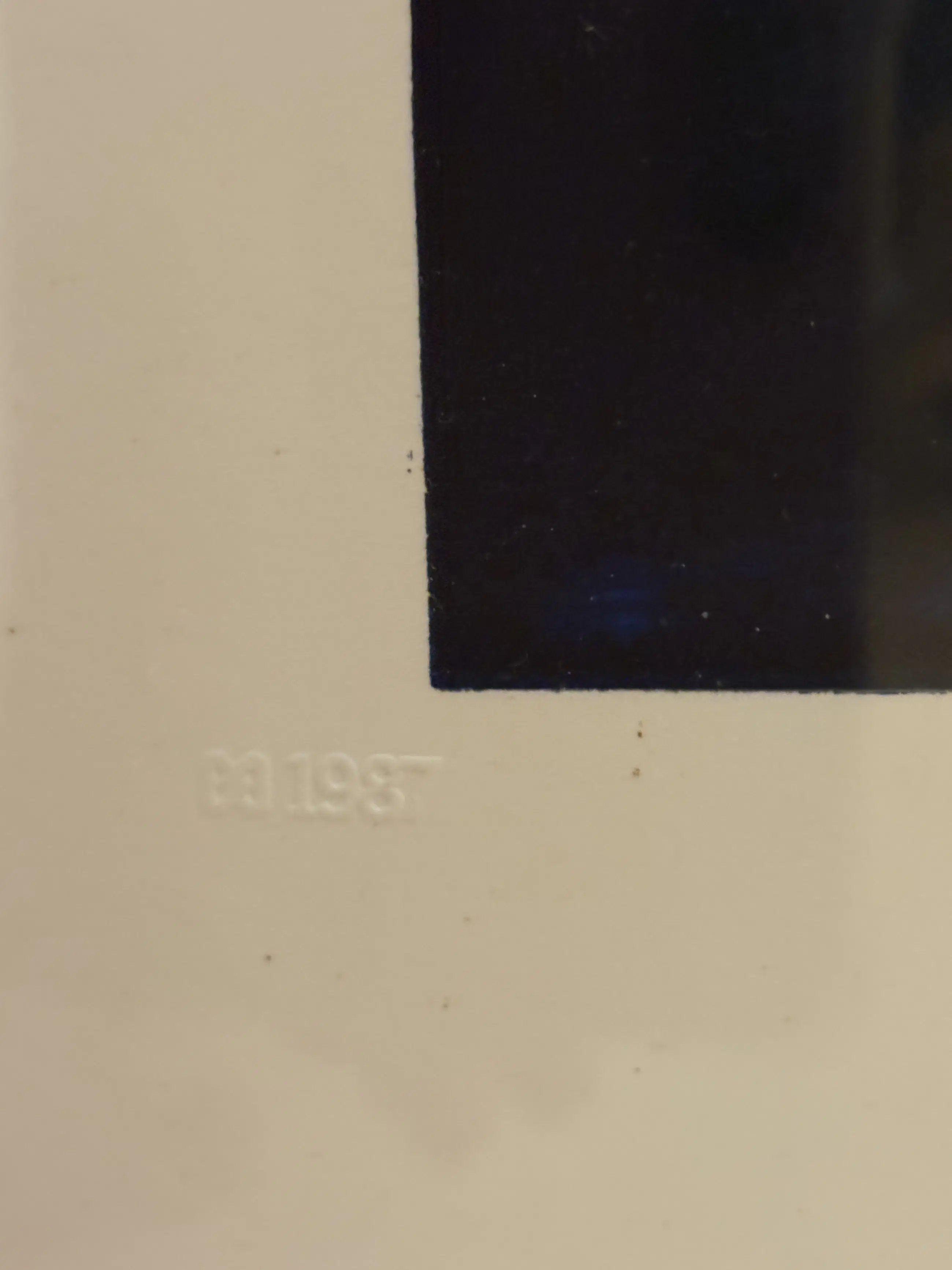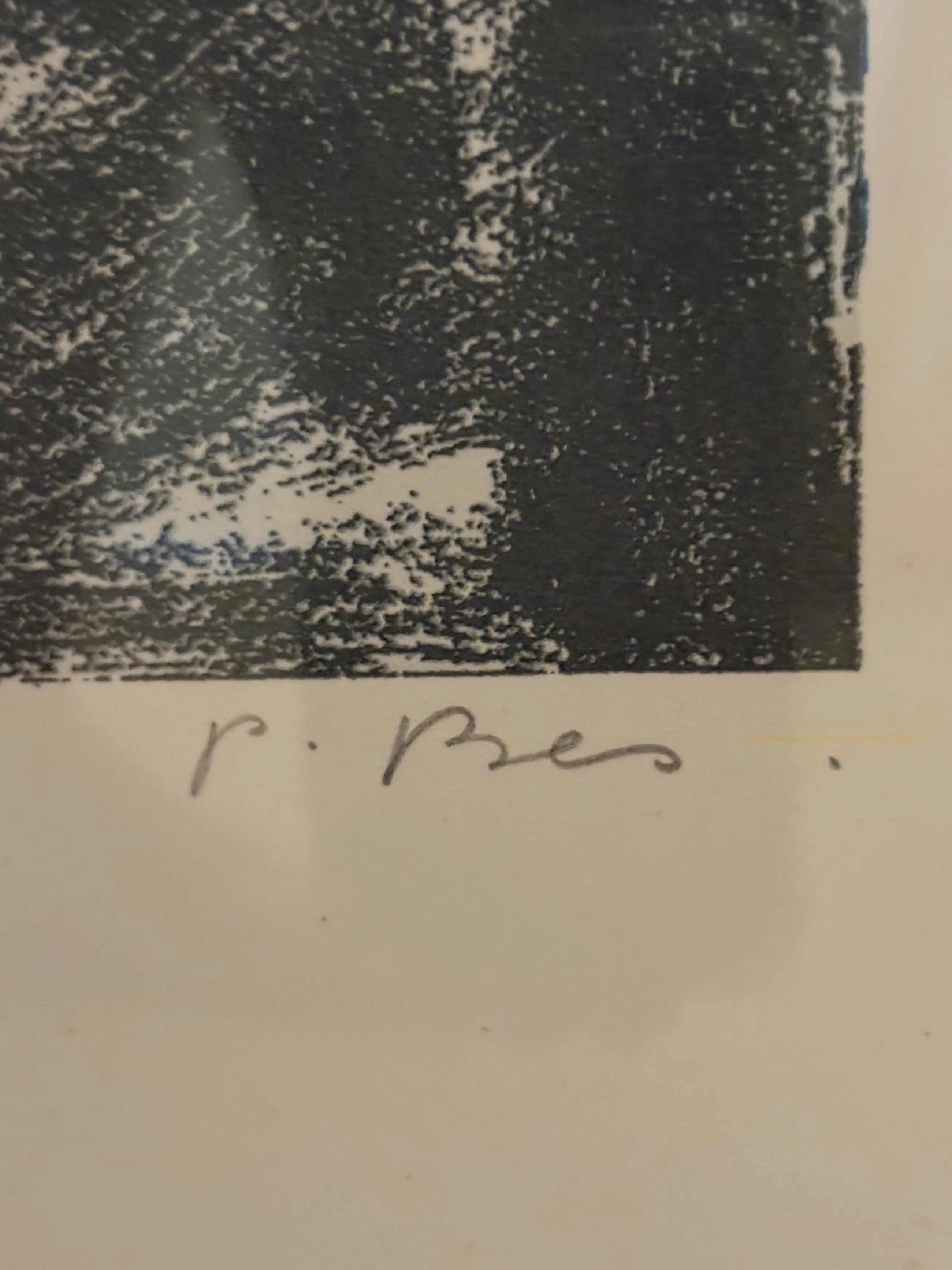 In minimale oplage verschenen zeefdruk van Peter Bes in 1987. Met als thema "Het dagelijks leven" werden honderd prenten van 25 Nederlandse kunstenaars in opdracht van Ahold nv uitgebracht n.a.v. het 100-jarig bestaan van Albert Heijn op 27 mei 1987. Formaat zeefdruk: 33 x 43 cm, incl. lijst 51,2 x 66,2 cm. Potlood gesigneerd r.o. Tevens preegdruk Ahold 1987 l.o. Lijst is van aluminium.