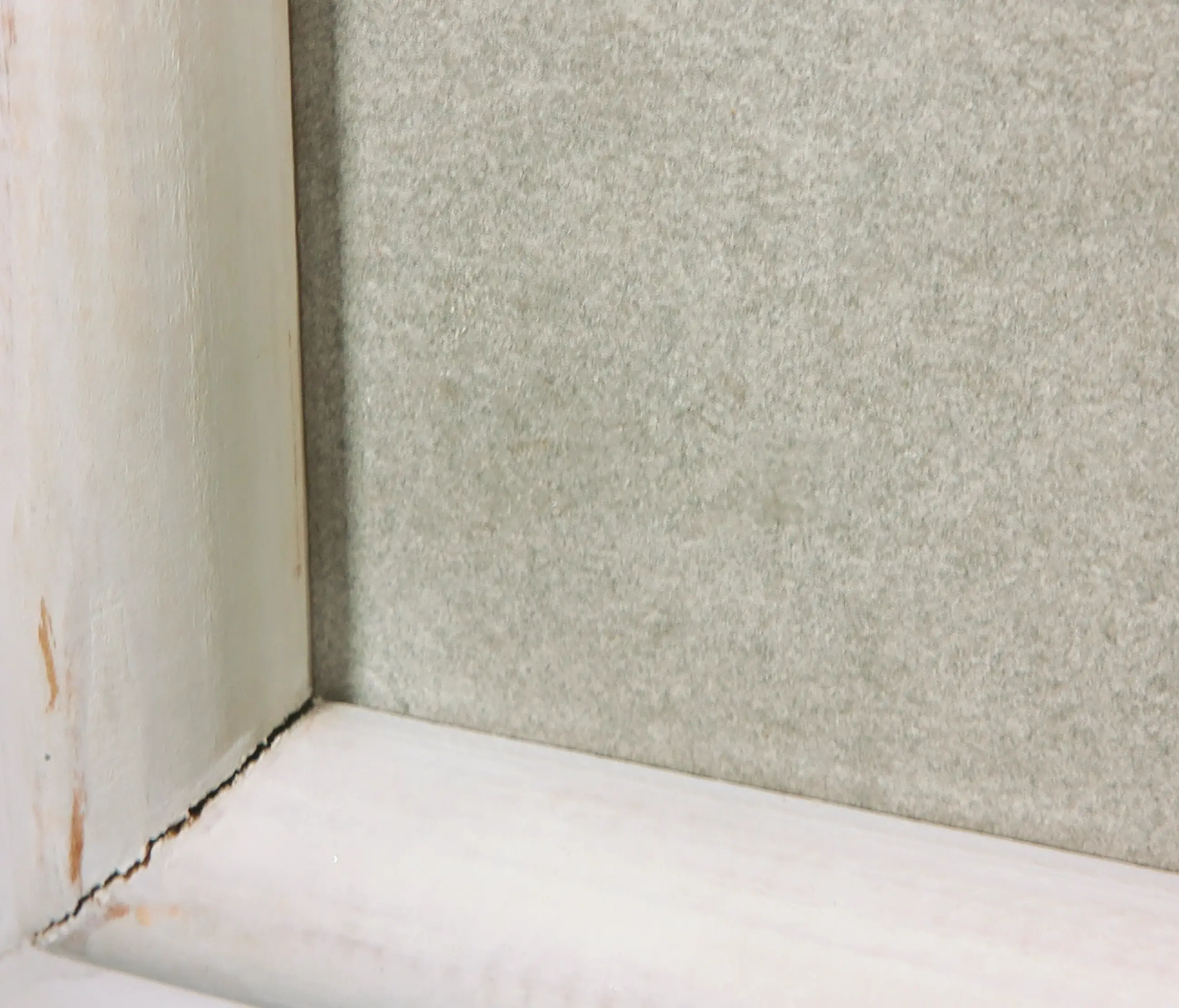 Enkele lijmresten op de glasplaat in de linker benedenhoek.