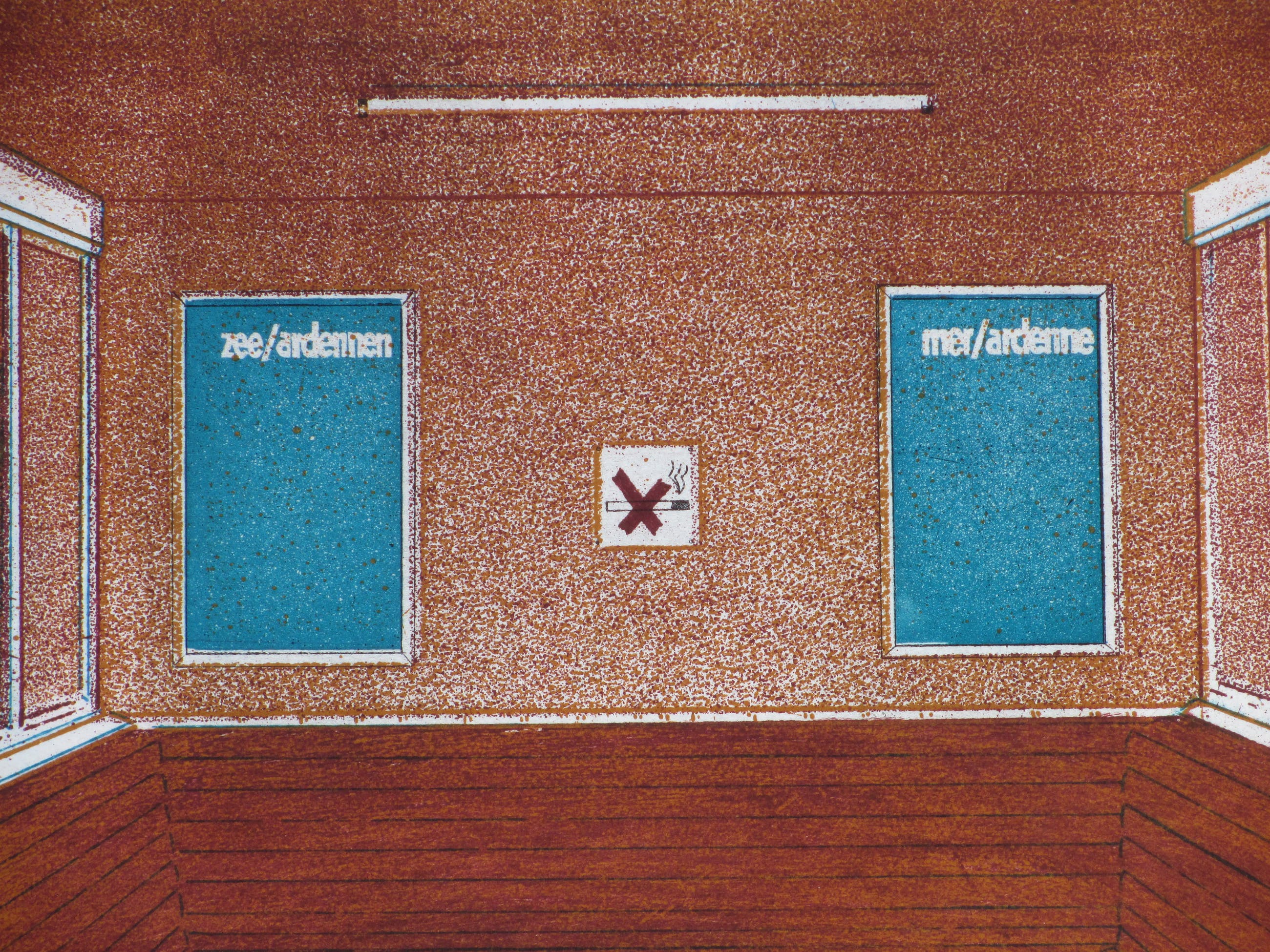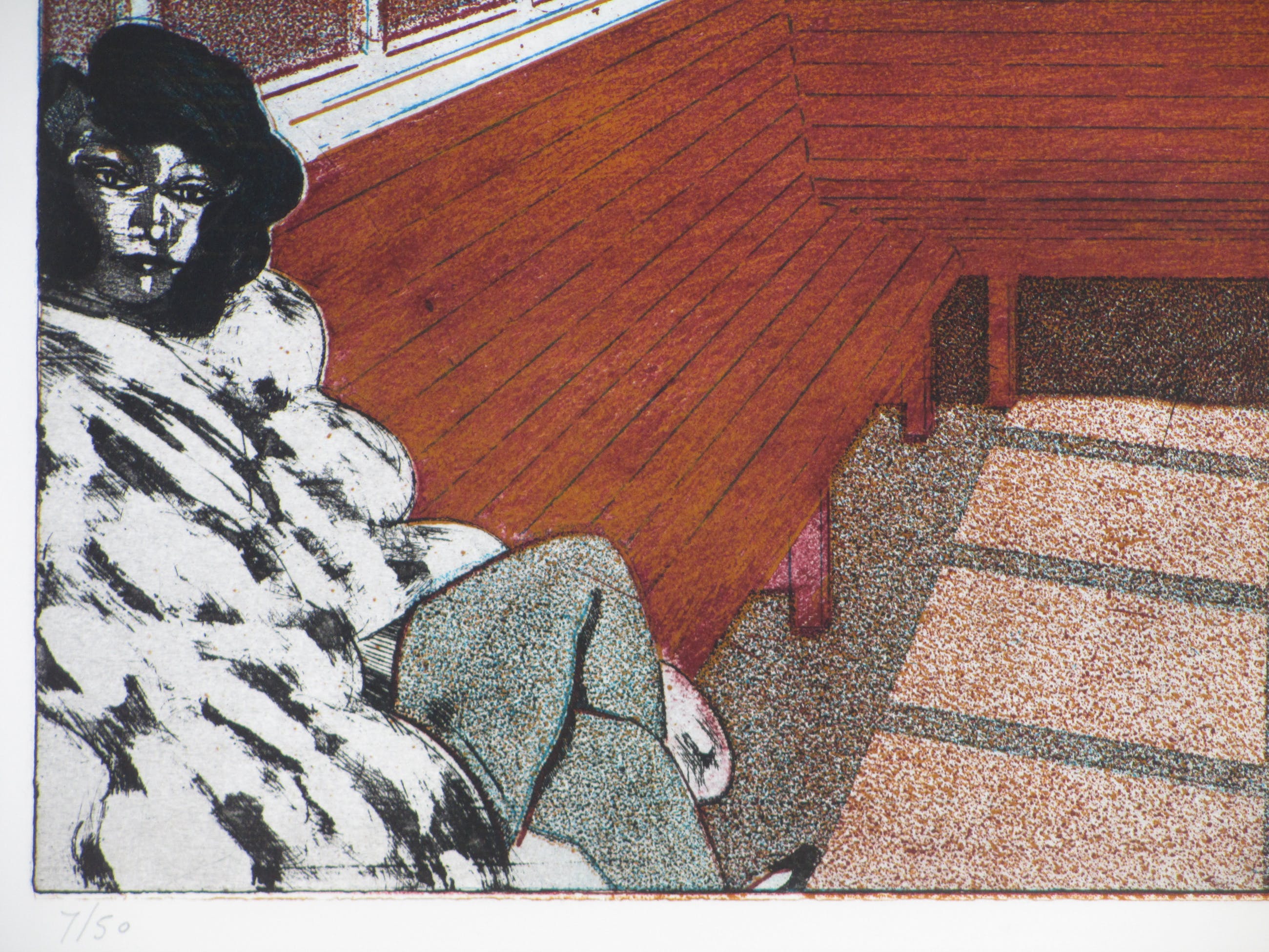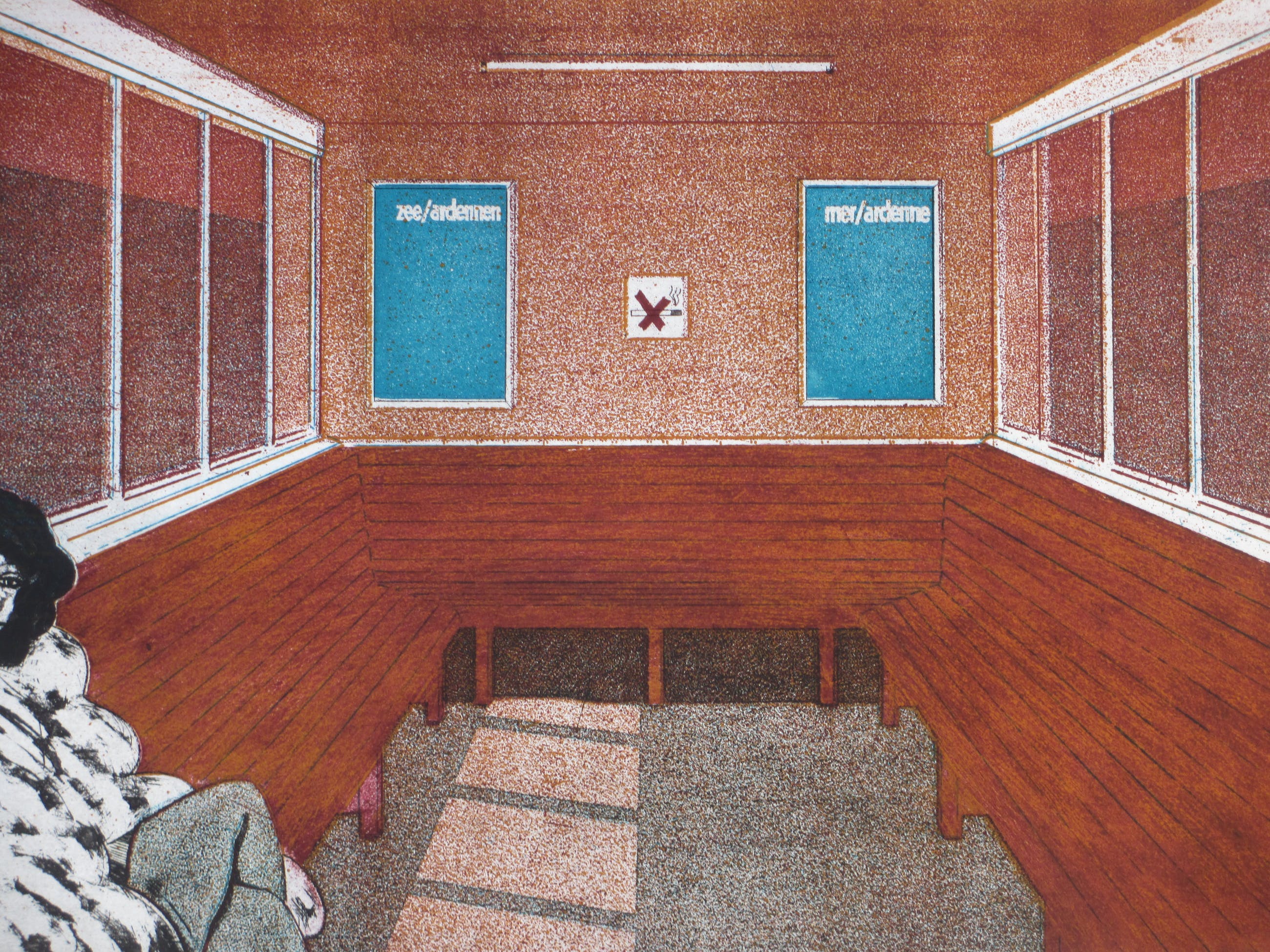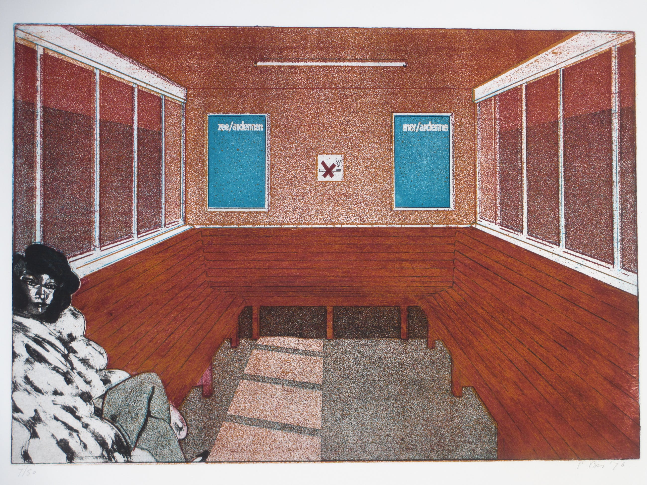 Fraaie kleurets door Peter BesVoorstelling van een wachtruimte met dameLosbladig, beeldmaat 42x61, bladmaat 62x83Gesigneerd en gedateerd r.o. 'P.Bes '76'Genummerd in potlood l.o. '7/50'Authenticiteit volledig gegarandeerd