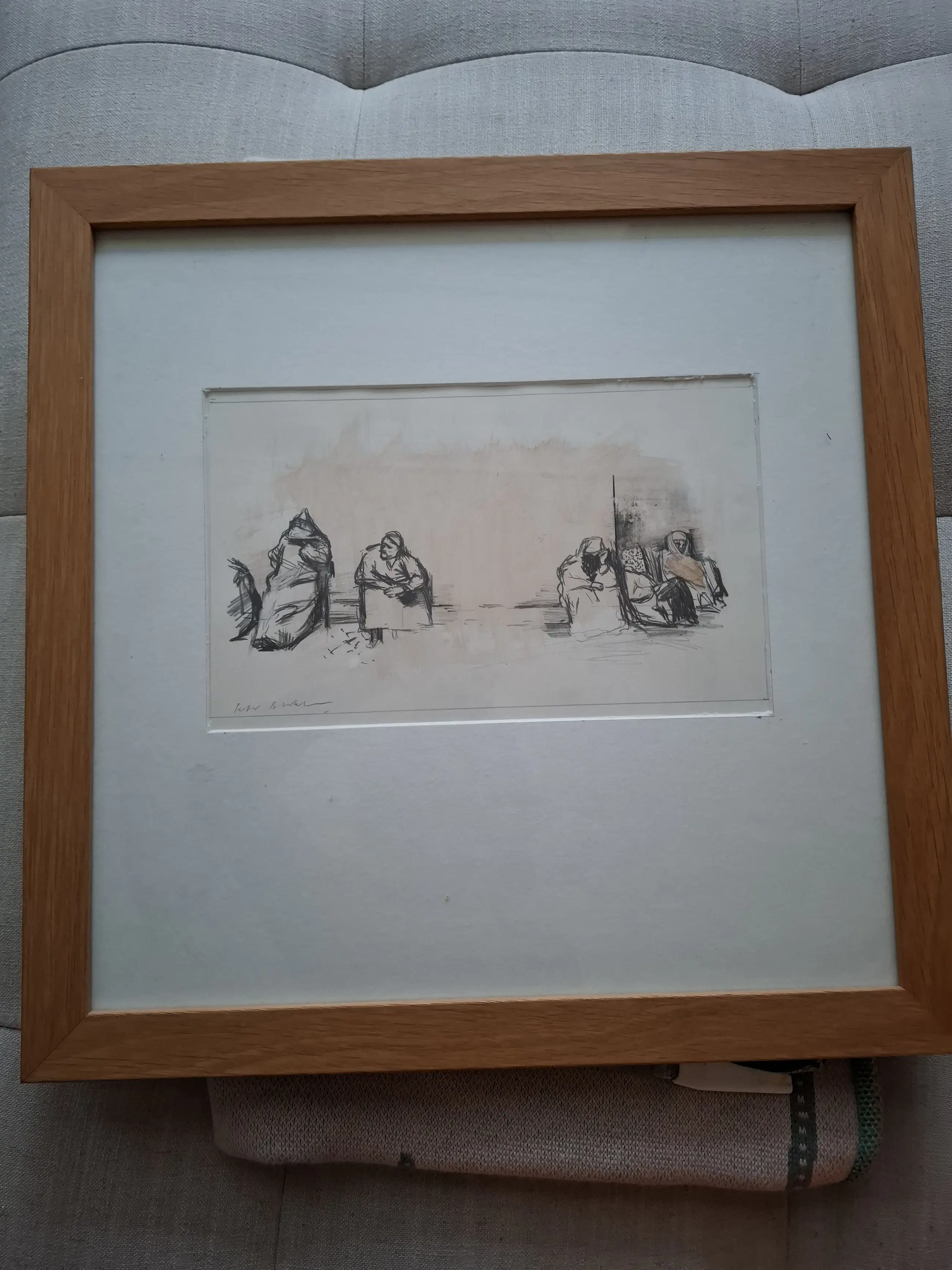 Origineel werk van kunstenaar Peter Blokhuis. Combinatie tekening/aquarel.