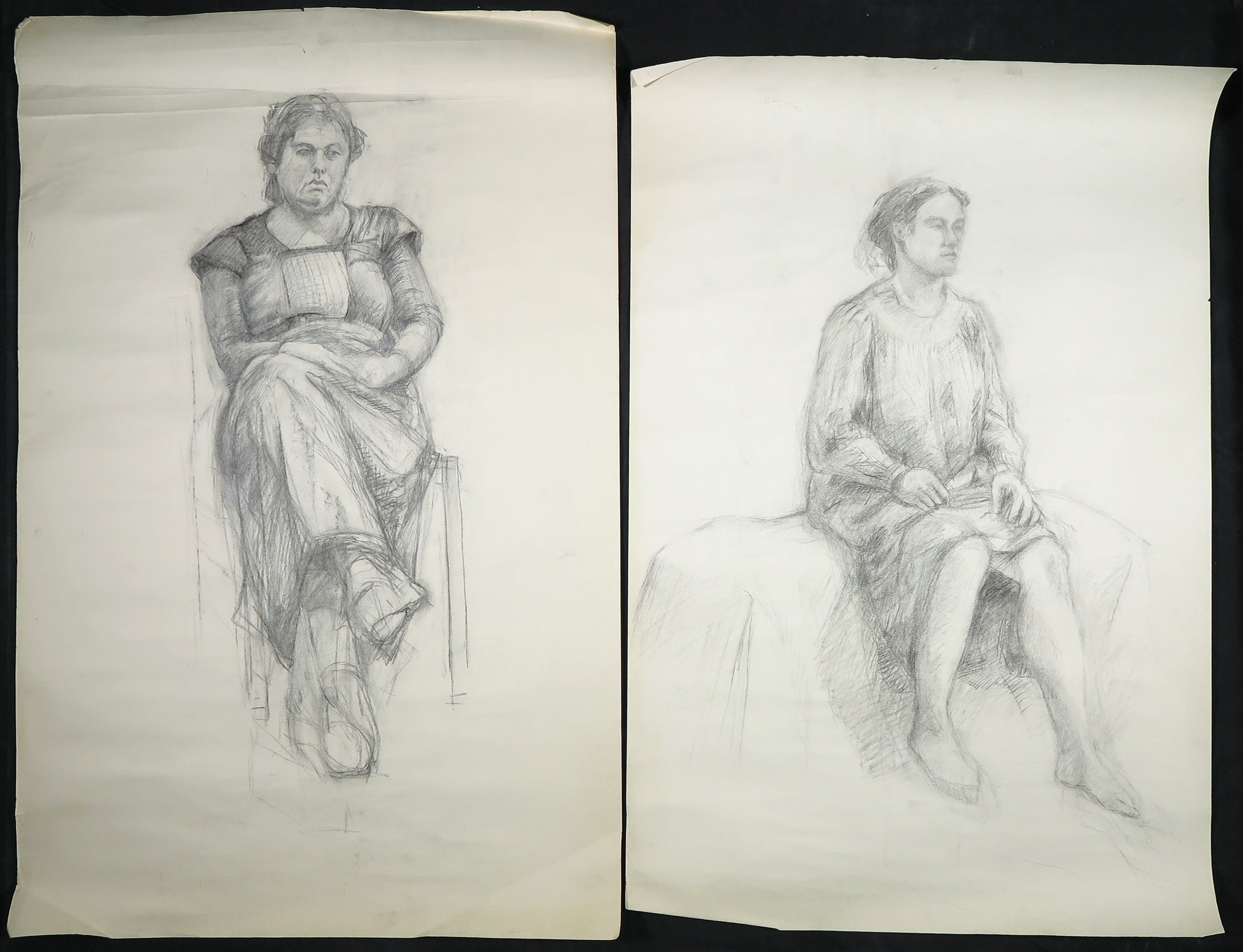Lot van acht studies. De afmetingen 99.5 x 65 cm zijn de maten van de tekening in inkt . Dit is tevens de gemiddelde afmeting; een enkel blad is iets langer, korter, smaller of breder.