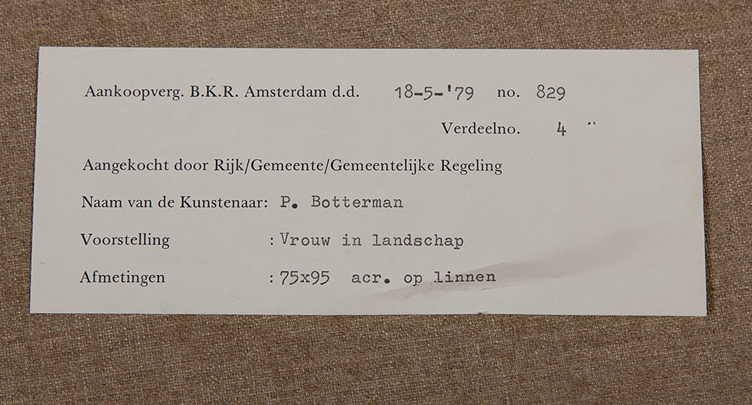 Herkomst: BKR Amsterdam (Het kunstwerk is afgevoerd uit de rijkscollectie in 2018)