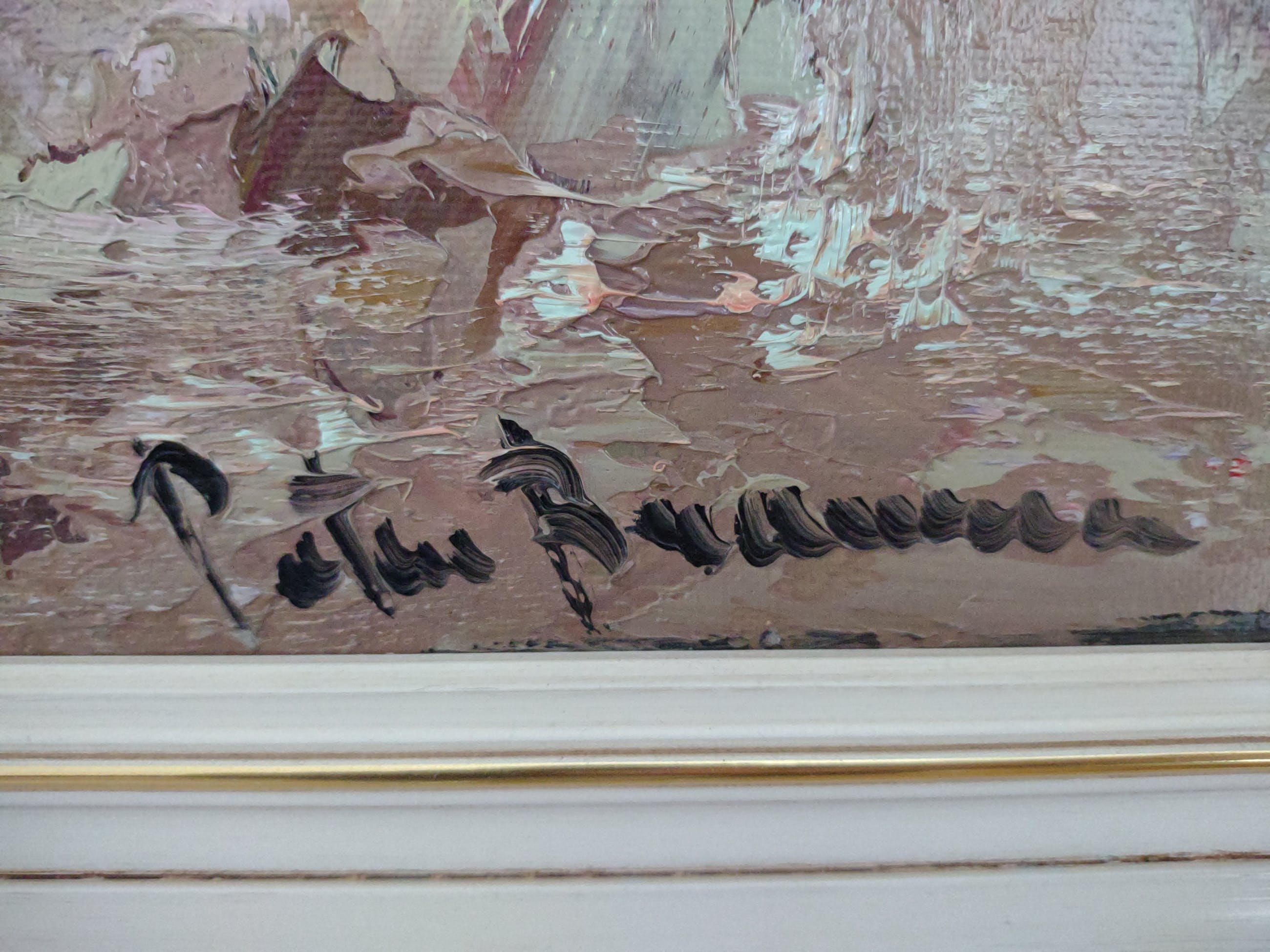 Bloemen in olieverf, gemaakt en gesigneerd door Peter Brouwer. Jaartal onbekend, afkomstig uit inboedel.