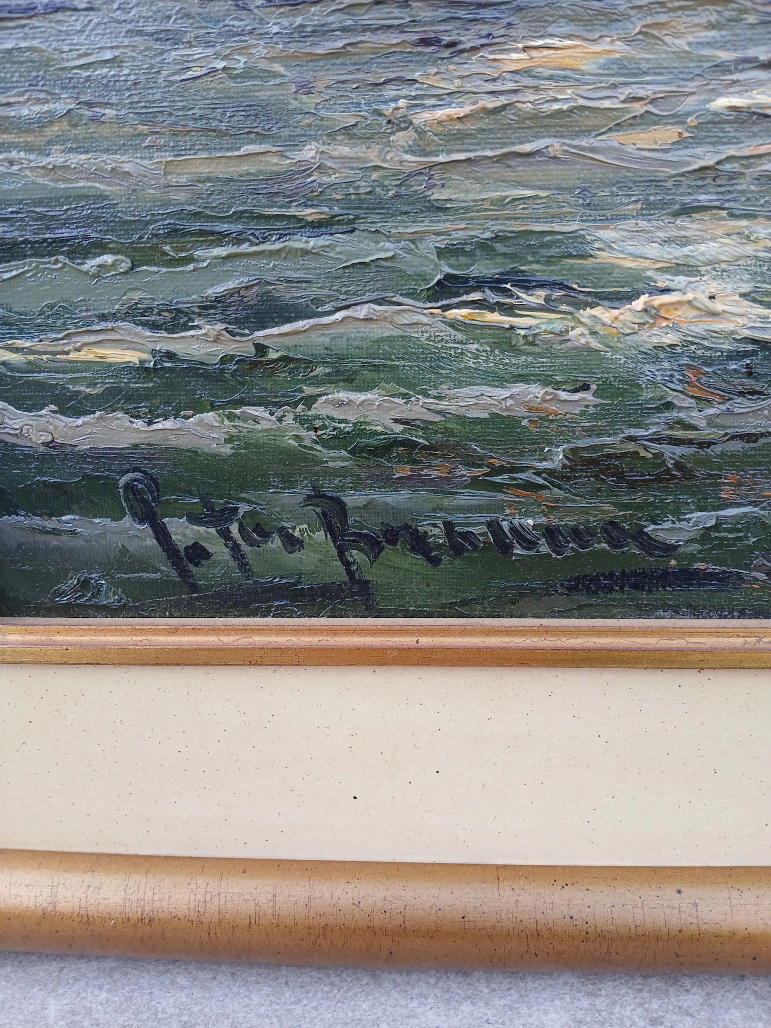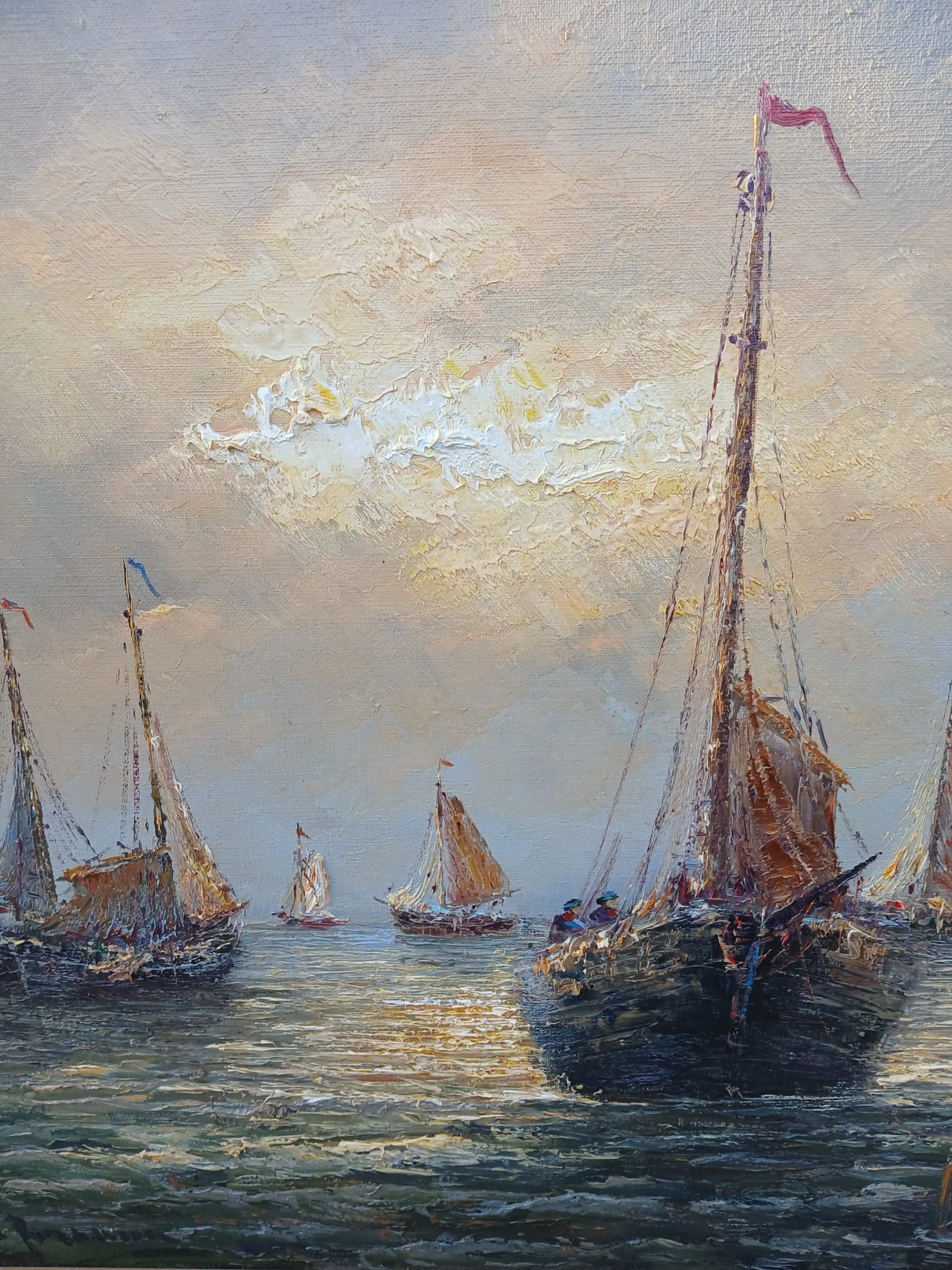 Heel mooi weergegeven hoe de zon door de wolken heen komt en schijnt op de zee. Luxe bijpassende omlijsting.