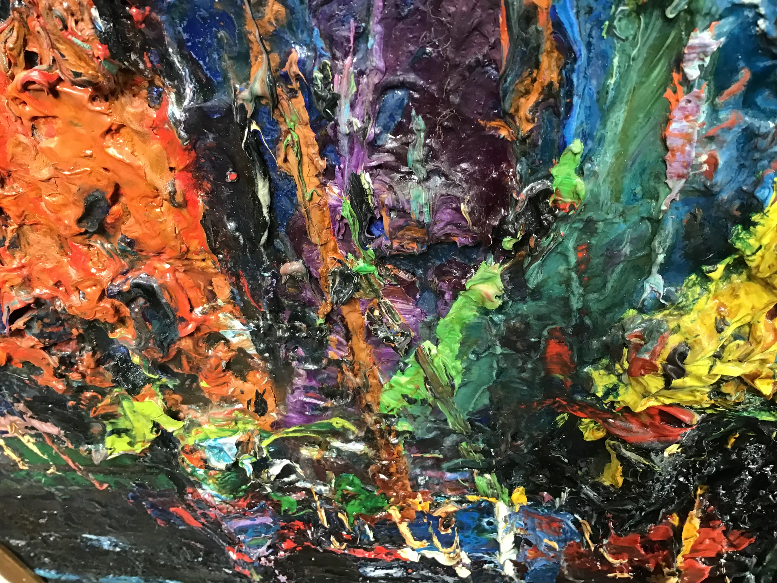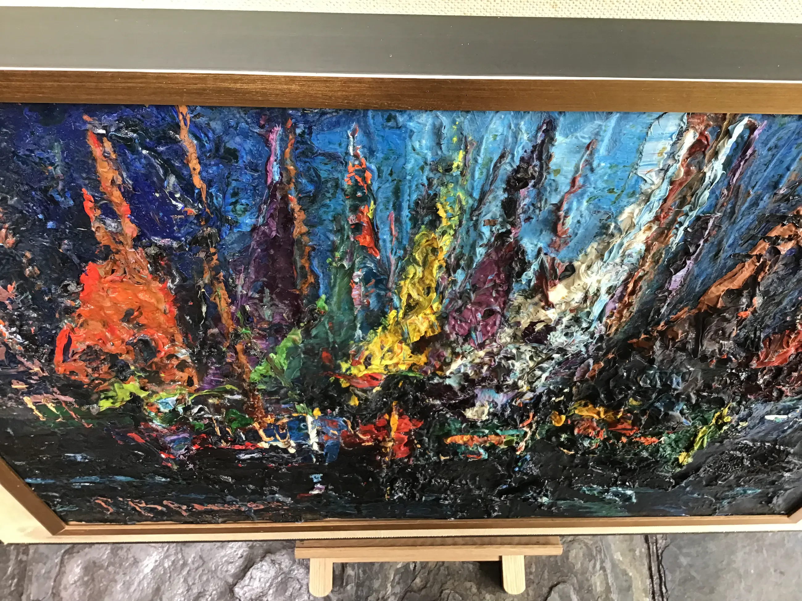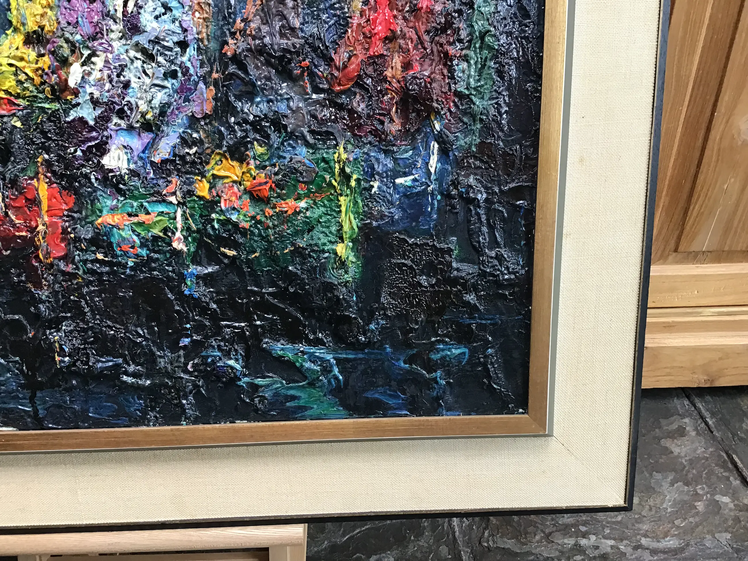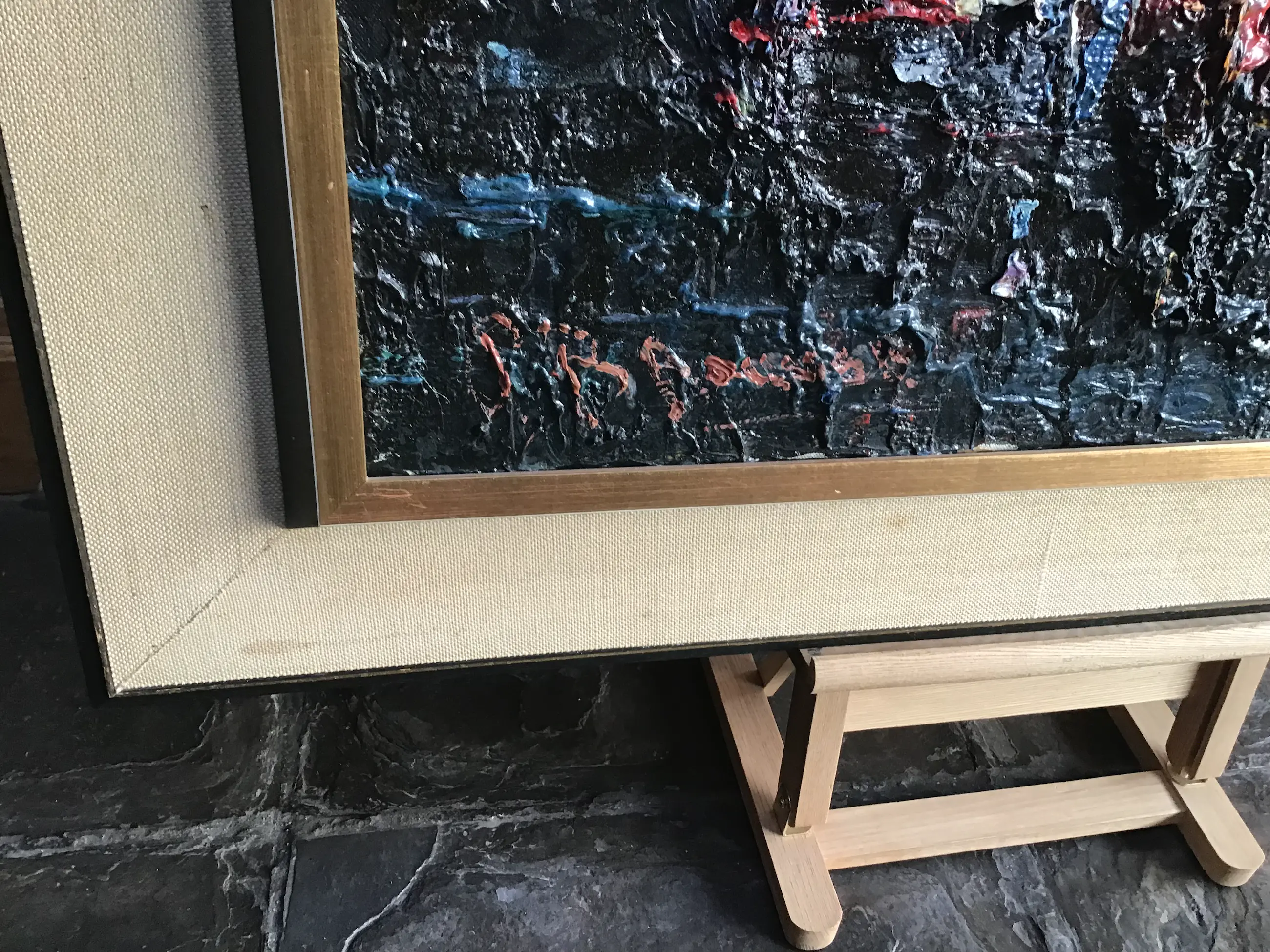 Expressief werk en zeer pasteus opgezet. Bijna gebeeldhouwd in verf. Brouwer heeft dit onderwerp vaker gebruikt maar dit werk is bijna abstract. Nog in de originele lijst waarin het door kunsthandel Rembrandt van het Rokin in Amsterdam ooit is verkocht. Werk in prima conditie. Het canvas op de lijst heeft enkele plekjes. Peter Brouwer(1935-2020) uit Utrecht was o.a. leerling van zijn oom P. Brouwer en Jan Bevort.