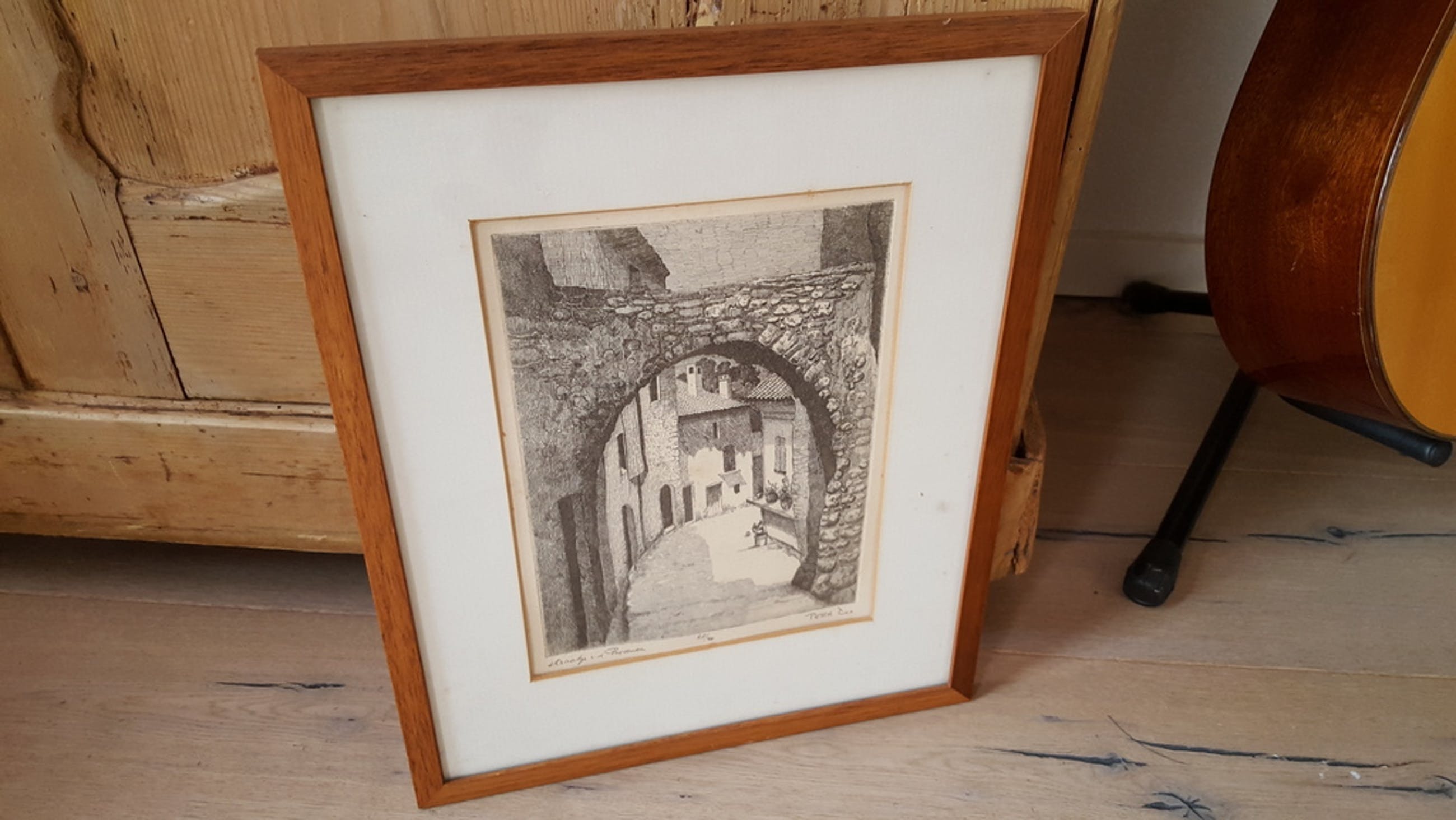 Peter Cox - ets 28/40, straatje in de Provence, gesigneerd