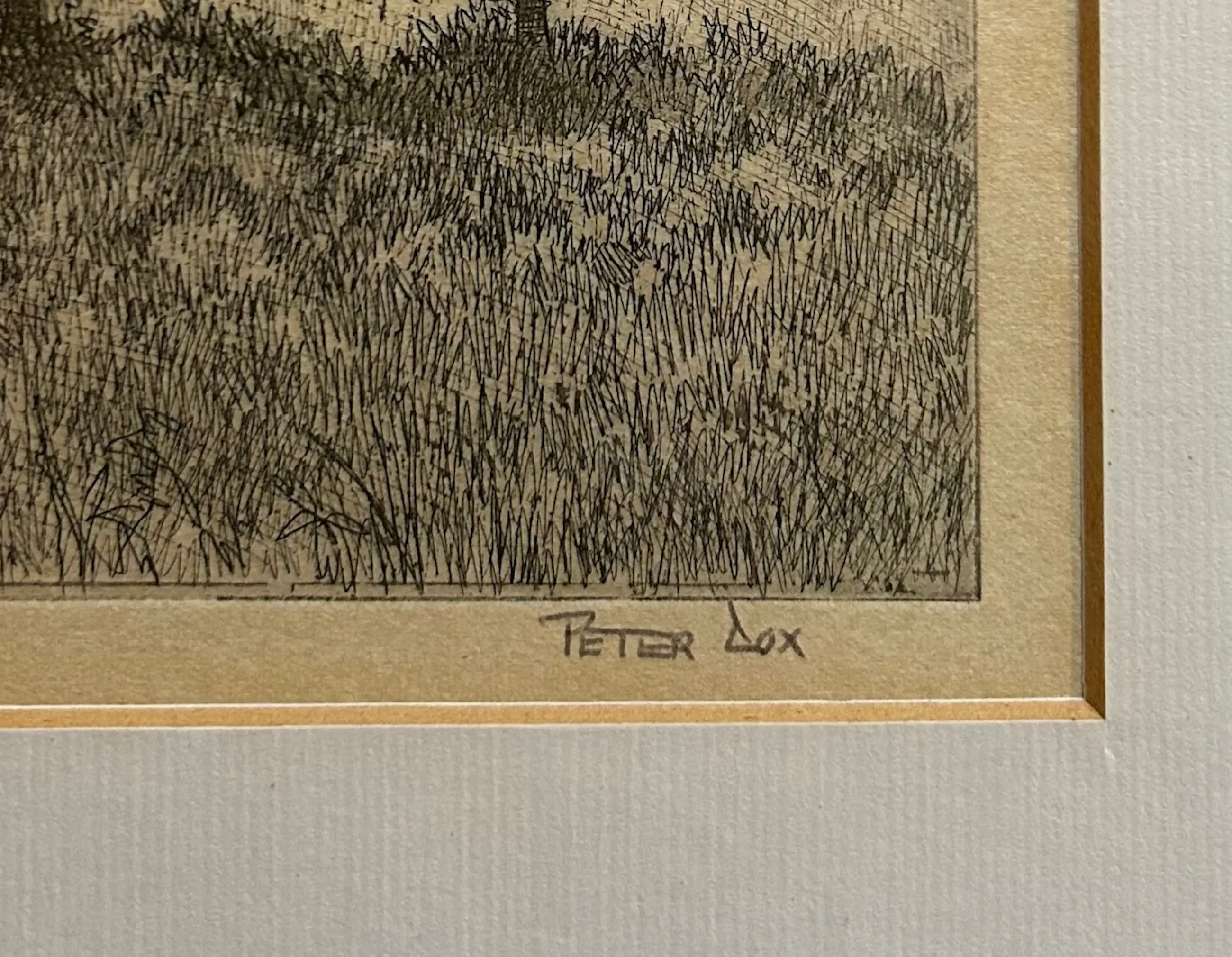 Prachtige ets van Peter Cox. Getiteld en gesigneerd in potlood. Goed ingelijst. Kan zo aan de muur. Zie foto's